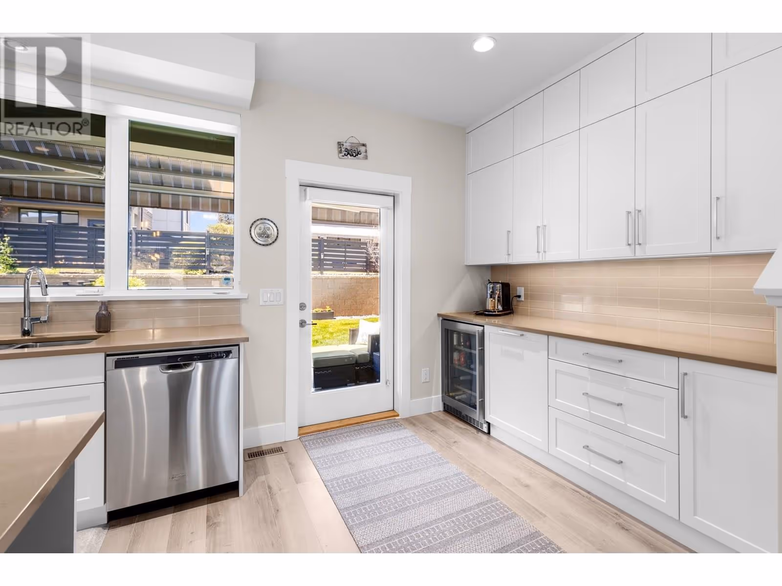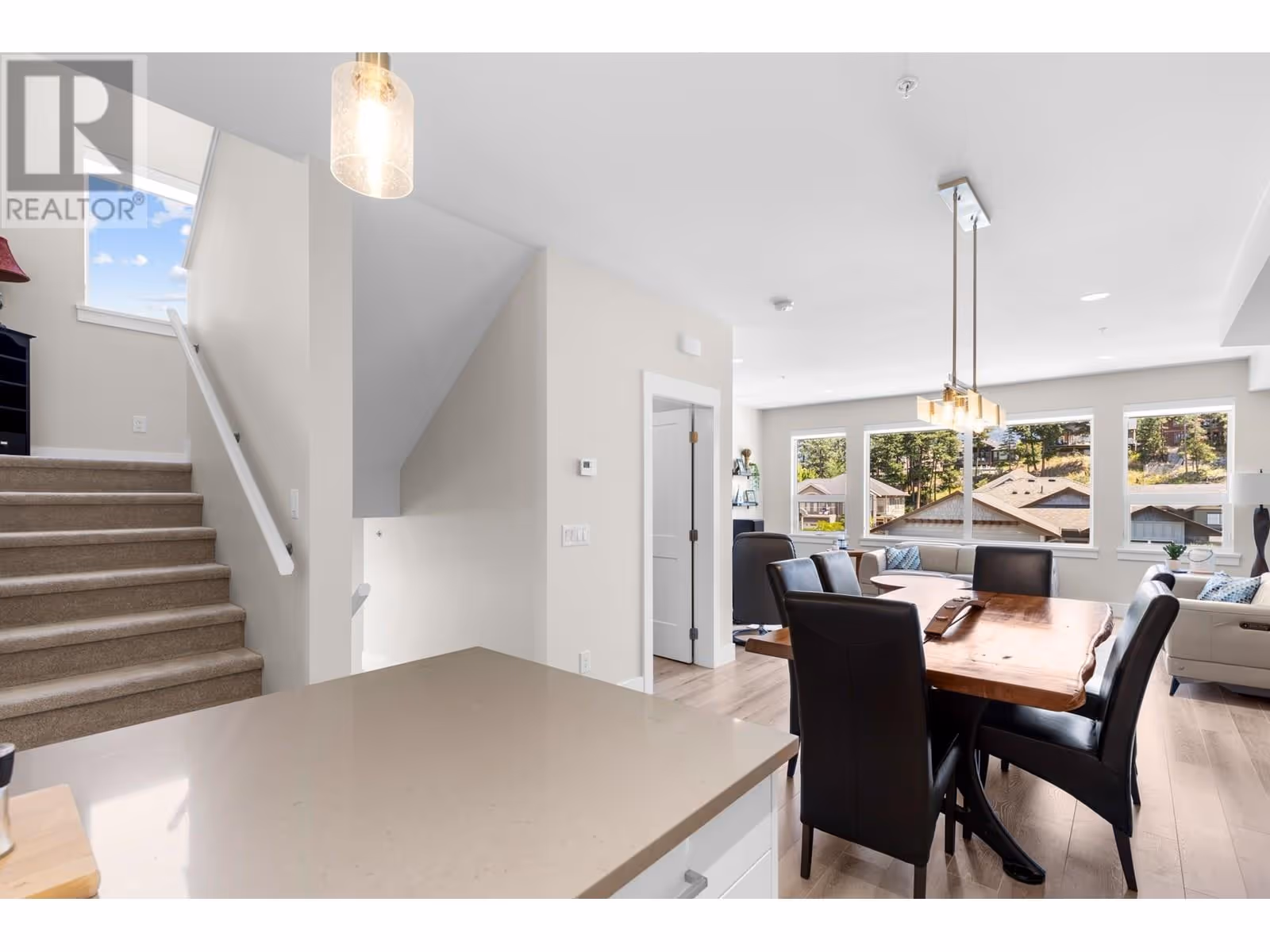 Welcome to RockRidge at the Lakes—an ideal home for families, professionals, or anyone looking to enjoy a relaxed, low-maintenance lifestyle in a friendly, scenic community. This nearly new end-unit townhouse shows 10 out of 10 and features 3 bedrooms up, plus a versatile basement flex space, perfect for a home office, gym, or family room. The open-concept main floor is bright and modern, with quartz countertops, stainless steel appliances, and a large island, plus additional built-in cabinets including beverage fridge—offering extra functionality and smart organization. Upstairs, you'll find three bedrooms, including a spacious primary suite with walk-in closet, black out blinds and private ensuite, plus the homes laundry. Enjoy a fenced backyard—perfect for kids or pets—and the unique benefit of being directly beside the community garden, offering peaceful green space right next door. The double garage provides ample parking and storage, and as an end unit, you’ll appreciate the added natural light and privacy. 2 dogs or 2 cats allowed. Strata $393.36/month. Located in The Lakes community of Lake Country, you're just minutes from parks, hiking trails, beaches, schools, and shopping—making this the perfect blend of comfort, convenience, and Okanagan lifestyle. Please click VIRTUAL TOUR LINK for all photos, downloadable floor plans plus 3D tour. (id:58842)