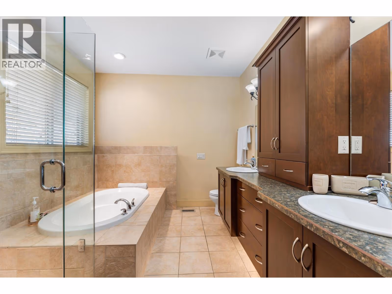Set against a backdrop of unobstructed, south-facing lake views, this home offers a front-row seat to some of the best scenery the Okanagan has to offer. The kitchen features a mix of quartz and granite countertops, stainless steel appliances, white cabinetry, a large pantry, and under-cabinet lighting. Right off the kitchen, a partially covered patio provides a seamless space for outdoor dining and entertaining. The living room impresses with vaulted ceilings, oversized windows, luxury vinyl plank flooring, and a gas fireplace; all designed to showcase the view. The primary bedroom offers a generous layout with a large walk-in closet and a 5-piece ensuite, complete with double sinks, a seamless glass shower, and a soaker tub. This home has a low-maintenance yard, and just above the home, a flat, partially developed area presents an opportunity to expand your outdoor space or build your dream pool. Recent upgrades include a newer furnace, carpets, and light fixtures—making this home move-in ready with much of the heavy lifting already done. (id:58842)