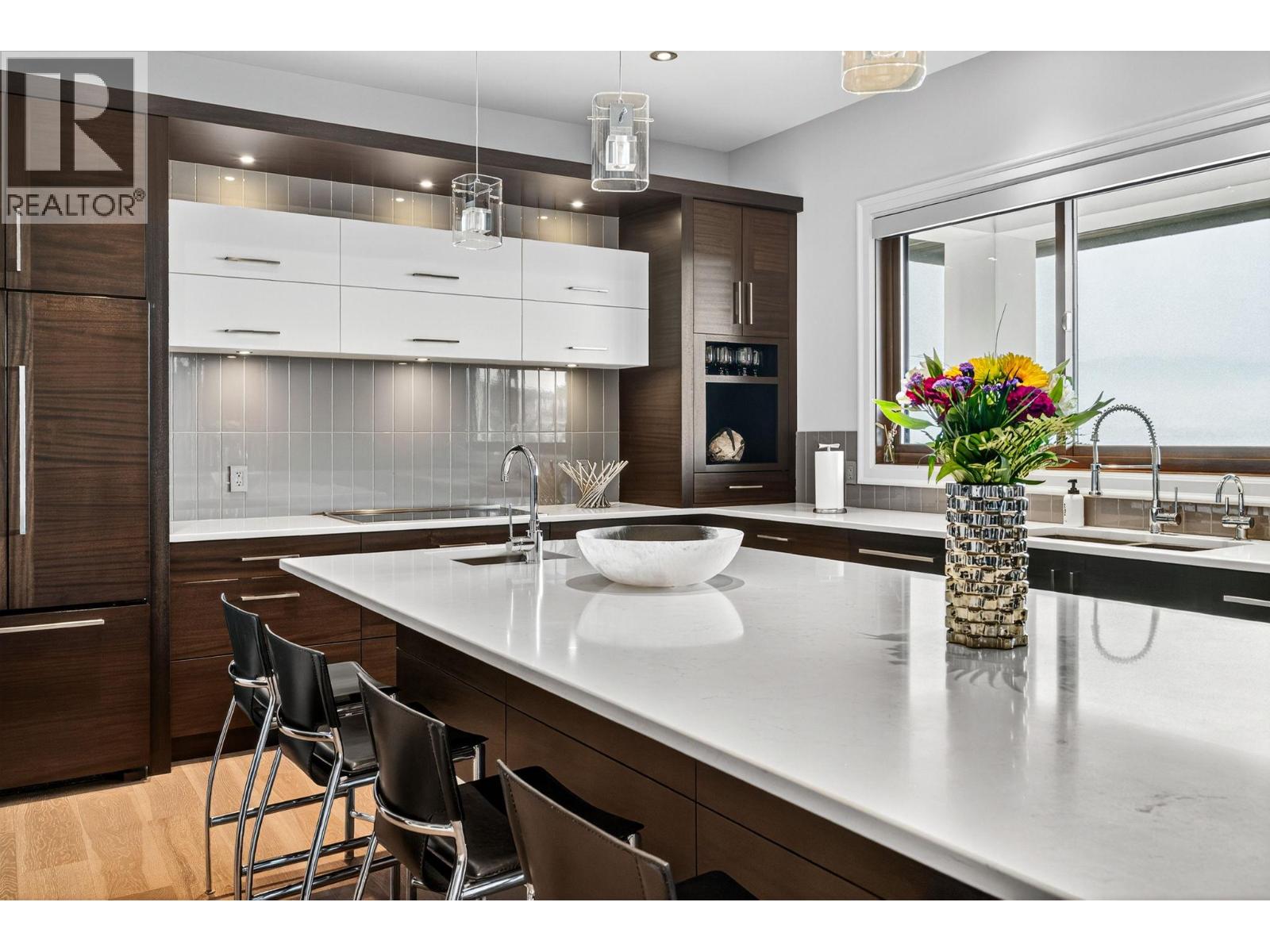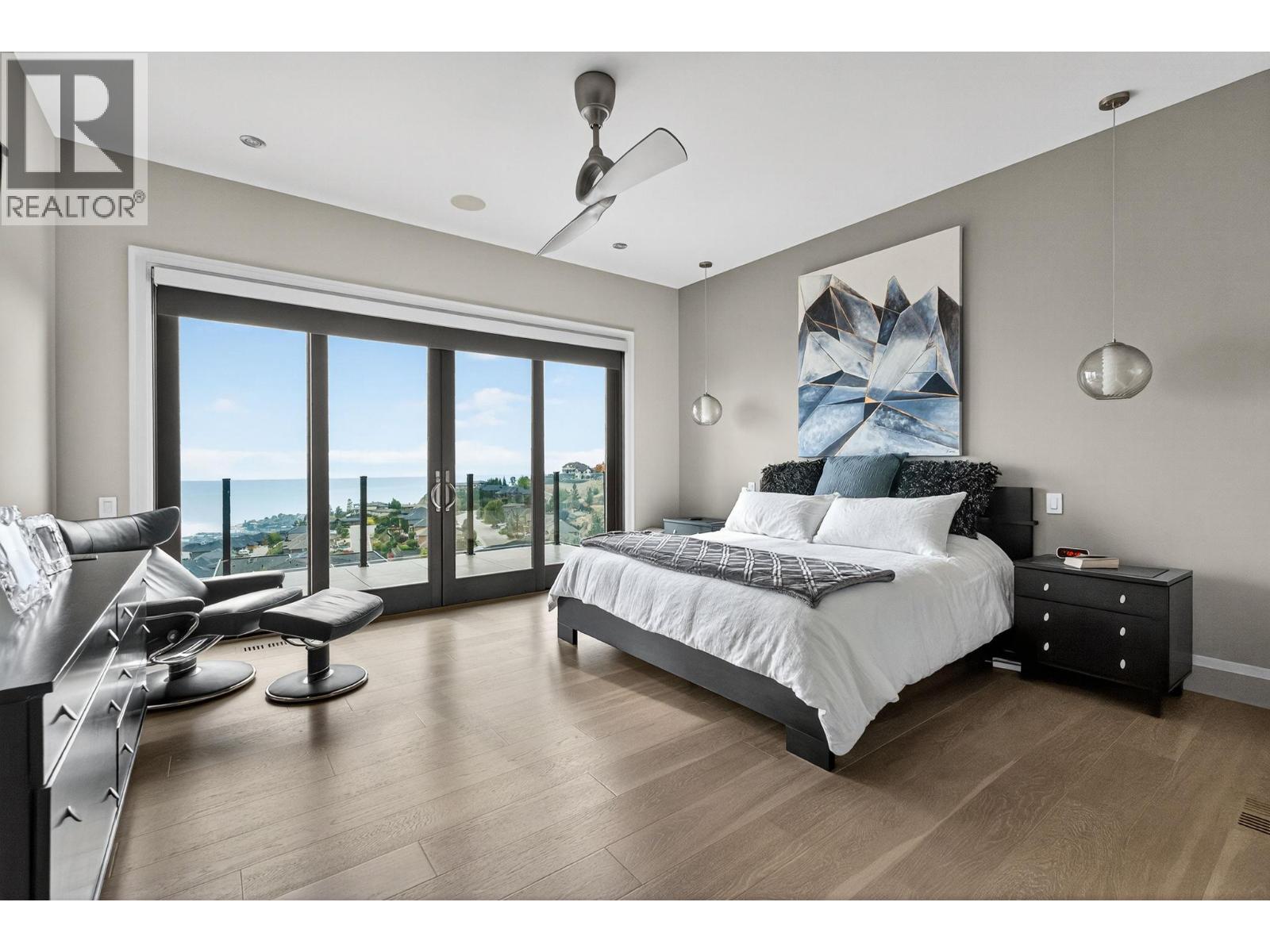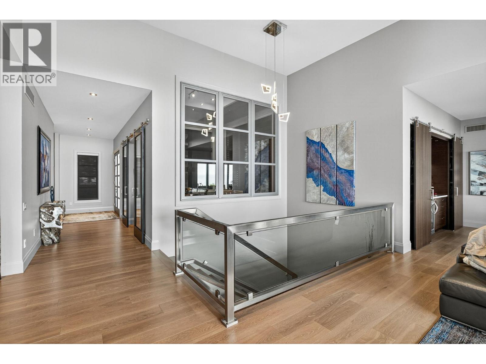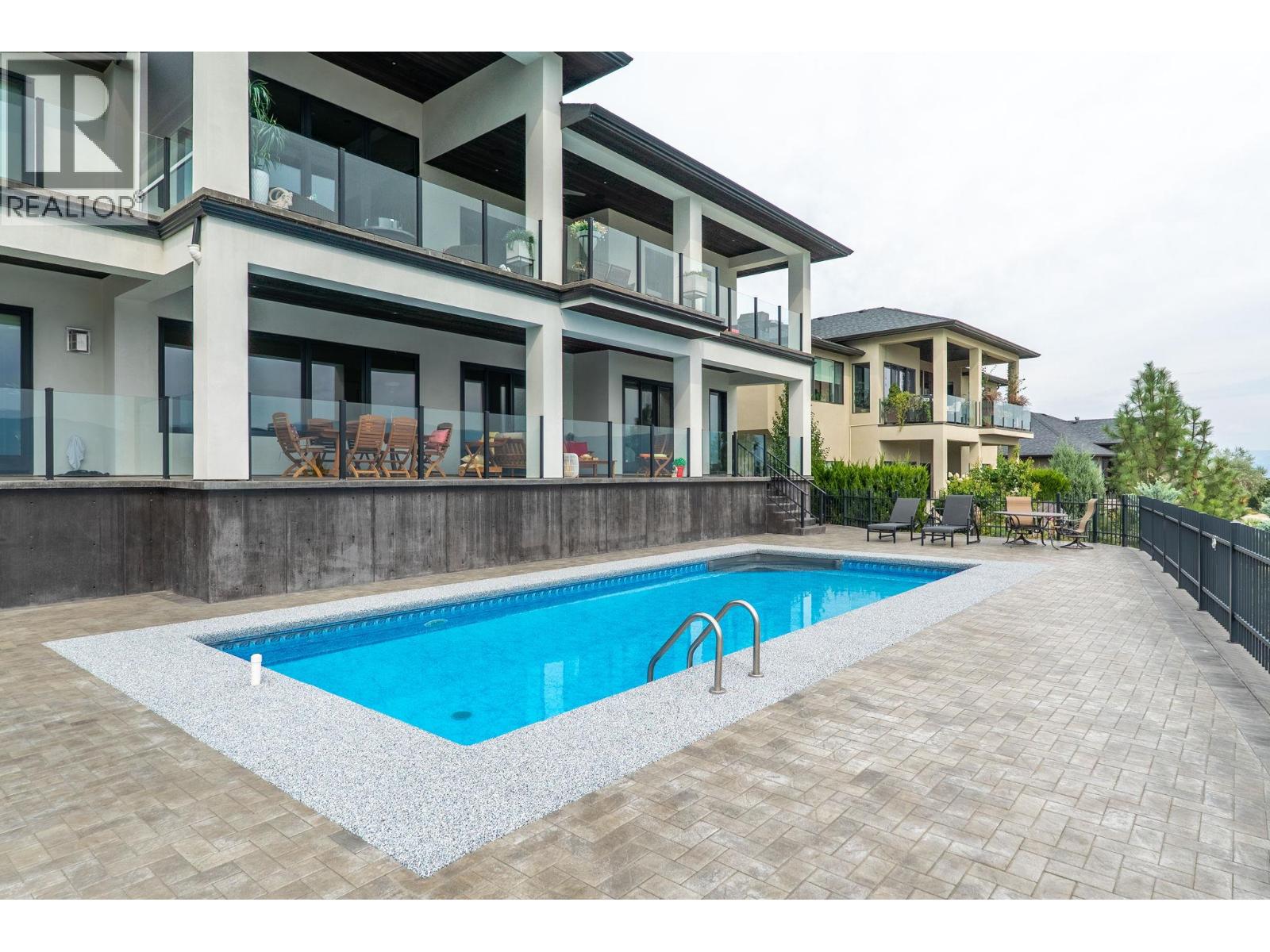 Welcome to an unparalleled luxury residence where custom design meets timeless elegance. This 5,172 sq ft architectural gem is a testament to superior craftsmanship, offering captivating lake, vineyard, and mountain views—a backdrop as exquisite as the home itself. Step inside to discover an expansive primary bedroom, highlighting a luxurious ensuite with steam shower, soaker tub, heated floors and interim lighting. The walk-in closet, complete with its own washer and dryer, adds convenience to luxury living. The modern kitchen boasts top-of-the-line appliances, an instant hot water tap, and a large quartz island, complete with a prep sink—perfect for gatherings with family and friends. A welcome addition is a Butler’s pantry complete with fridge and stove. Adjacent to the dining room, there’s a beverage centre with wine fridge, sink, and built-in shelving/storage with elegant sliding wood doors. Throughout the home, you’ll find soaring ceilings, wide plank flooring, modern lighting along with stainless steel/glass railings. The executive office can overlook the garage if need be, catering to car enthusiasts. It highlights a triple car garage with an epoxy floor, but for discretion and practicality the windows have customized wooden louvered blinds. The walk-out basement features three additional bedrooms, including a Jack and Jill bathroom—ideal for teenagers seeking their own space. Unwind in the saltwater heated pool or relax on the large deck and patio, overlooking a maintenance-free, fully fenced yard. This immaculate home features a backup generator, electric blinds, built-in audio system, kids’ play loft, theatre room, a second laundry room in the basement, and newly sealed driveway, deck and patio. Plus Rubroc accent added around the pool deck, an artificial front lawn, and a “no-grass” backyard! This Lakeview Heights masterpiece truly looks and feels brand new—crafted for those who appreciate luxury, elegance, and flawless attention to detail. (id:58842)