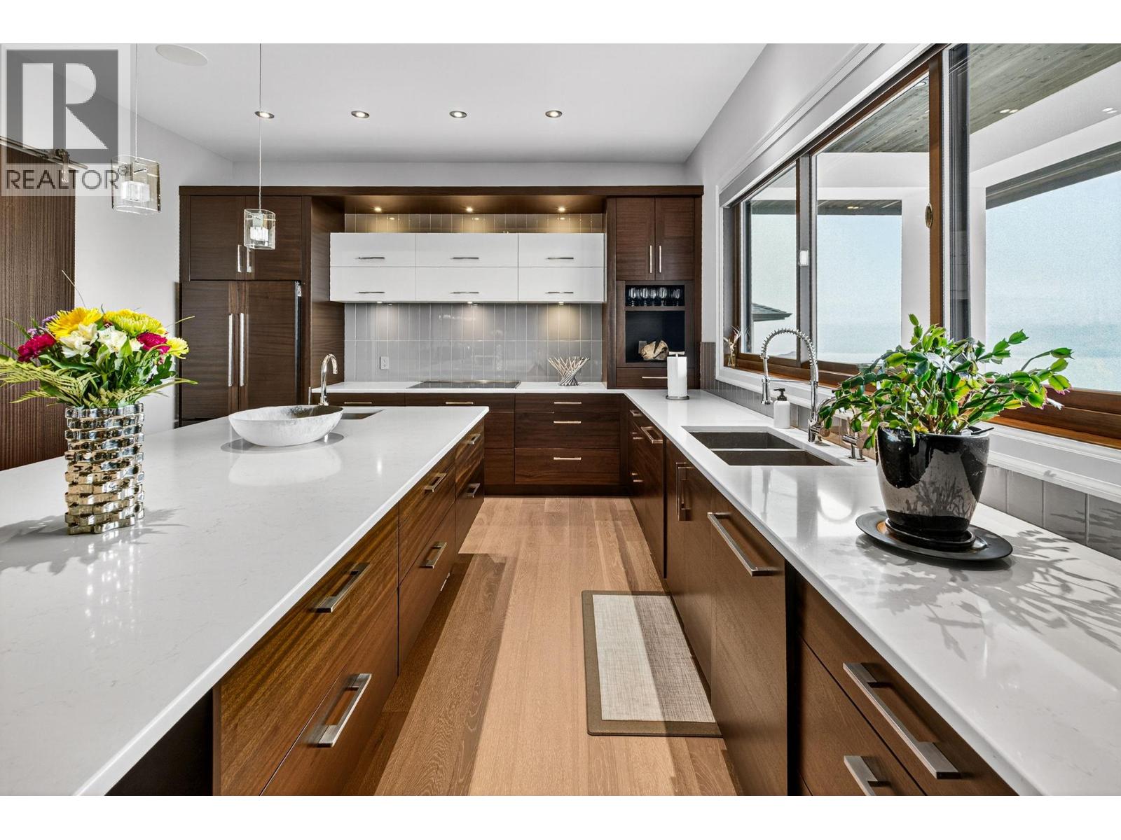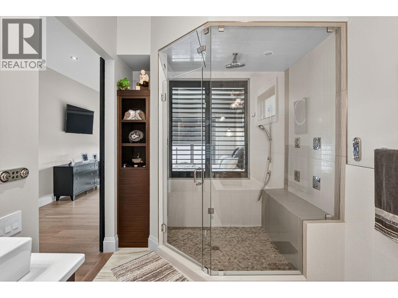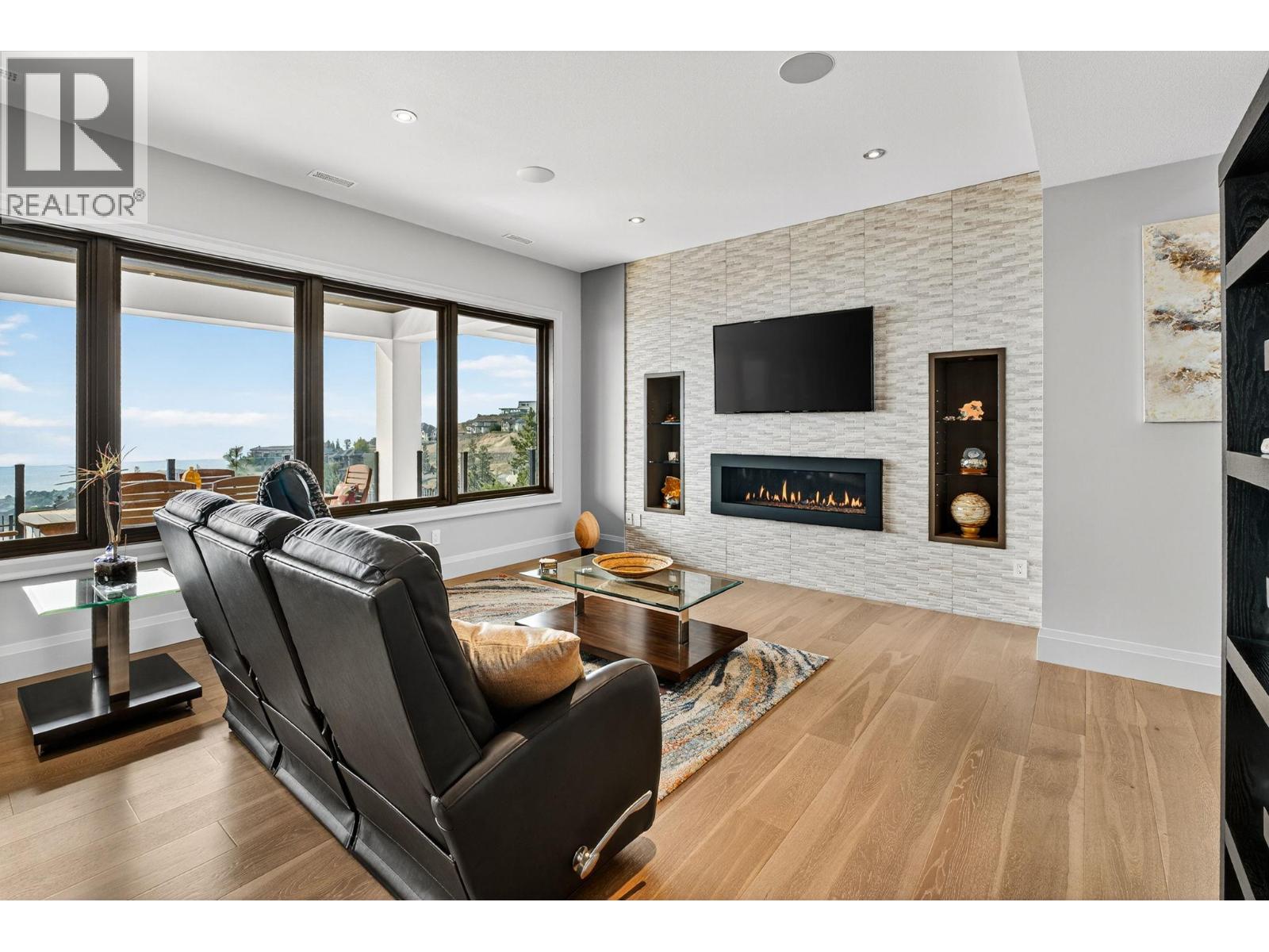 Welcome to an unparalleled luxury residence where custom design meets timeless elegance. This 5,172 sq ft architectural gem is a testament to superior craftsmanship, offering captivating lake, vineyard, and mountain views—a backdrop as exquisite as the home itself. Step inside to discover an expansive primary bedroom, highlighting a luxurious ensuite with steam shower, soaker tub, heated floors and interim lighting. The walk-in closet, complete with its own washer and dryer, adds convenience to luxury living. The modern kitchen boasts top-of-the-line appliances, an instant hot water tap, and a large quartz island, complete with a prep sink—perfect for gatherings with family and friends. A welcome addition is a Butler’s pantry complete with fridge and stove. Adjacent to the dining room, there’s a beverage centre with wine fridge, sink, and built-in shelving/storage with elegant sliding wood doors. Throughout the home, you’ll find soaring ceilings, wide plank flooring, modern lighting along with stainless steel/glass railings. The executive office can overlook the garage if need be, catering to car enthusiasts. It highlights a triple car garage with an epoxy floor, but for discretion and practicality the windows have customized wooden louvered blinds. The walk-out basement features three additional bedrooms, including a Jack and Jill bathroom—ideal for teenagers seeking their own space. Unwind in the saltwater heated pool or relax on the large deck and patio, overlooking a maintenance-free, fully fenced yard. This immaculate home features a backup generator, electric blinds, built-in audio system, kids’ play loft, theatre room, a second laundry room in the basement, and newly sealed driveway, deck and patio. Plus Rubroc accent added around the pool deck, an artificial front lawn, and a “no-grass” backyard! This Lakeview Heights masterpiece truly looks and feels brand new—crafted for those who appreciate luxury, elegance, and flawless attention to detail. (id:58842)