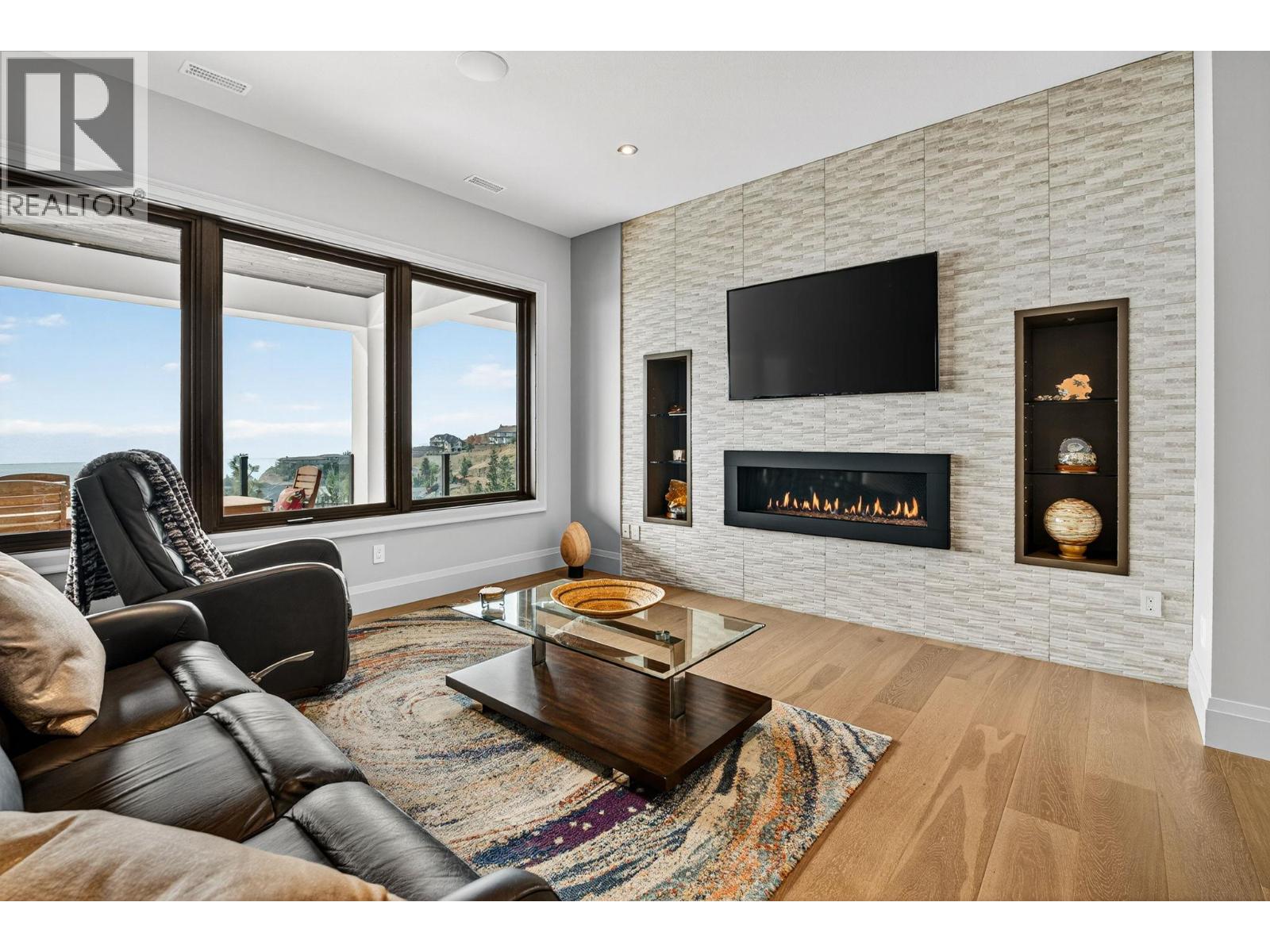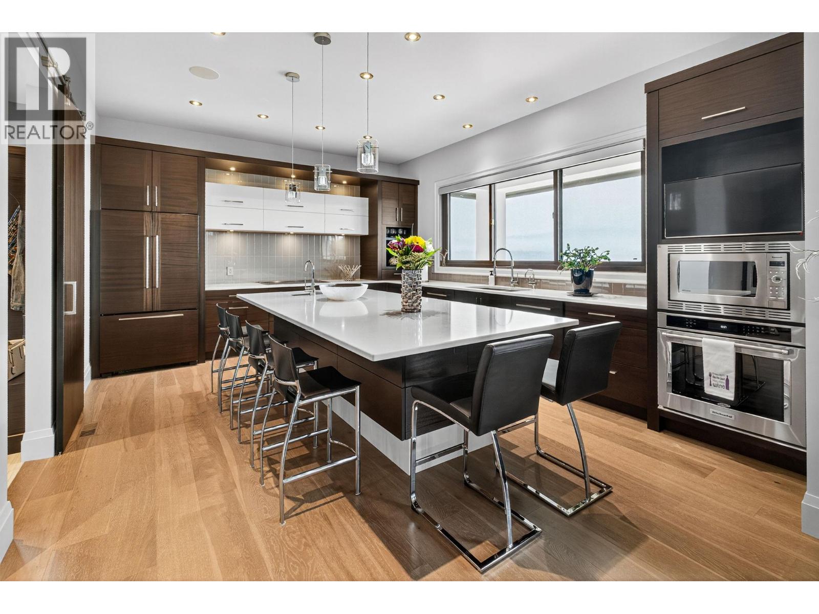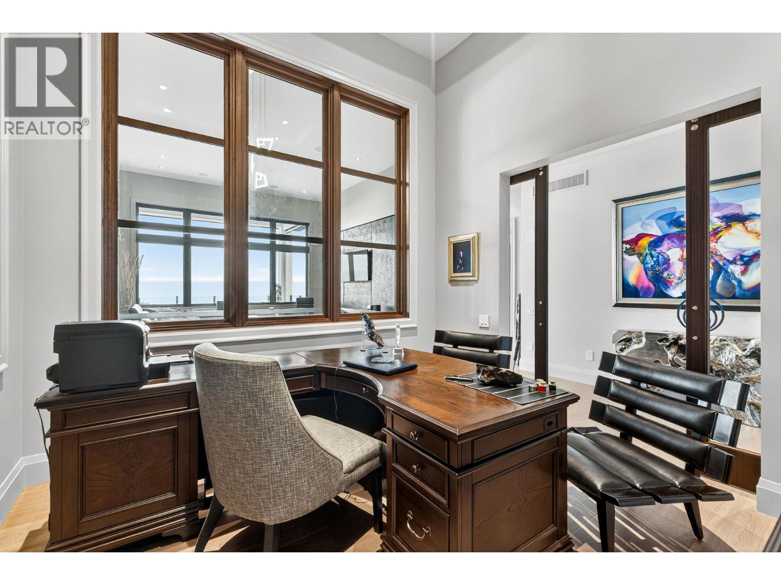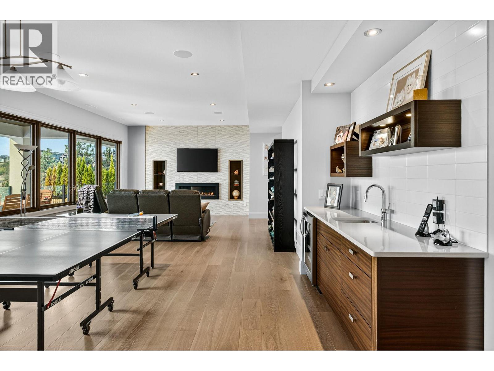 Welcome to an unparalleled luxury residence where custom design meets timeless elegance. This 5,172 sq ft architectural gem is a testament to superior craftsmanship, offering captivating lake, vineyard, and mountain views—a backdrop as exquisite as the home itself. Step inside to discover an expansive primary bedroom, highlighting a luxurious ensuite with steam shower, soaker tub, heated floors and interim lighting. The walk-in closet, complete with its own washer and dryer, adds convenience to luxury living. The modern kitchen boasts top-of-the-line appliances, an instant hot water tap, and a large quartz island, complete with a prep sink—perfect for gatherings with family and friends. A welcome addition is a Butler’s pantry complete with fridge and stove. Adjacent to the dining room, there’s a beverage centre with wine fridge, sink, and built-in shelving/storage with elegant sliding wood doors. Throughout the home, you’ll find soaring ceilings, wide plank flooring, modern lighting along with stainless steel/glass railings. The executive office can overlook the garage if need be, catering to car enthusiasts. It highlights a triple car garage with an epoxy floor, but for discretion and practicality the windows have customized wooden louvered blinds. The walk-out basement features three additional bedrooms, including a Jack and Jill bathroom—ideal for teenagers seeking their own space. Unwind in the saltwater heated pool or relax on the large deck and patio, overlooking a maintenance-free, fully fenced yard. This immaculate home features a backup generator, electric blinds, built-in audio system, kids’ play loft, theatre room, a second laundry room in the basement, and newly sealed driveway, deck and patio. Plus Rubroc accent added around the pool deck, an artificial front lawn, and a “no-grass” backyard! This Lakeview Heights masterpiece truly looks and feels brand new—crafted for those who appreciate luxury, elegance, and flawless attention to detail. (id:58842)