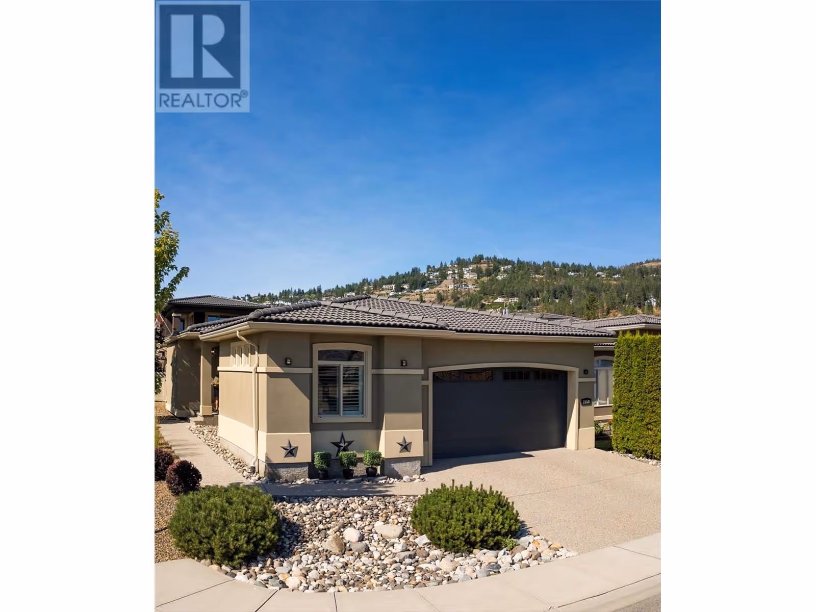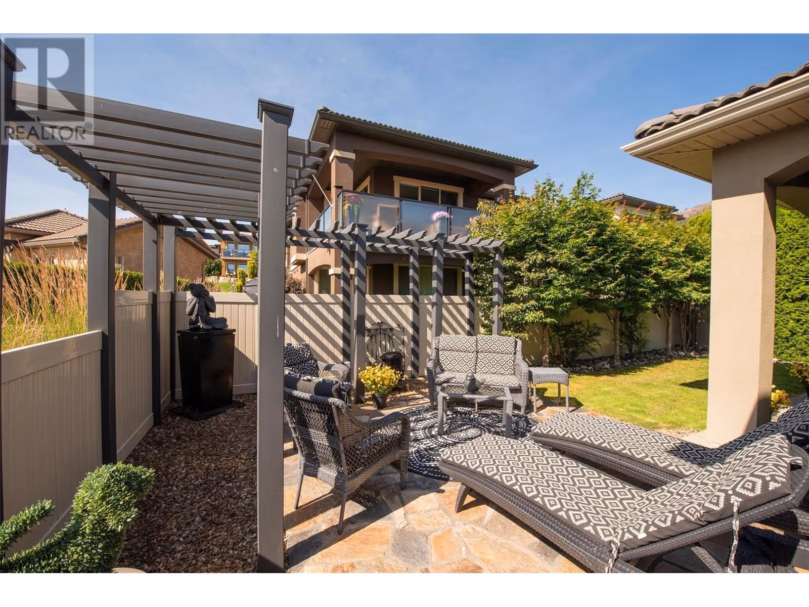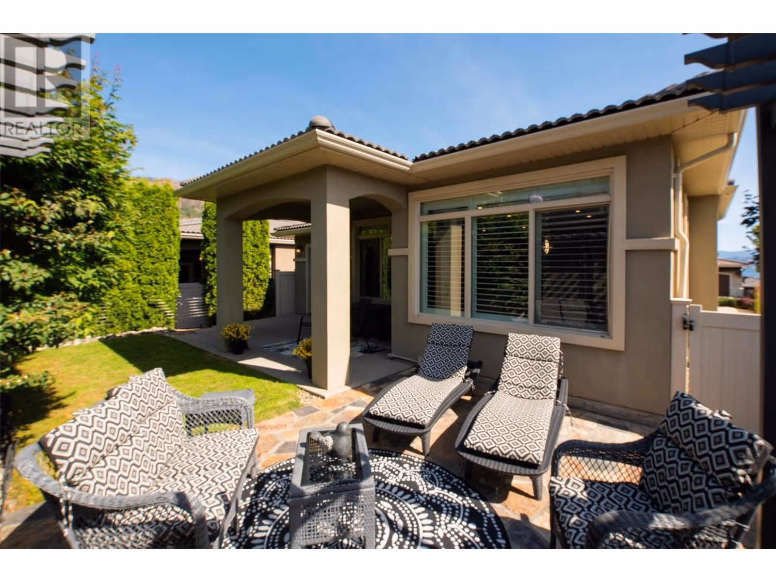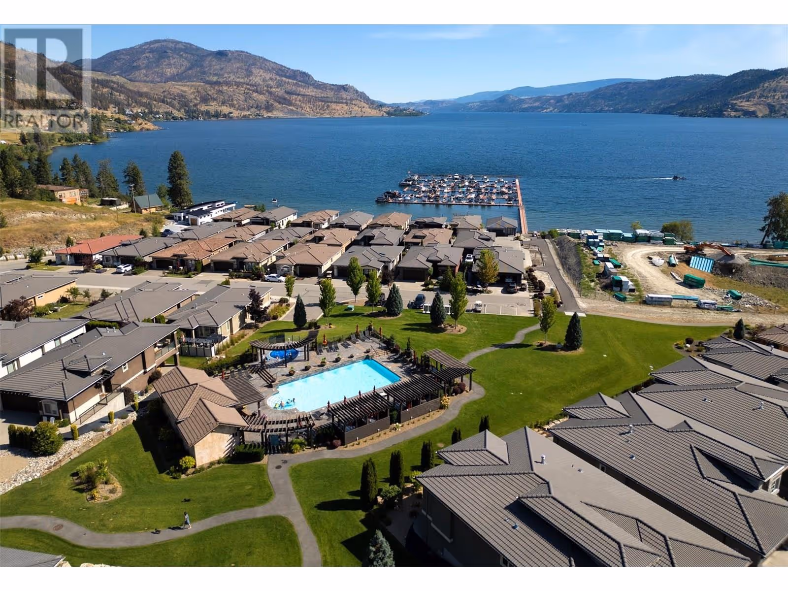 Don’t Miss the Boat… Literally! West Harbour — the ultimate in resort-style waterfront living in one of the Okanagan’s most coveted gated communities. This bright, modern home is ideally located beside the pool and hot tub for spontaneous dips, with a landscaped berm offering privacy. Just a 2-minute stroll to 500 feet of PRIVATE SANDY BEACH and your own 26' boat slip — BYOB: Bring Your Own Boat! Just open your backdoor to a true grade-level walkout (with no stairs to climb). This backyard oasis is fully fenced and surrounded by mature trees. Inside, this detached home features an elegant white kitchen with 42” uppers, a bold black island with honed granite, hardwood and tile flooring throughout. The open-concept functional layout offers a spacious living area bathed in natural light and windows with California shutters. The main level includes a generous primary bedroom with 5 piece ensuite and private access to the fenced yard. The second main level bedroom offset from the main living area with convenient access to an additional full bathroom. The finished lower level has two more bedrooms, a full bath, massive family room, and rare abundant storage. A double garage plus extra-long driveway fits oversized vehicles with ease. Enjoy unmatched amenities: beach, marina, clubhouse, gym, pickleball/tennis courts, pool, hot tub, and more — all for just $245/month. This is lakefront living at its best — stylish, spacious, and steps from Okanagan Lake. (id:58842)