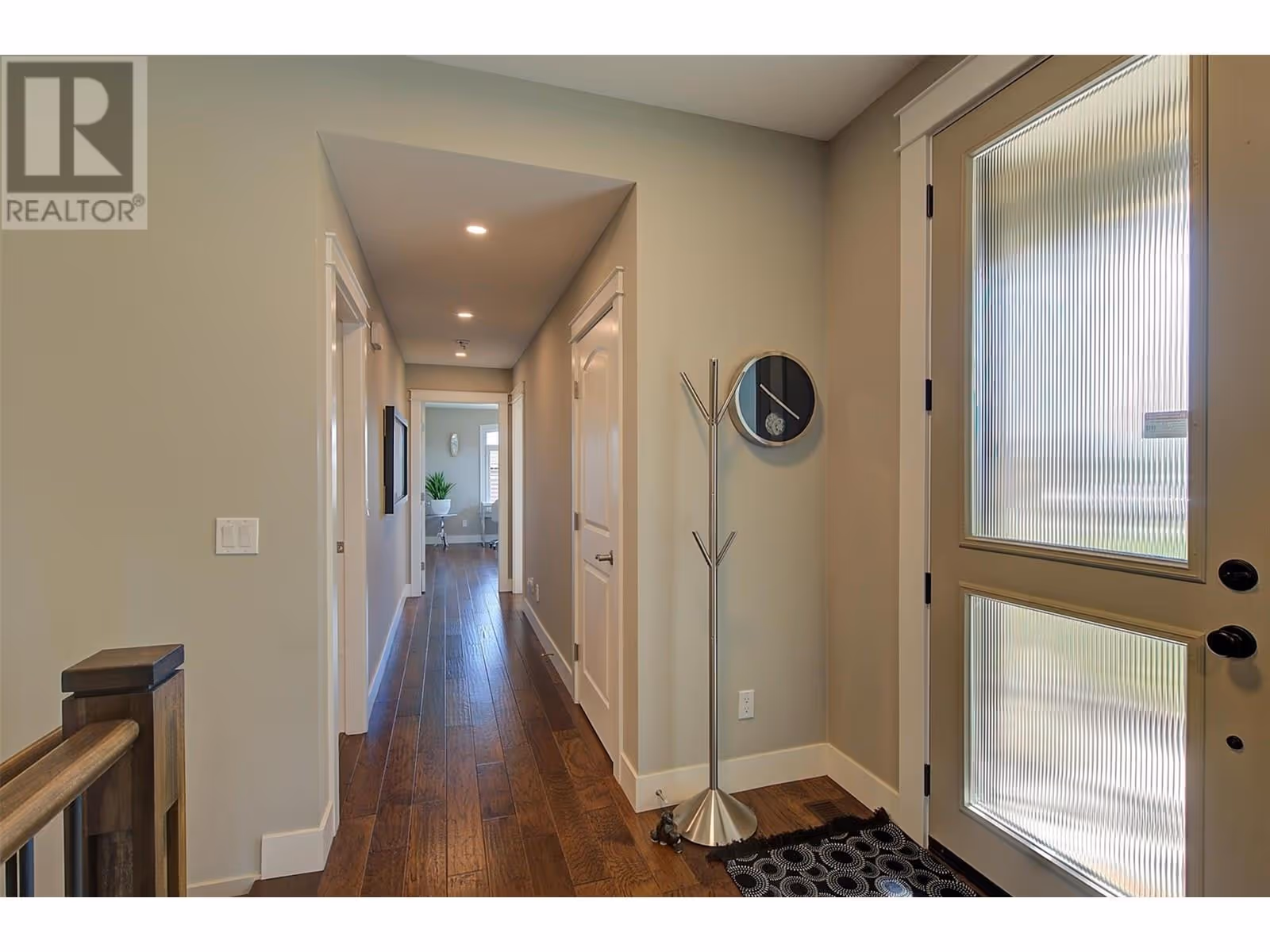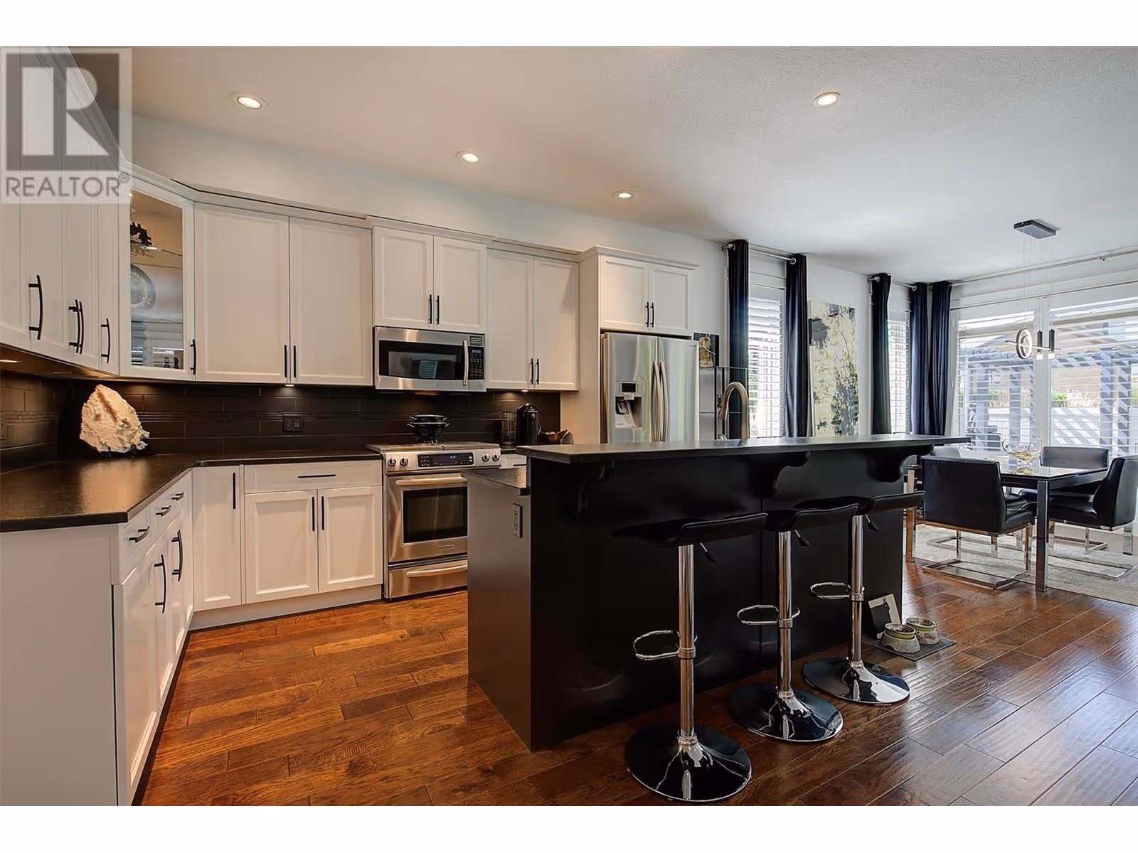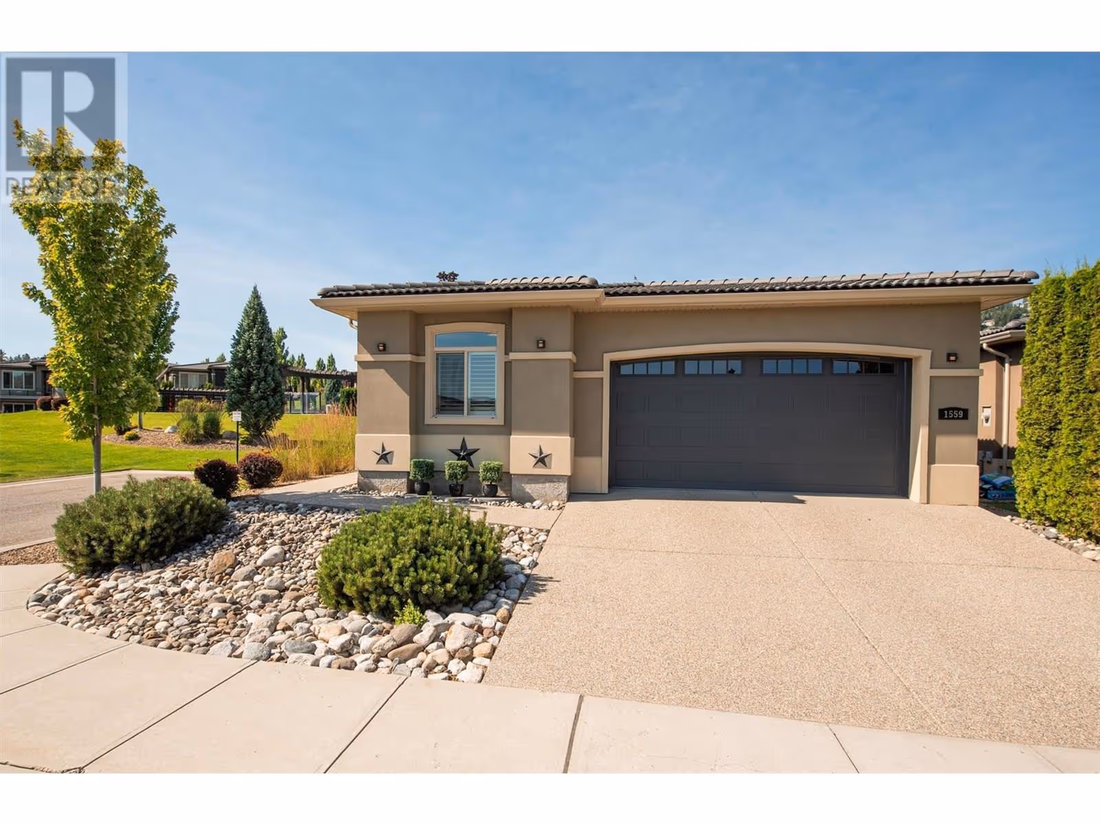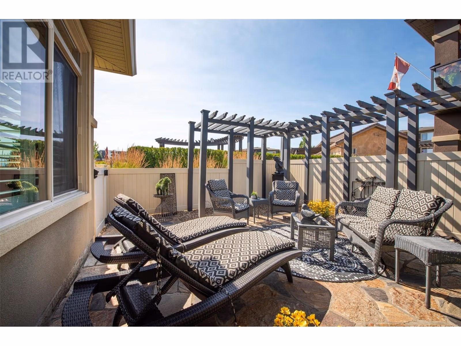 Don’t Miss the Boat… Literally! West Harbour — the ultimate in resort-style waterfront living in one of the Okanagan’s most coveted gated communities. This bright, modern home is ideally located beside the pool and hot tub for spontaneous dips, with a landscaped berm offering privacy. Just a 2-minute stroll to 500 feet of PRIVATE SANDY BEACH and your own 26' boat slip — BYOB: Bring Your Own Boat! Just open your backdoor to a true grade-level walkout (with no stairs to climb). This backyard oasis is fully fenced and surrounded by mature trees. Inside, this detached home features an elegant white kitchen with 42” uppers, a bold black island with honed granite, hardwood and tile flooring throughout. The open-concept functional layout offers a spacious living area bathed in natural light and windows with California shutters. The main level includes a generous primary bedroom with 5 piece ensuite and private access to the fenced yard. The second main level bedroom offset from the main living area with convenient access to an additional full bathroom. The finished lower level has two more bedrooms, a full bath, massive family room, and rare abundant storage. A double garage plus extra-long driveway fits oversized vehicles with ease. Enjoy unmatched amenities: beach, marina, clubhouse, gym, pickleball/tennis courts, pool, hot tub, and more — all for just $245/month. This is lakefront living at its best — stylish, spacious, and steps from Okanagan Lake. (id:58842)