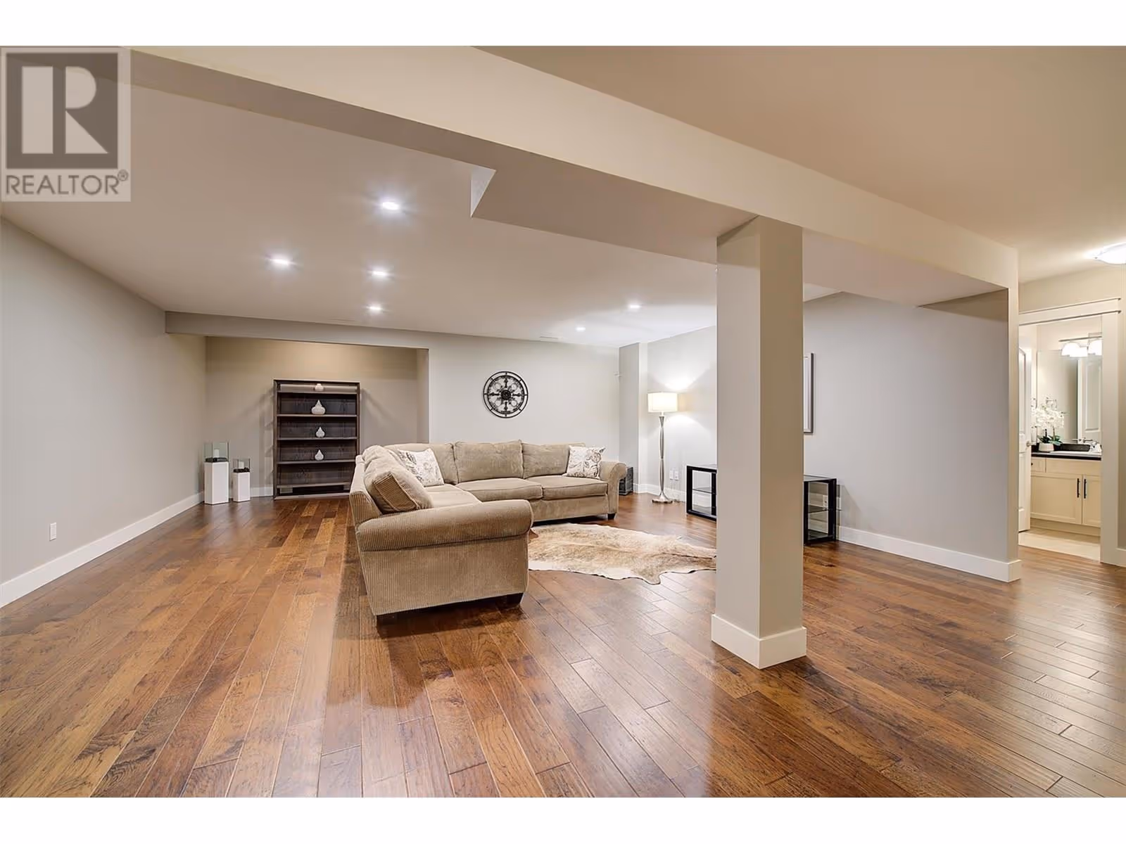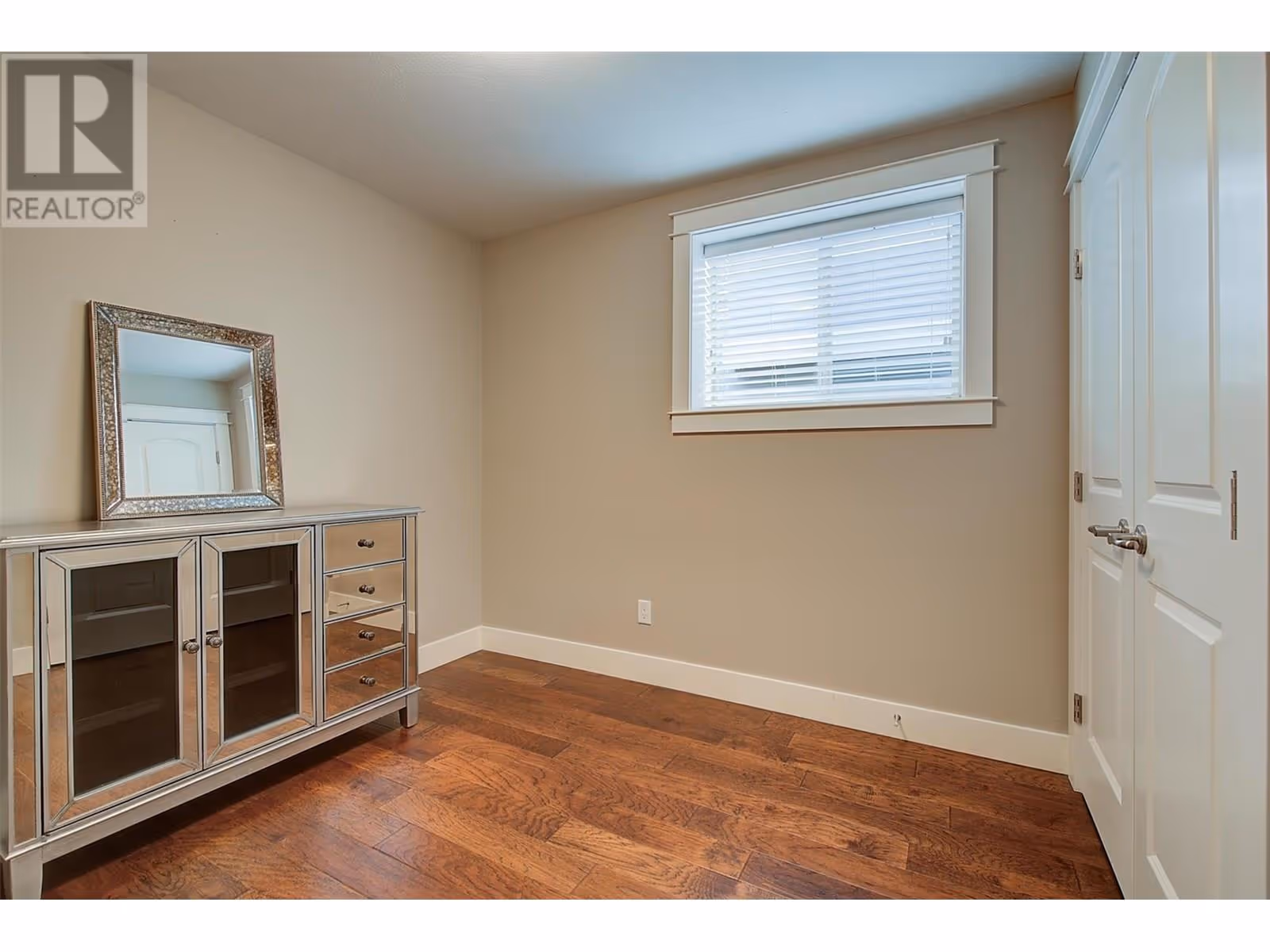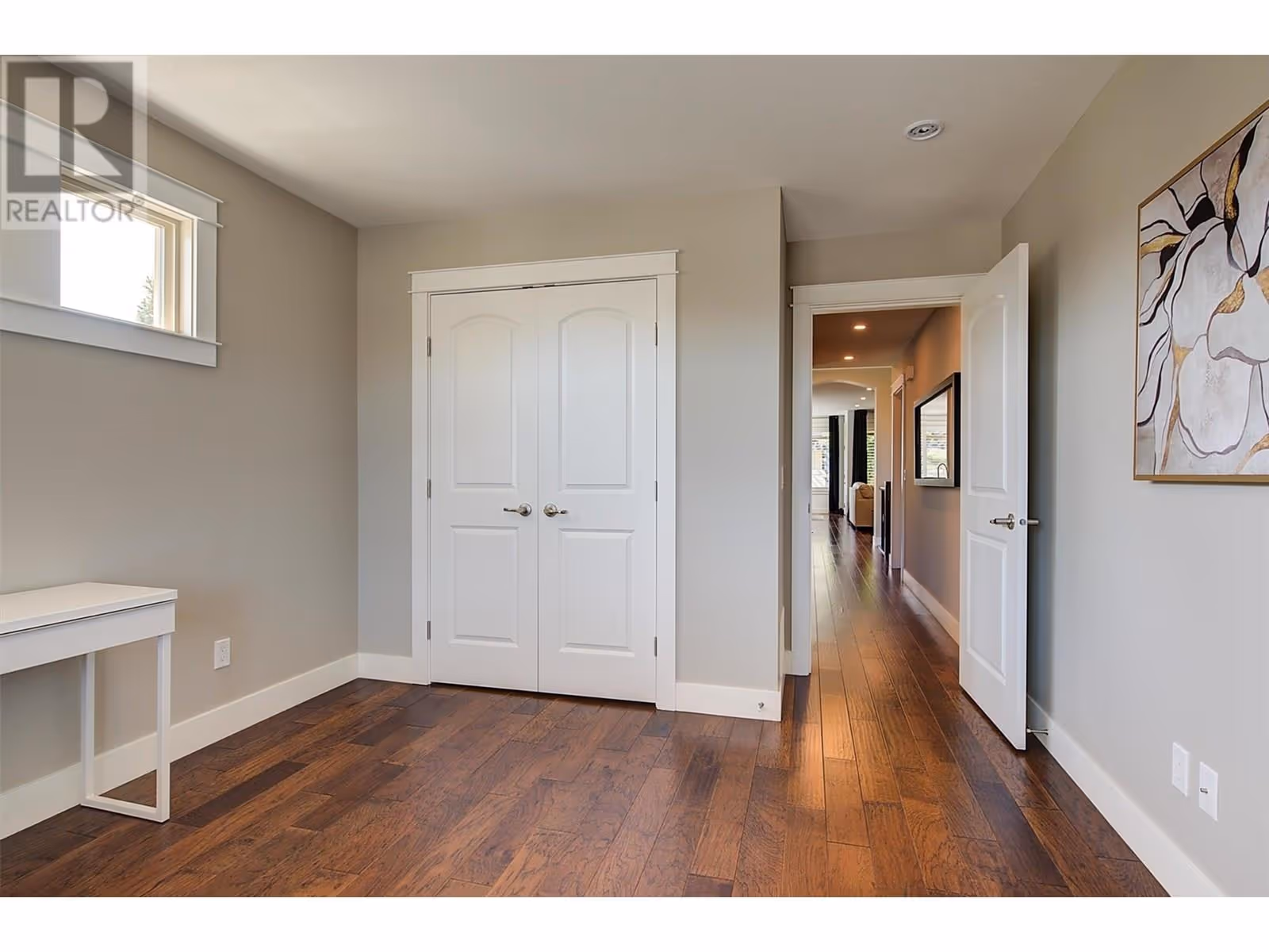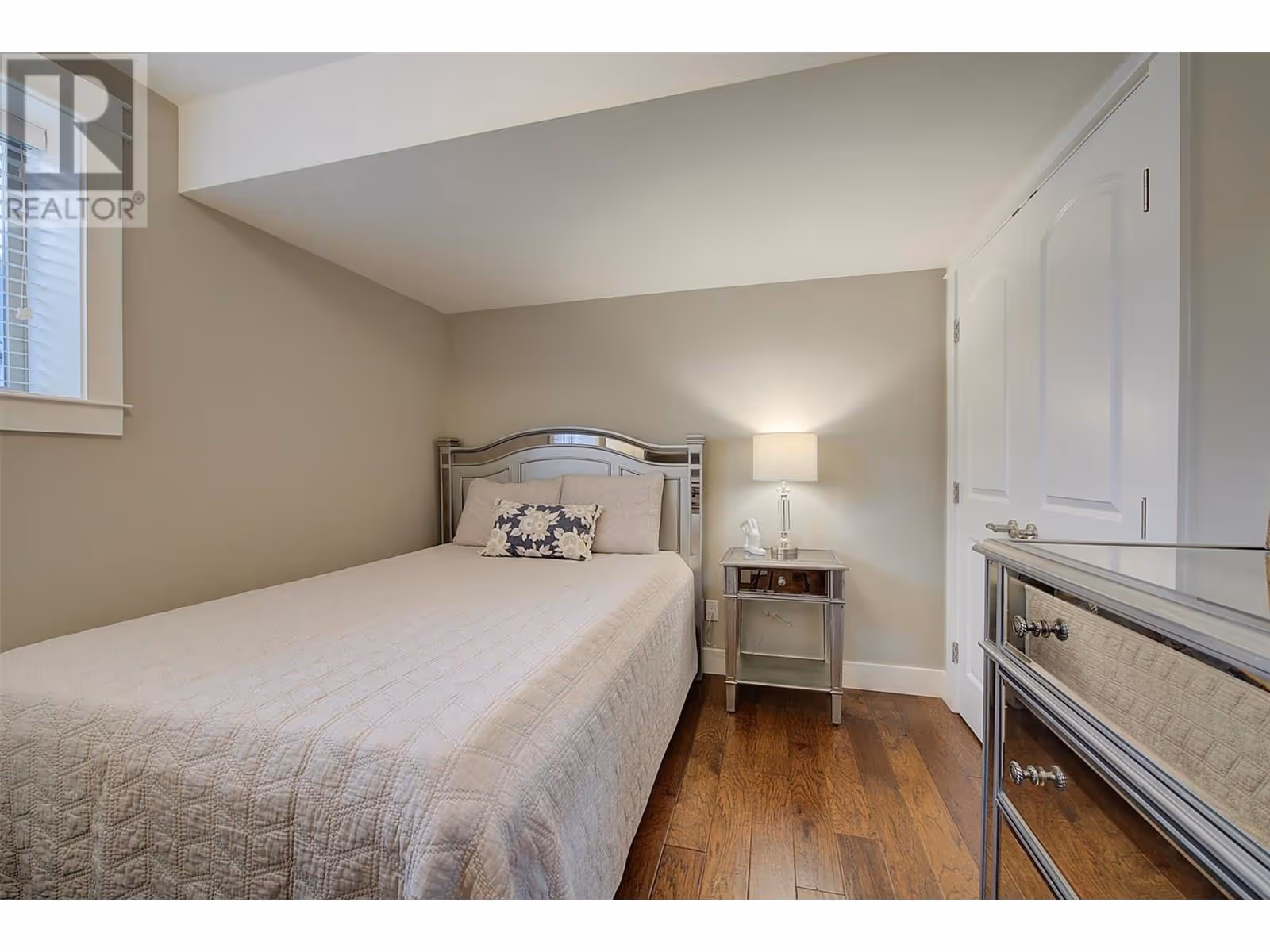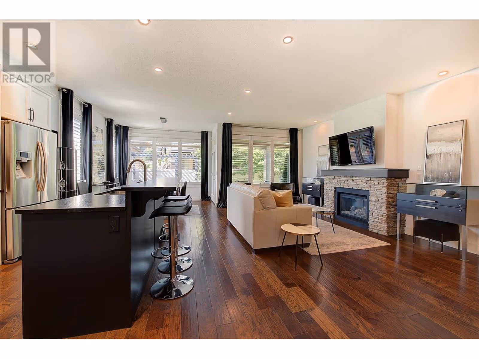 Don’t Miss the Boat… Literally! West Harbour — the ultimate in resort-style waterfront living in one of the Okanagan’s most coveted gated communities. This bright, modern home is ideally located beside the pool and hot tub for spontaneous dips, with a landscaped berm offering privacy. Just a 2-minute stroll to 500 feet of PRIVATE SANDY BEACH and your own 26' boat slip — BYOB: Bring Your Own Boat! Just open your backdoor to a true grade-level walkout (with no stairs to climb). This backyard oasis is fully fenced and surrounded by mature trees. Inside, this detached home features an elegant white kitchen with 42” uppers, a bold black island with honed granite, hardwood and tile flooring throughout. The open-concept functional layout offers a spacious living area bathed in natural light and windows with California shutters. The main level includes a generous primary bedroom with 5 piece ensuite and private access to the fenced yard. The second main level bedroom offset from the main living area with convenient access to an additional full bathroom. The finished lower level has two more bedrooms, a full bath, massive family room, and rare abundant storage. A double garage plus extra-long driveway fits oversized vehicles with ease. Enjoy unmatched amenities: beach, marina, clubhouse, gym, pickleball/tennis courts, pool, hot tub, and more — all for just $245/month. This is lakefront living at its best — stylish, spacious, and steps from Okanagan Lake. (id:58842)