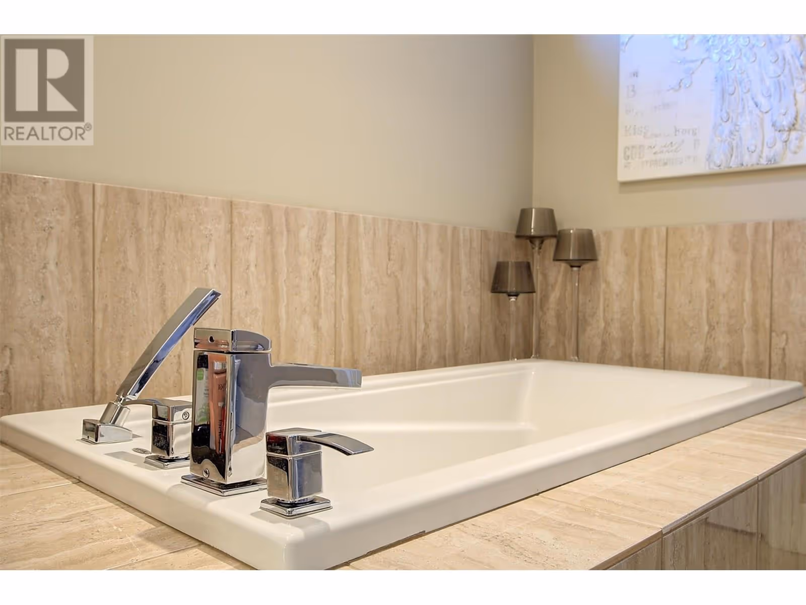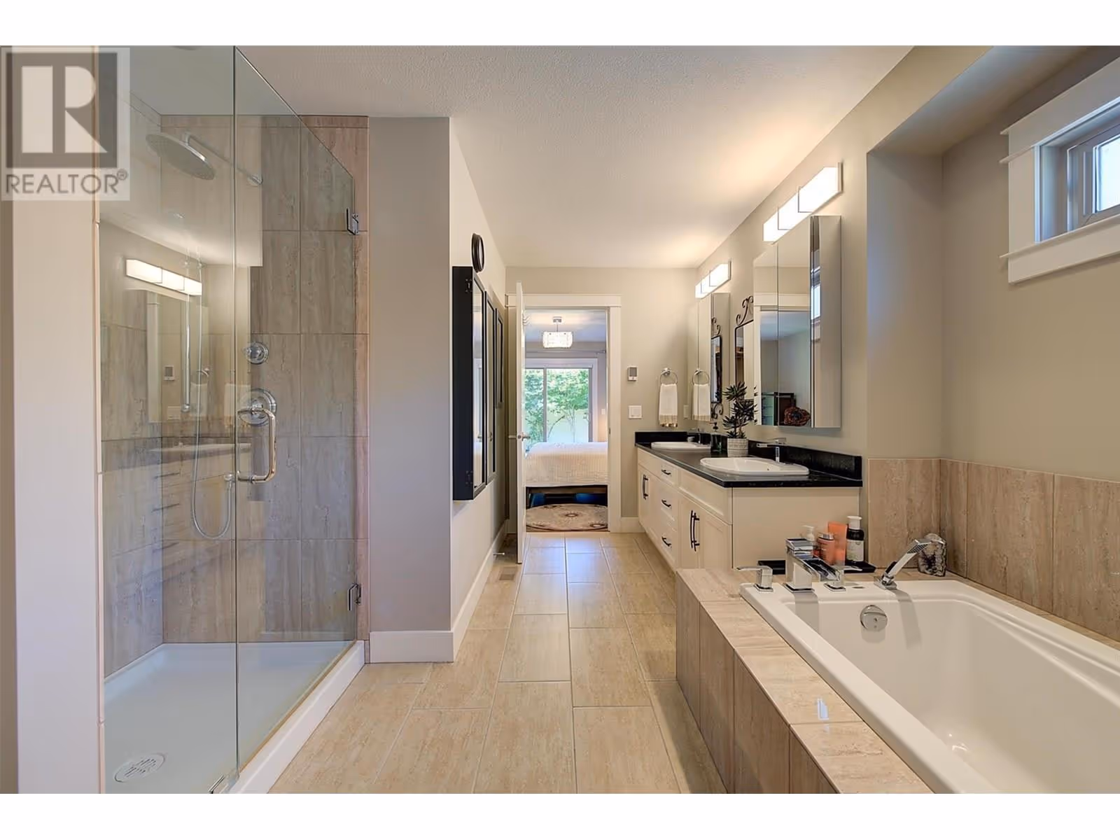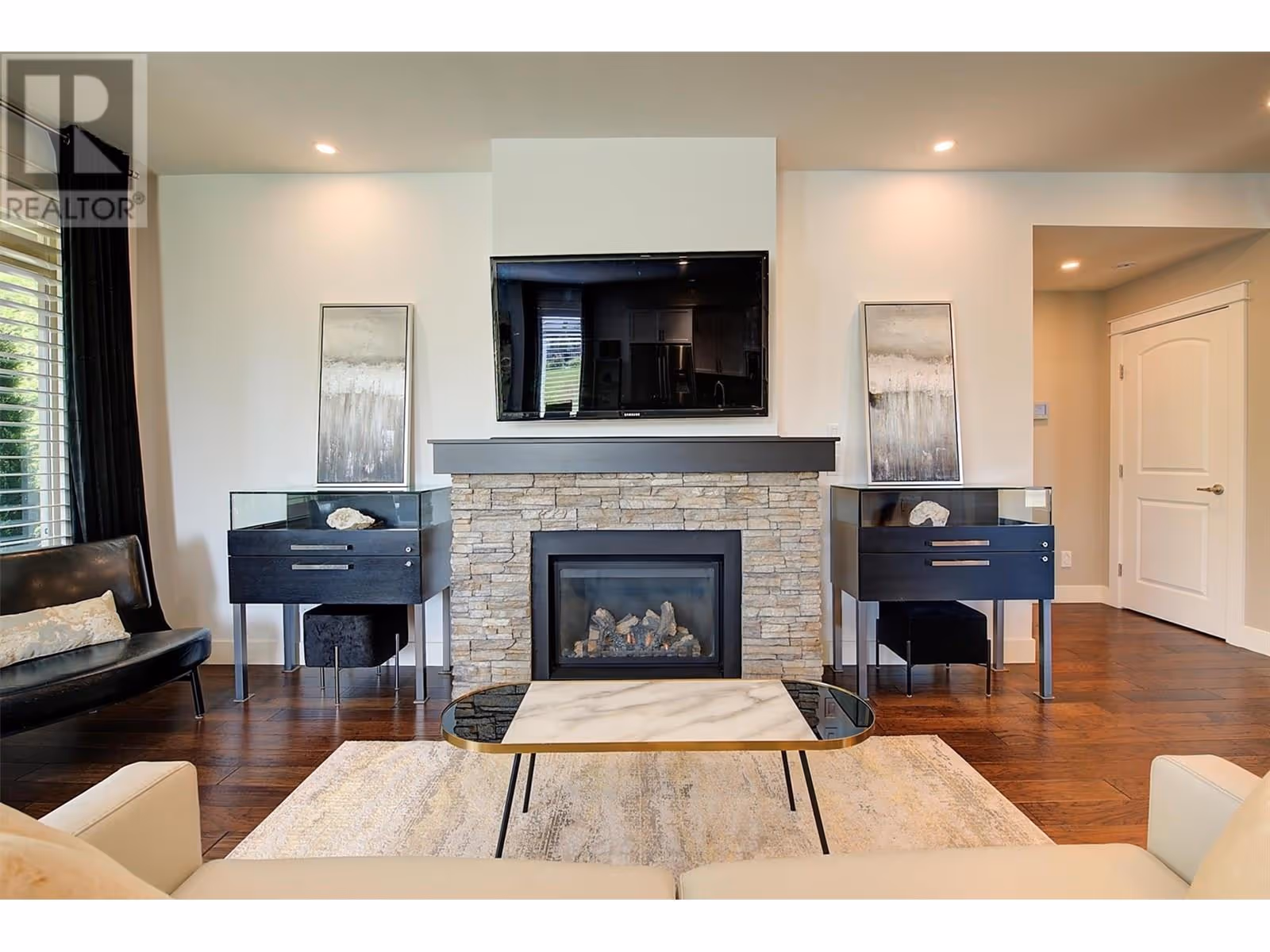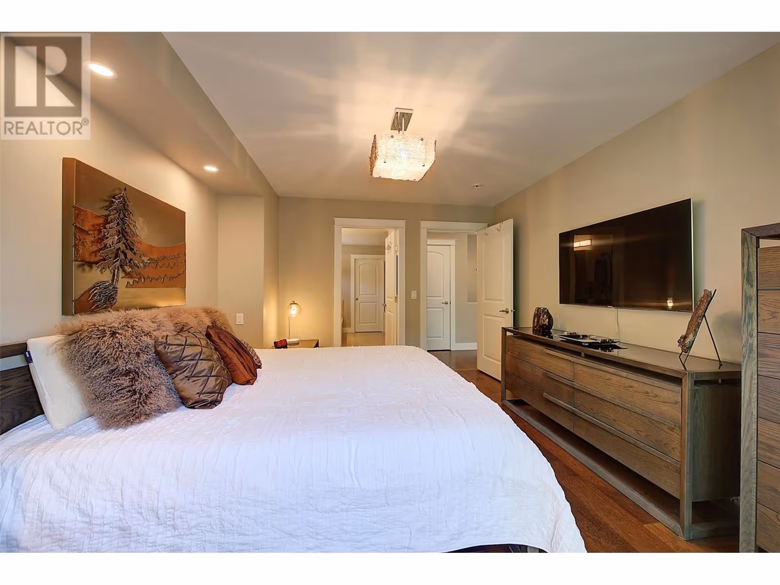 Don’t Miss the Boat… Literally! West Harbour — the ultimate in resort-style waterfront living in one of the Okanagan’s most coveted gated communities. This bright, modern home is ideally located beside the pool and hot tub for spontaneous dips, with a landscaped berm offering privacy. Just a 2-minute stroll to 500 feet of PRIVATE SANDY BEACH and your own 26' boat slip — BYOB: Bring Your Own Boat! Just open your backdoor to a true grade-level walkout (with no stairs to climb). This backyard oasis is fully fenced and surrounded by mature trees. Inside, this detached home features an elegant white kitchen with 42” uppers, a bold black island with honed granite, hardwood and tile flooring throughout. The open-concept functional layout offers a spacious living area bathed in natural light and windows with California shutters. The main level includes a generous primary bedroom with 5 piece ensuite and private access to the fenced yard. The second main level bedroom offset from the main living area with convenient access to an additional full bathroom. The finished lower level has two more bedrooms, a full bath, massive family room, and rare abundant storage. A double garage plus extra-long driveway fits oversized vehicles with ease. Enjoy unmatched amenities: beach, marina, clubhouse, gym, pickleball/tennis courts, pool, hot tub, and more — all for just $245/month. This is lakefront living at its best — stylish, spacious, and steps from Okanagan Lake. (id:58842)