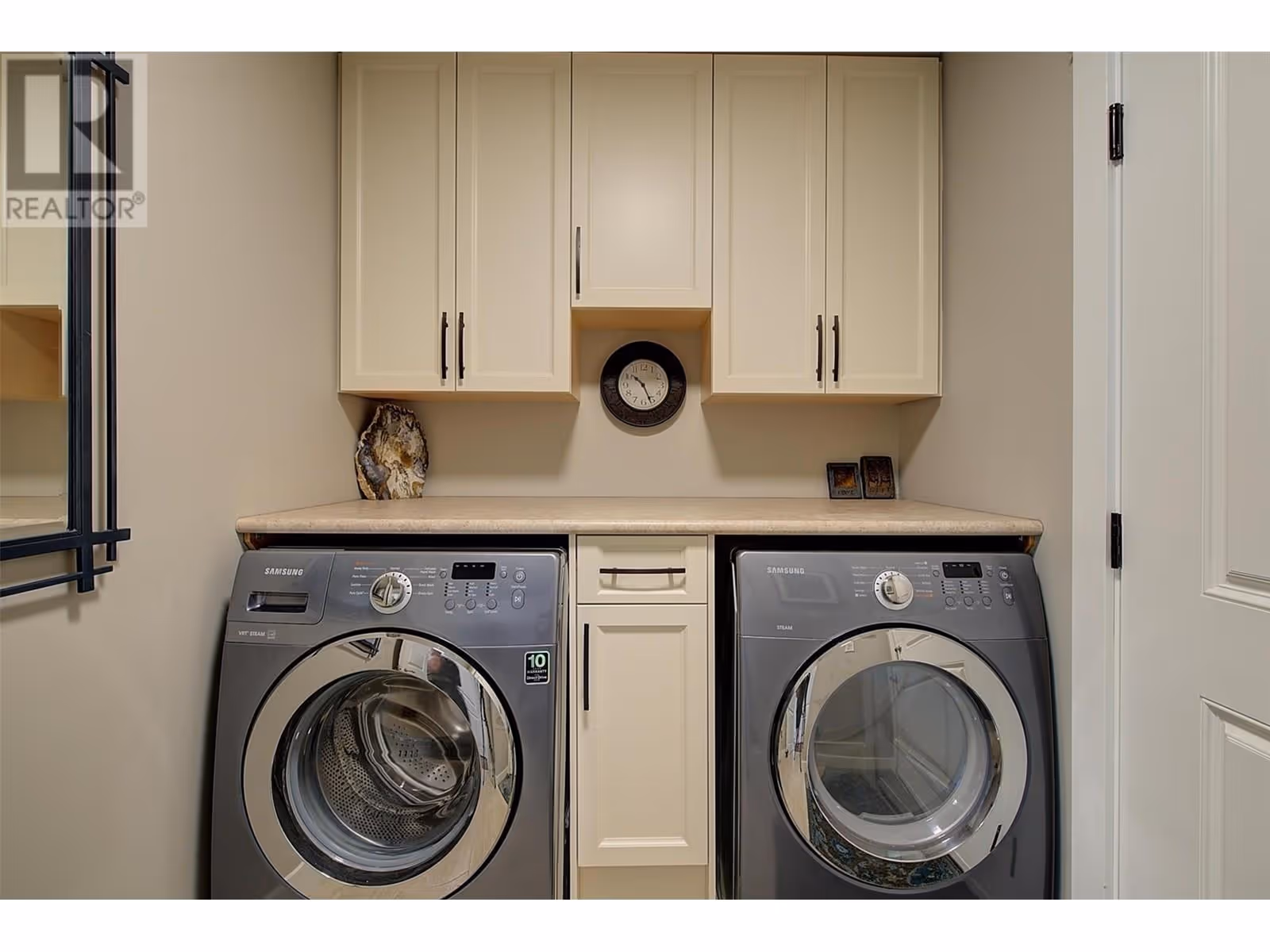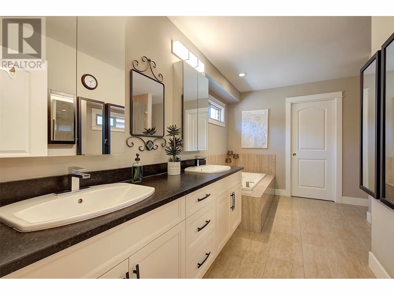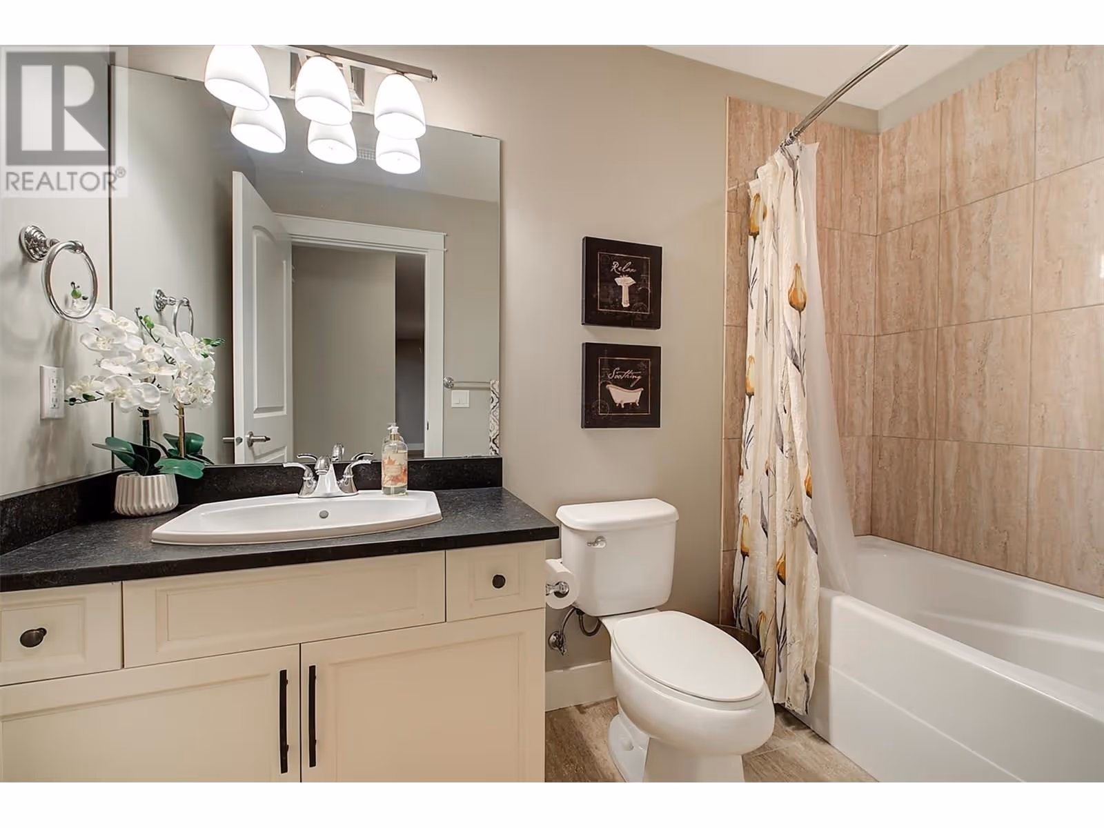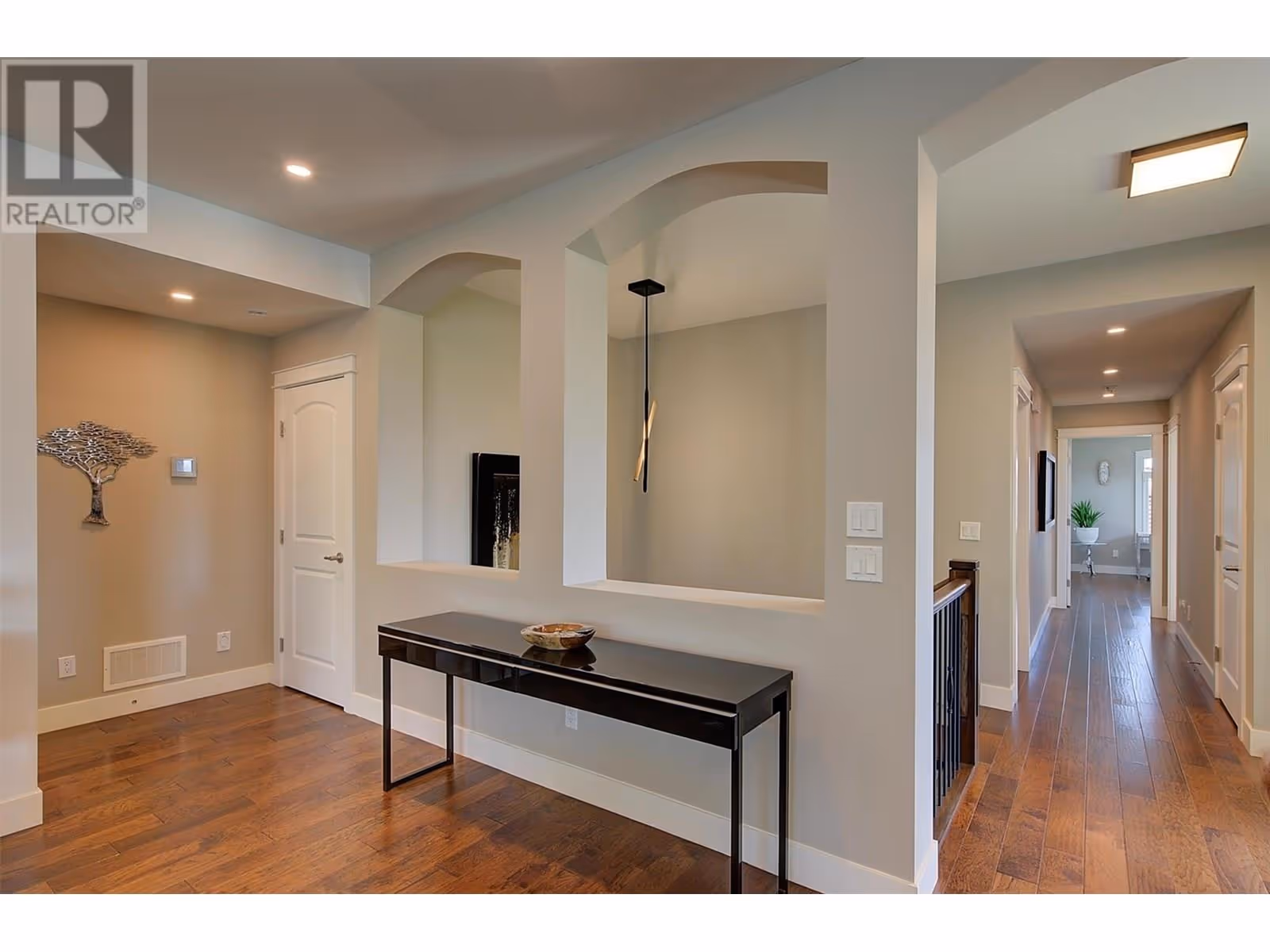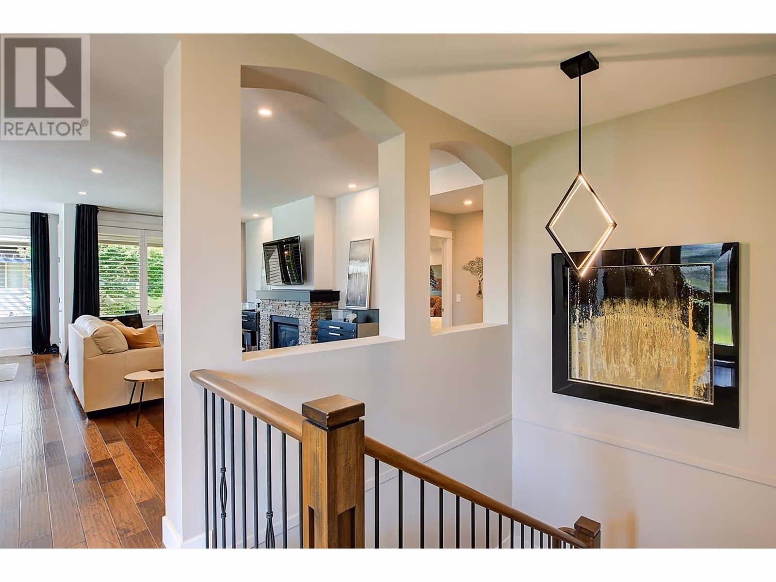 Don’t Miss the Boat… Literally! West Harbour — the ultimate in resort-style waterfront living in one of the Okanagan’s most coveted gated communities. This bright, modern home is ideally located beside the pool and hot tub for spontaneous dips, with a landscaped berm offering privacy. Just a 2-minute stroll to 500 feet of PRIVATE SANDY BEACH and your own 26' boat slip — BYOB: Bring Your Own Boat! Just open your backdoor to a true grade-level walkout (with no stairs to climb). This backyard oasis is fully fenced and surrounded by mature trees. Inside, this detached home features an elegant white kitchen with 42” uppers, a bold black island with honed granite, hardwood and tile flooring throughout. The open-concept functional layout offers a spacious living area bathed in natural light and windows with California shutters. The main level includes a generous primary bedroom with 5 piece ensuite and private access to the fenced yard. The second main level bedroom offset from the main living area with convenient access to an additional full bathroom. The finished lower level has two more bedrooms, a full bath, massive family room, and rare abundant storage. A double garage plus extra-long driveway fits oversized vehicles with ease. Enjoy unmatched amenities: beach, marina, clubhouse, gym, pickleball/tennis courts, pool, hot tub, and more — all for just $245/month. This is lakefront living at its best — stylish, spacious, and steps from Okanagan Lake. (id:58842)