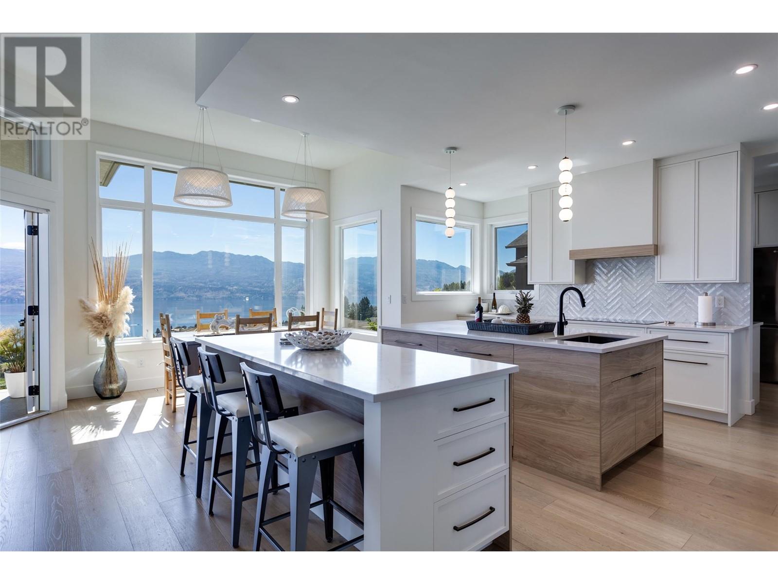 Nestled at the end of a peaceful cul-de-sac in Lakeview Heights this stunning walk-out rancher offers an unparalleled blend of luxury and comfort with breathtaking views of Okanagan Lake. It has been meticulously remodelled to showcase an open, flowing floor plan bathed in natural light, making it an oasis of modern Okanagan living. Step inside to discover a spacious, inviting interior that extends over a single generous level, featuring high-quality finishes and a neutral colour palette that complements any style. The heart of the home is a chef’s dream kitchen, equipped with top-of-the-line appliances, a double island, and a butler's pantry, perfect for entertaining and daily living. There is a large deck, where the vistas of the shimmering waters and vineyards form a dramatic backdrop to your daily activities. The home boasts 5 beds, including a spacious master suite that promises a tranquil retreat with its own stunning views and luxurious ensuite. On the lower level, there are 3 beds which can easily be suited if needed. Practical features include a double garage, ample storage, and RV parking. The landscaped garden has also been remodelled and enhances its curb appeal while providing privacy and tranquility, with the lower level fenced for your furry friends. Situated moments from the renowned Mission Hill Winery, this home offers a lifestyle of exceptional comfort and prestige in one of the most beautiful locations in BC. Get ready to move in and enjoy! (id:58842)