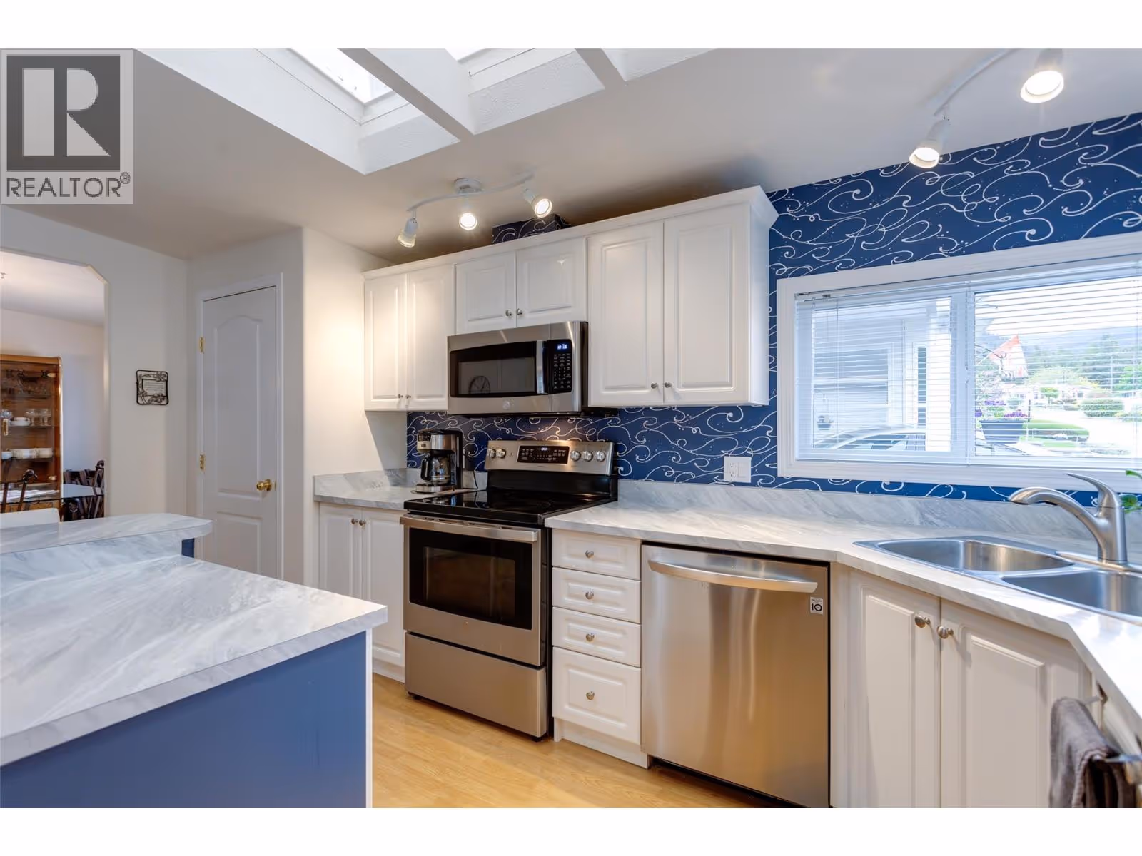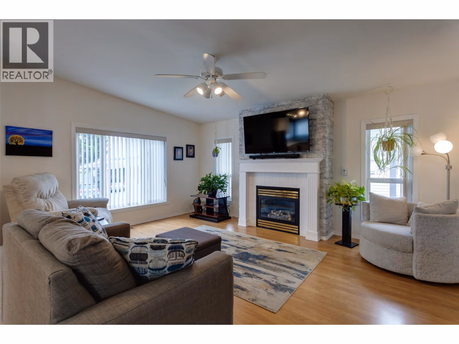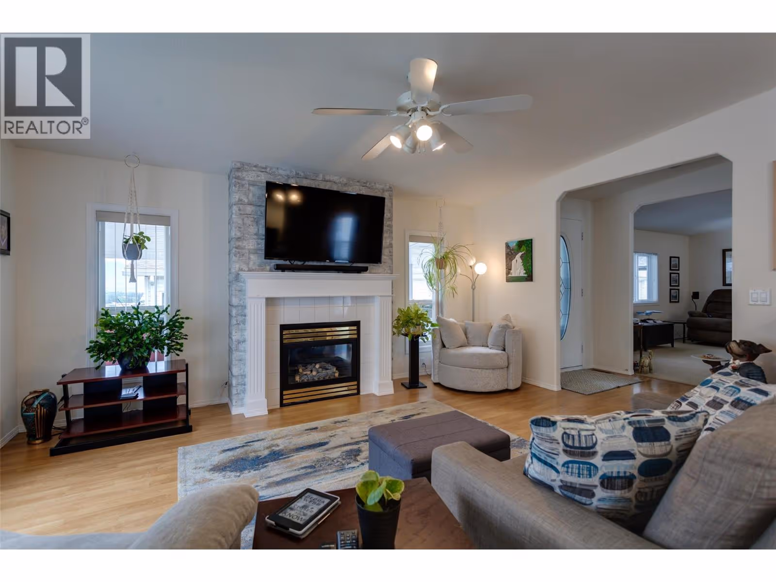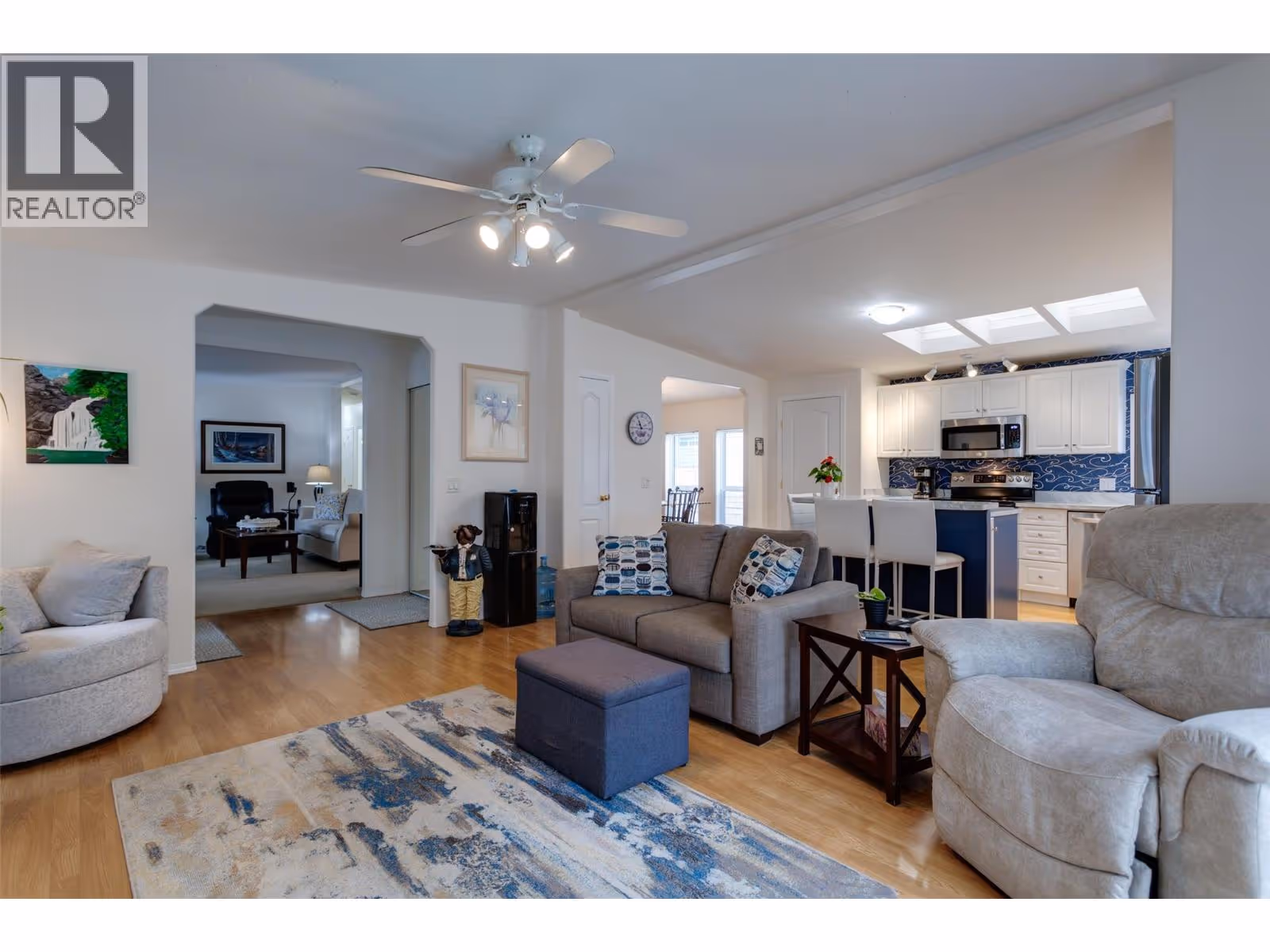 Welcome to Crystal Springs, one of West Kelowna’s most desirable 55+ gated communities, nestled in the scenic Shannon Lake area. This beautifully maintained 2 Bed + Den, 2 Bath manufactured home offers over 1,800 sq. ft. of comfortable, low-maintenance living. Vaulted ceilings, skylights, and large windows create a bright, open feel, while the spacious layout features both relaxed family spaces and formal living/dining rooms. The oversized primary suite includes a full ensuite with double vanity, walk-in shower, and walk-in closet. Enjoy the private covered deck and fenced backyard backing onto green space—ideal for quiet mornings or entertaining. Recent updates add peace of mind, including roof (2017), furnace & A/C (2018), hot water tank (2021), countertops (2023), and microwave (2025). Bonus features include a Grunfos hot water system, re-wrapped cupboards with soft-close hinges, plus a detached workshop and garden shed. Residents of Crystal Springs enjoy an active lifestyle with a clubhouse, guest suite, and outdoor games like bocce and shuffleboard. Pad rent is $700/month with quarterly water/sewer averaging $228. One small pet allowed (max 12 lbs, 14"") and rentals with park approval (no short-term). Very easy to show it's just a little notice. Perfectly located just minutes to Shannon Lake & Two Eagles Golf Courses, wineries, hiking, and West Kelowna’s best dining, this home combines comfort, community, and convenience. (id:58842)