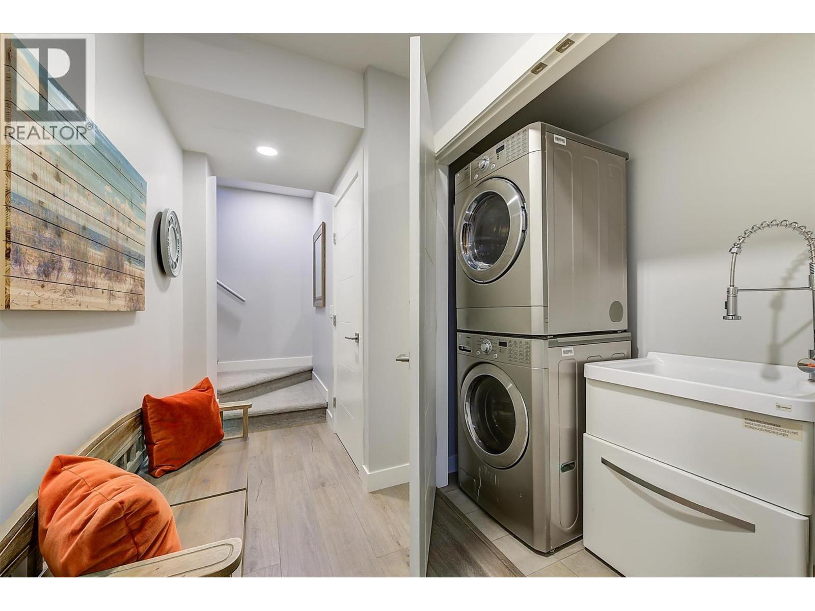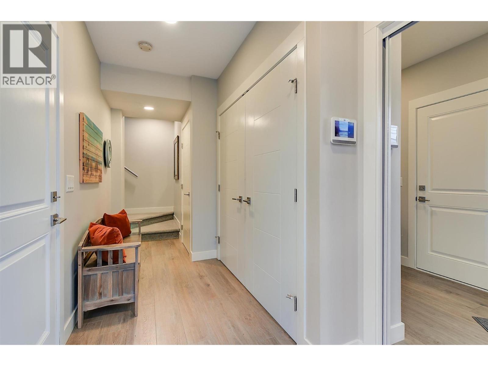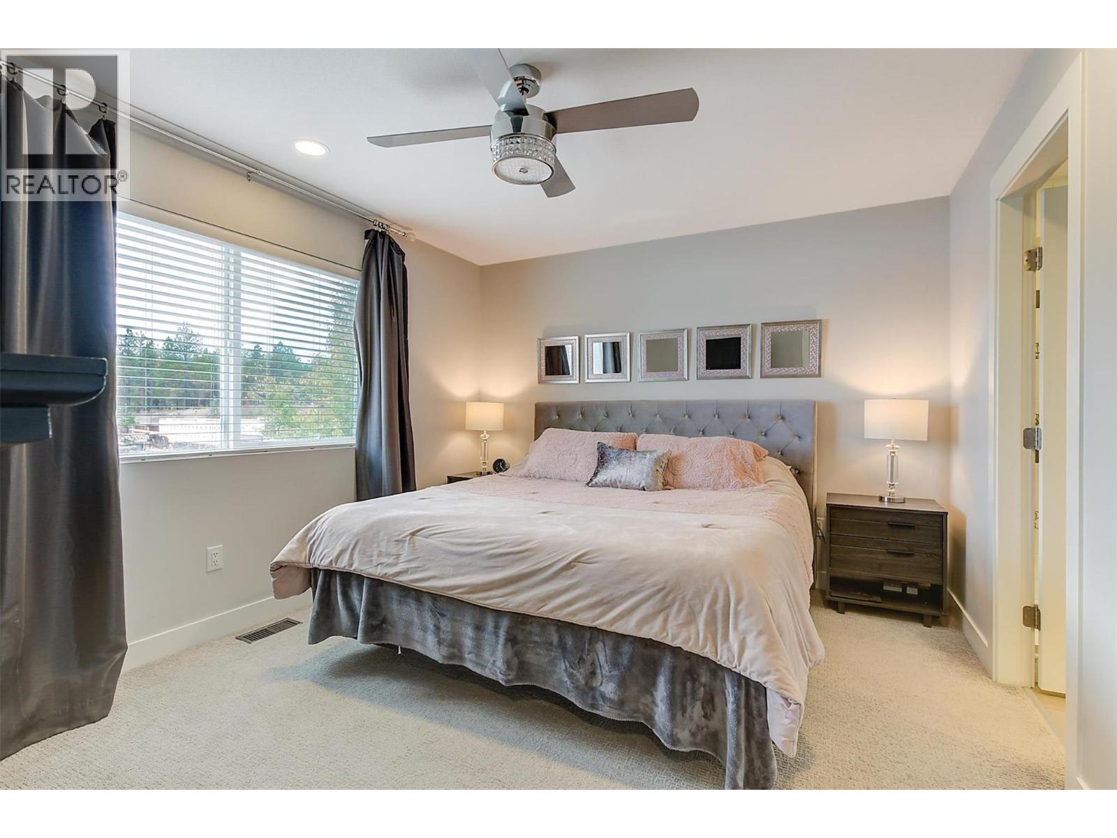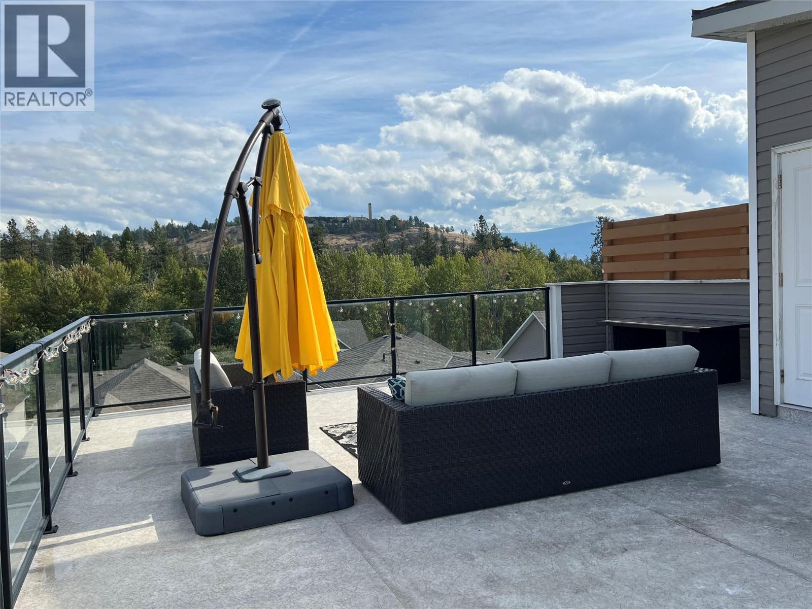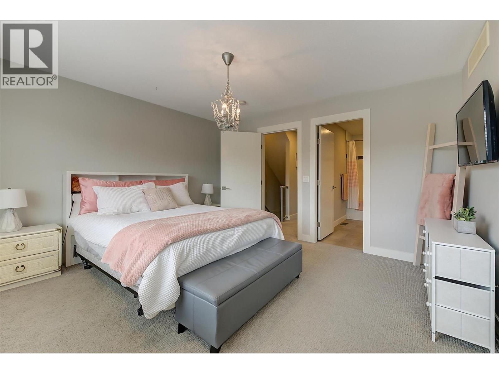 Welcome to the Elkridge community! This stunning townhome features a contemporary open-concept space with 9 ft ceilings in the main living area and oversized windows allowing natural light in. There's both a Private Fenced Safe Backyard PLUS a 540 sq ft ROOFTOP PATIO offering panoramic views of the mountains & Mission Hill Estate Winery. Two (2) very spacious and Completely SEPARATE PRIMARY BEDROOMS both with their own Ensuite Bathrooms and Walk in Closets. Additionally there's a 3rd room you can use for an office or storage. The kitchen has an earthy modern twist featuring high gloss easy clean white and driftwood tone cabinetry, quartz counter tops, stainless steel appliances and pantry. Walk straight out to the patio from the kitchen into the fully fenced backyard. Easy in and out for for barbequing, small garden, pets, kids and ultimately privacy. Double garage with ample storage plus 2 cars can park in the driveway. Laundry in entry and Garage door access into home. Fantastic convenient location just minutes to the lake, beaches, all shopping, schools, golf, restaurants, award winning wineries - you name it! 2 Pets allowed with no size restriction. Rentals allowed. NO Property Transfer Tax. No lease fees. Strata fee is only $275.50 a month. CMHC approved development. The lease is pre paid until 2109. This is a great family friendly community to become a part of. Let's go! (id:58842)