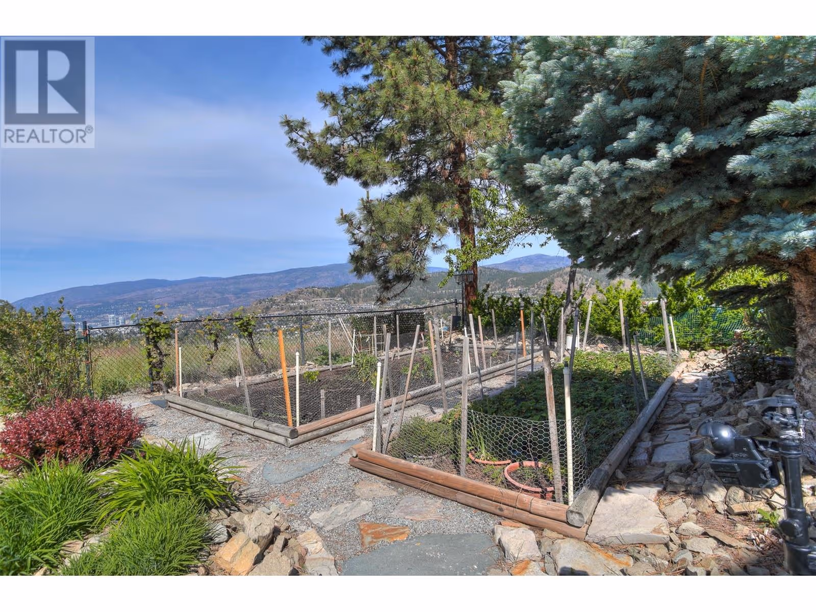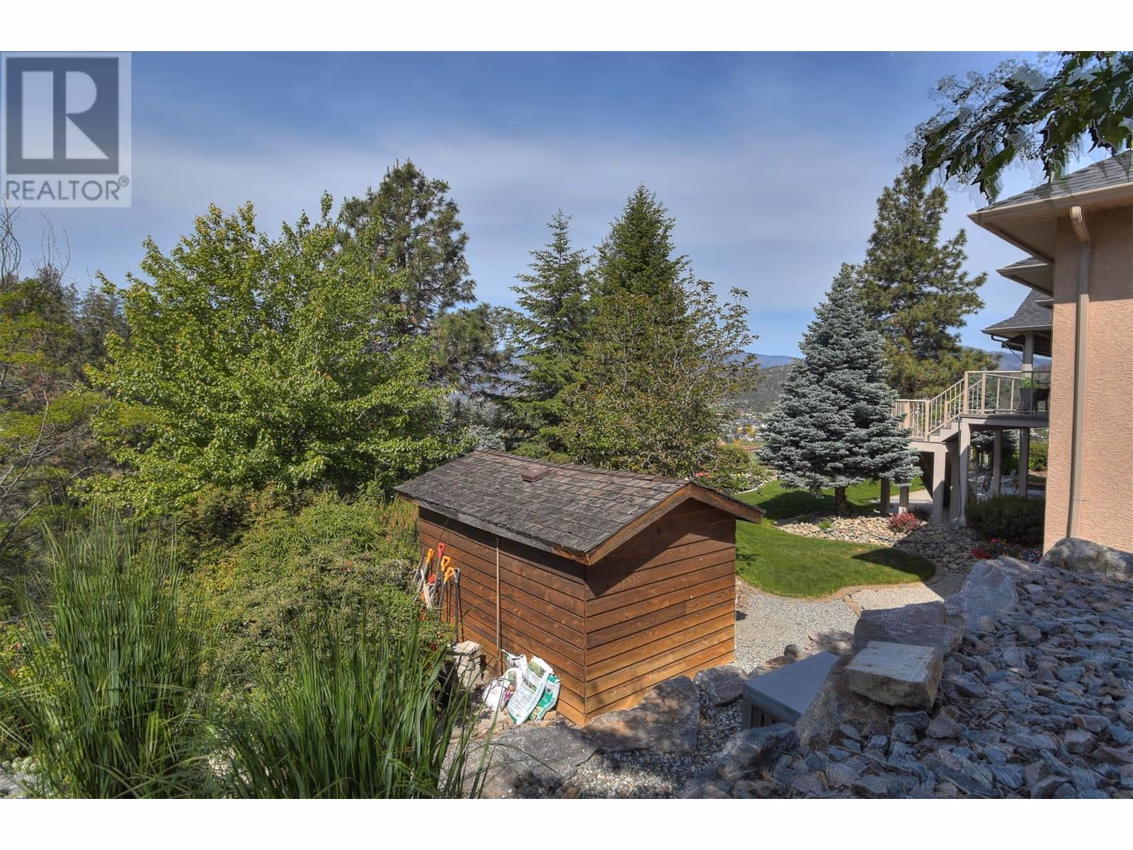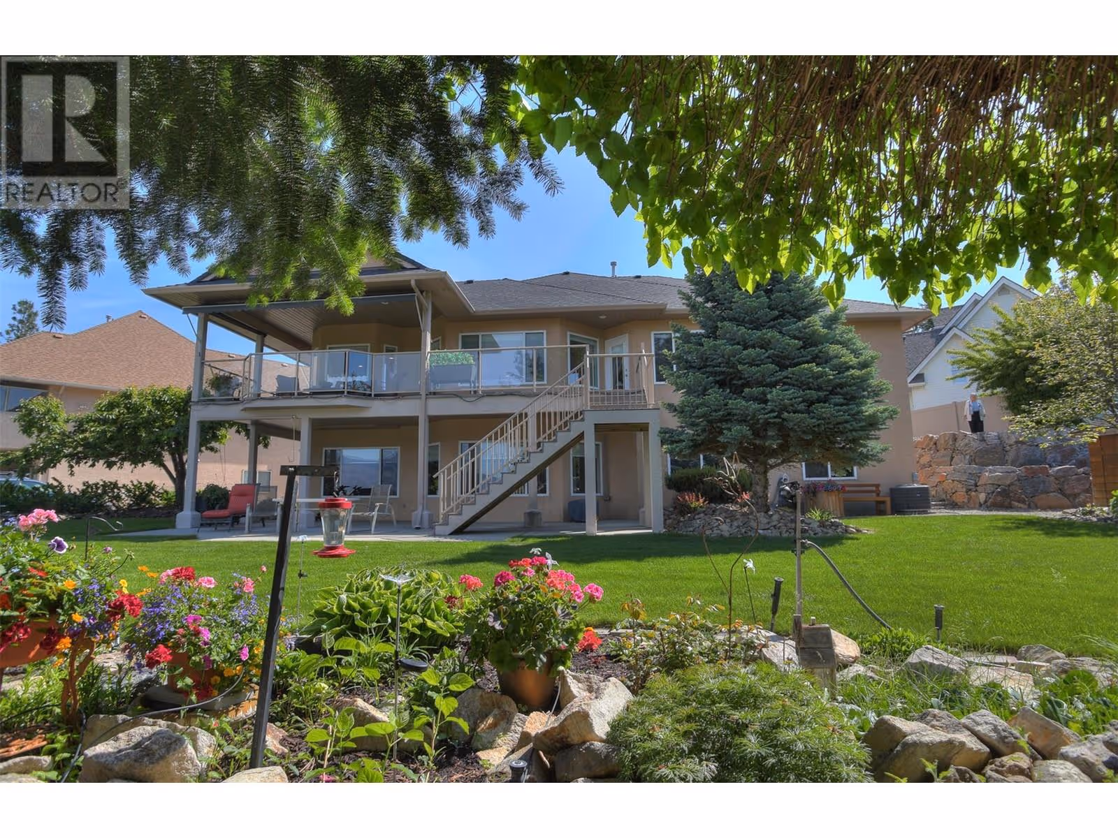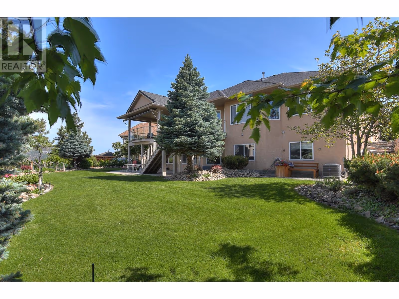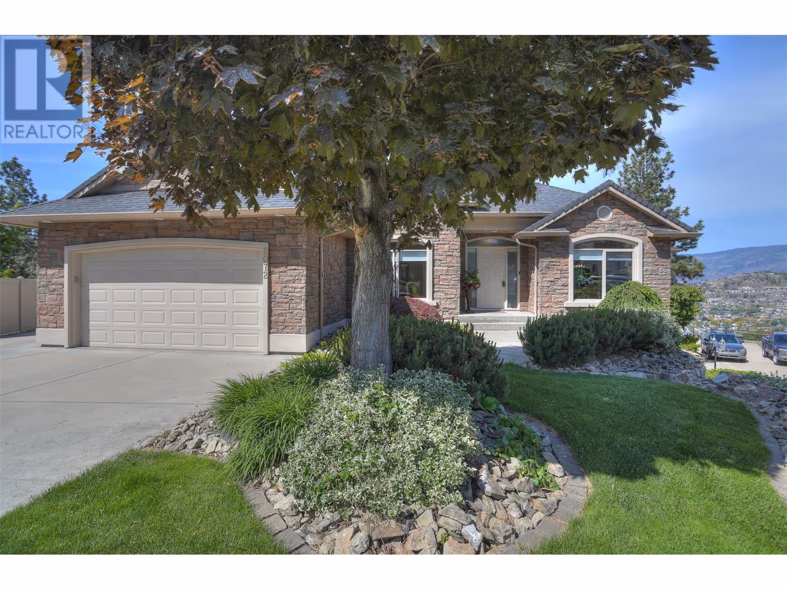 Truly a rare find on this small coveted private cul de sac on Dilworth Mountain. Only the second time on the market. You have the opportunity to enjoy the evening sunsets, twinkling lights in the valley and orchards below, along with colored hues of the sky reflected on Lake Okanagan with your loved ones from the balcony. This meticulously kept 4100 square foot rancher has been beautifully upgraded from roof, insulation, mechanical, Poly B plumbing, flooring, hardwood, carpet, kitchen cabinetry , island, countertops, appliances, 2 fireplaces, bathrooms, butlers pantry, blinds, windows, too numerous to mention. Primary and 1 bedroom, 2 bathrooms and office on the main floor. Access to upper deck from Kitchen and primary bedroom with covered deck and gas BBq Hookup. The lower level is easy to suite, has 3 bedrooms, bathroom, storage and oversized family room. The exterior is a sight to behold, professional landscaping around the entire yard, 7 irrigation zones, with a triple driveway, one extending toward the back with an engineered parking pad. Multi car parking with no jockeying required. Please call your agent for a private viewing and spec list. of this amazing home. (id:58842)