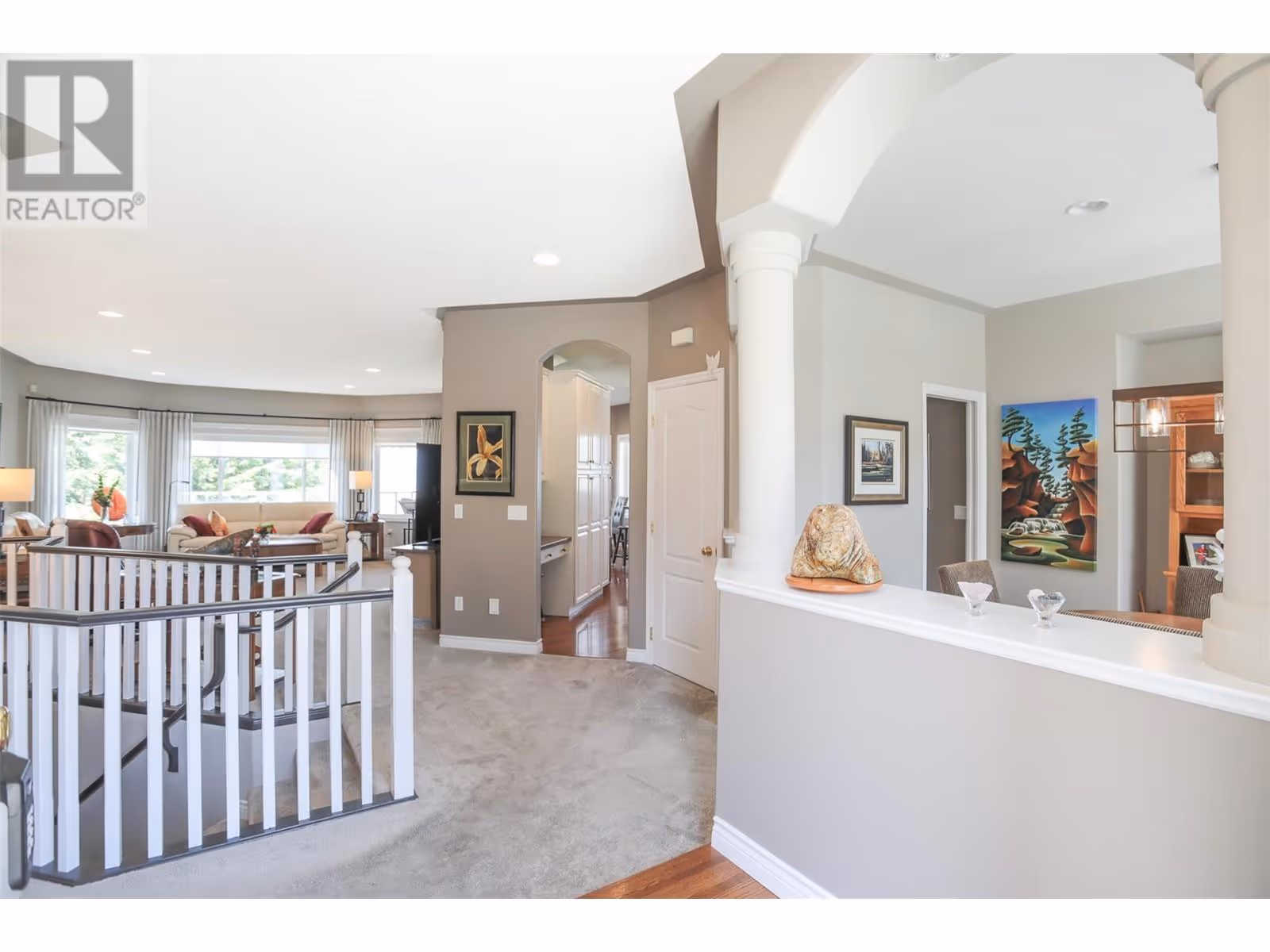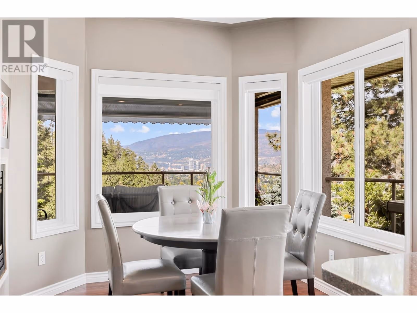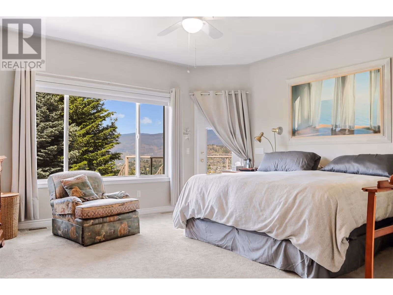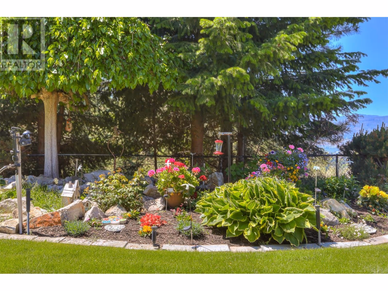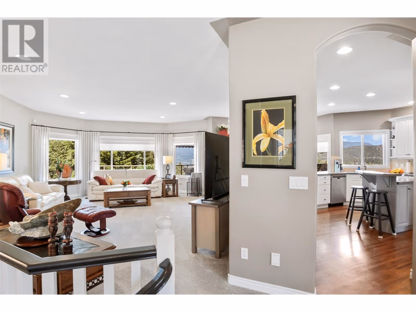 Truly a rare find on this small coveted private cul de sac on Dilworth Mountain. Only the second time on the market. You have the opportunity to enjoy the evening sunsets, twinkling lights in the valley and orchards below, along with colored hues of the sky reflected on Lake Okanagan with your loved ones from the balcony. This meticulously kept 4100 square foot rancher has been beautifully upgraded from roof, insulation, mechanical, Poly B plumbing, flooring, hardwood, carpet, kitchen cabinetry , island, countertops, appliances, 2 fireplaces, bathrooms, butlers pantry, blinds, windows, too numerous to mention. Primary and 1 bedroom, 2 bathrooms and office on the main floor. Access to upper deck from Kitchen and primary bedroom with covered deck and gas BBq Hookup. The lower level is easy to suite, has 3 bedrooms, bathroom, storage and oversized family room. The exterior is a sight to behold, professional landscaping around the entire yard, 7 irrigation zones, with a triple driveway, one extending toward the back with an engineered parking pad. Multi car parking with no jockeying required. Please call your agent for a private viewing and spec list. of this amazing home. (id:58842)