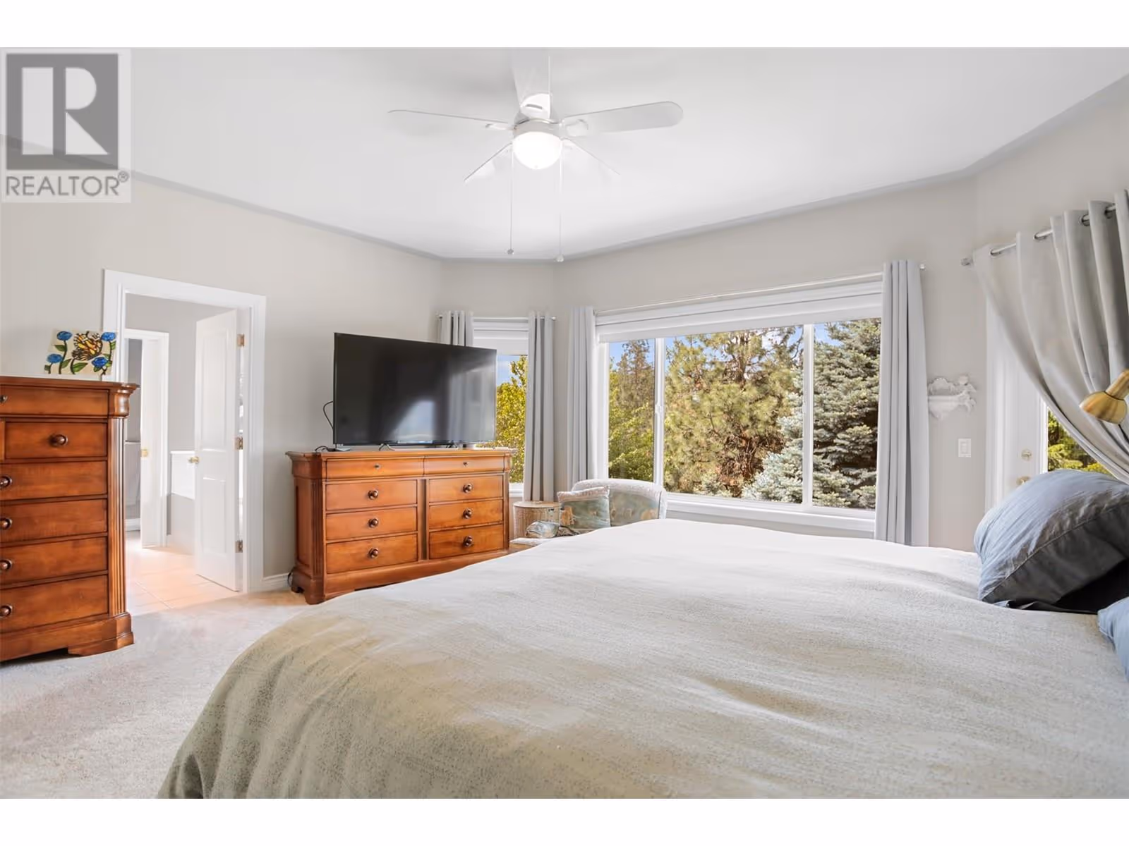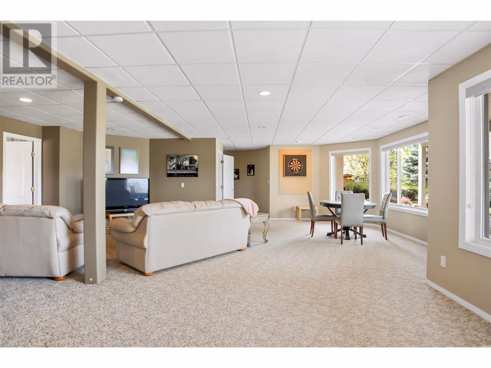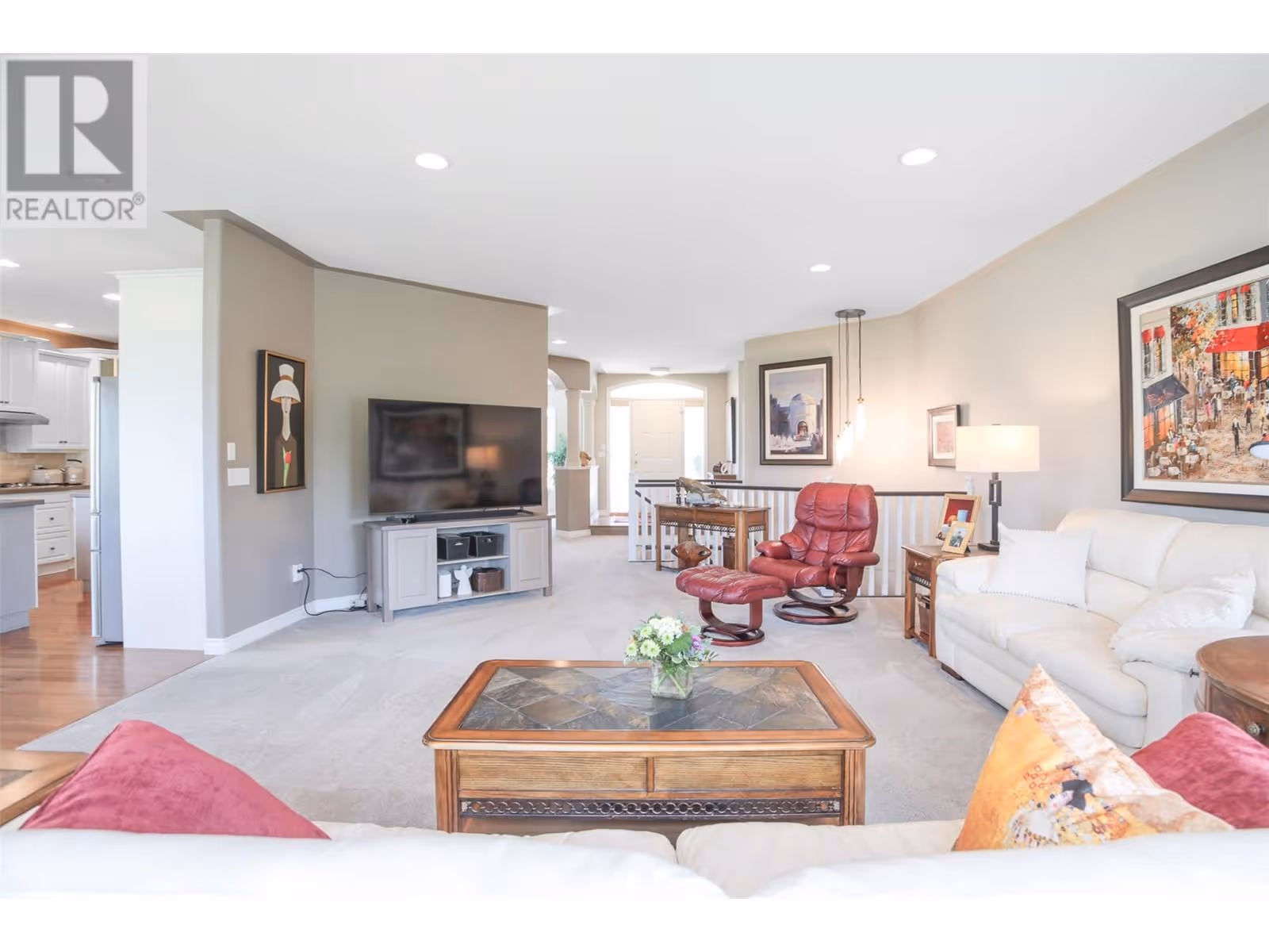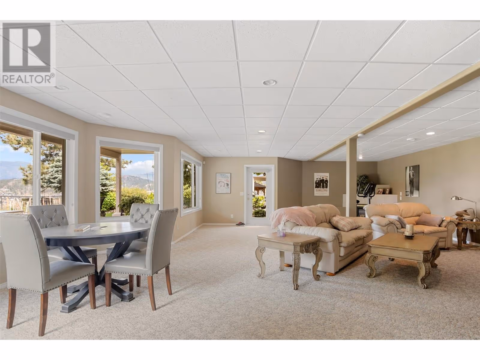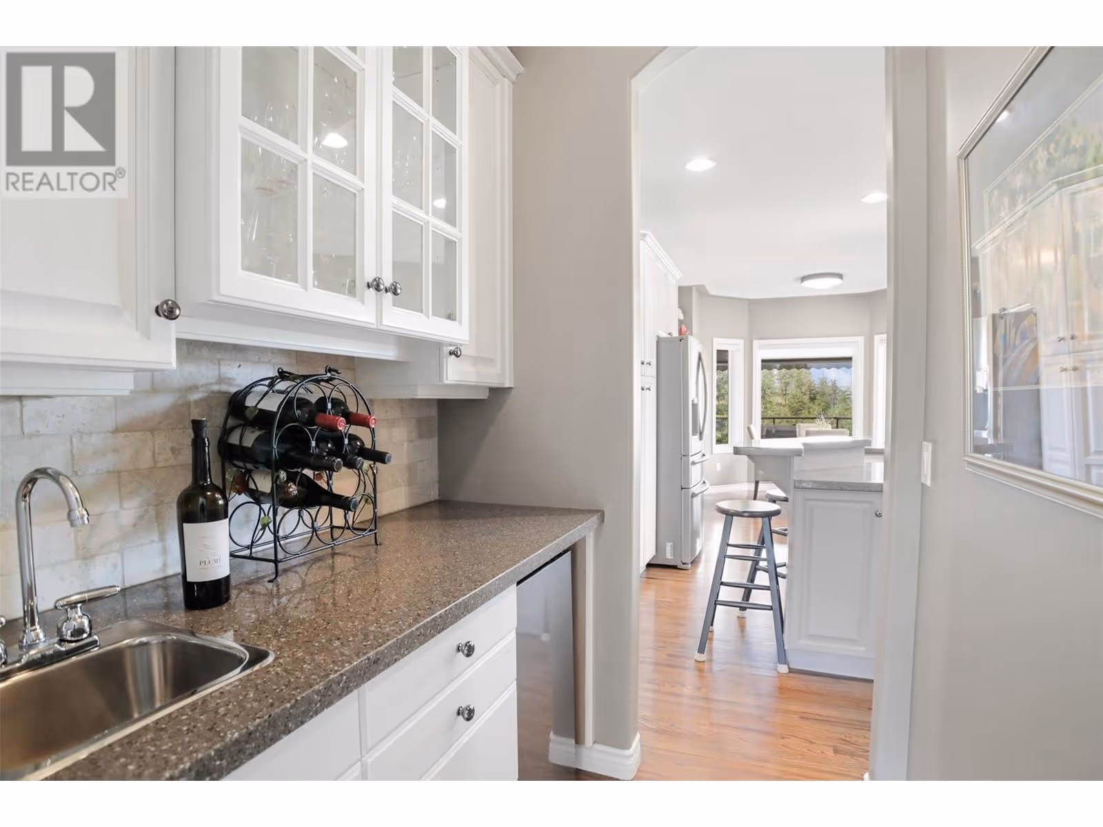 Truly a rare find on this small coveted private cul de sac on Dilworth Mountain. Only the second time on the market. You have the opportunity to enjoy the evening sunsets, twinkling lights in the valley and orchards below, along with colored hues of the sky reflected on Lake Okanagan with your loved ones from the balcony. This meticulously kept 4100 square foot rancher has been beautifully upgraded from roof, insulation, mechanical, Poly B plumbing, flooring, hardwood, carpet, kitchen cabinetry , island, countertops, appliances, 2 fireplaces, bathrooms, butlers pantry, blinds, windows, too numerous to mention. Primary and 1 bedroom, 2 bathrooms and office on the main floor. Access to upper deck from Kitchen and primary bedroom with covered deck and gas BBq Hookup. The lower level is easy to suite, has 3 bedrooms, bathroom, storage and oversized family room. The exterior is a sight to behold, professional landscaping around the entire yard, 7 irrigation zones, with a triple driveway, one extending toward the back with an engineered parking pad. Multi car parking with no jockeying required. Please call your agent for a private viewing and spec list. of this amazing home. (id:58842)