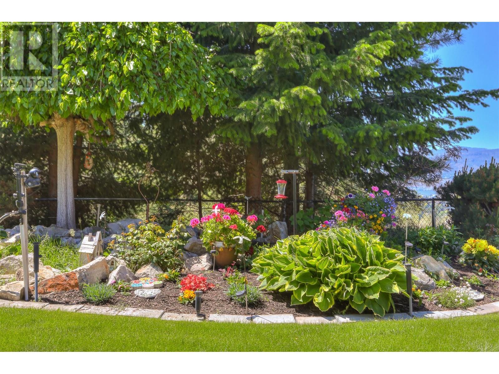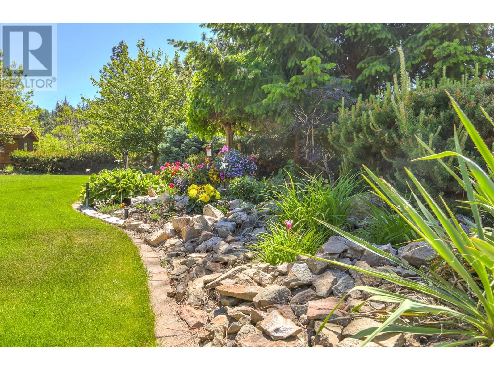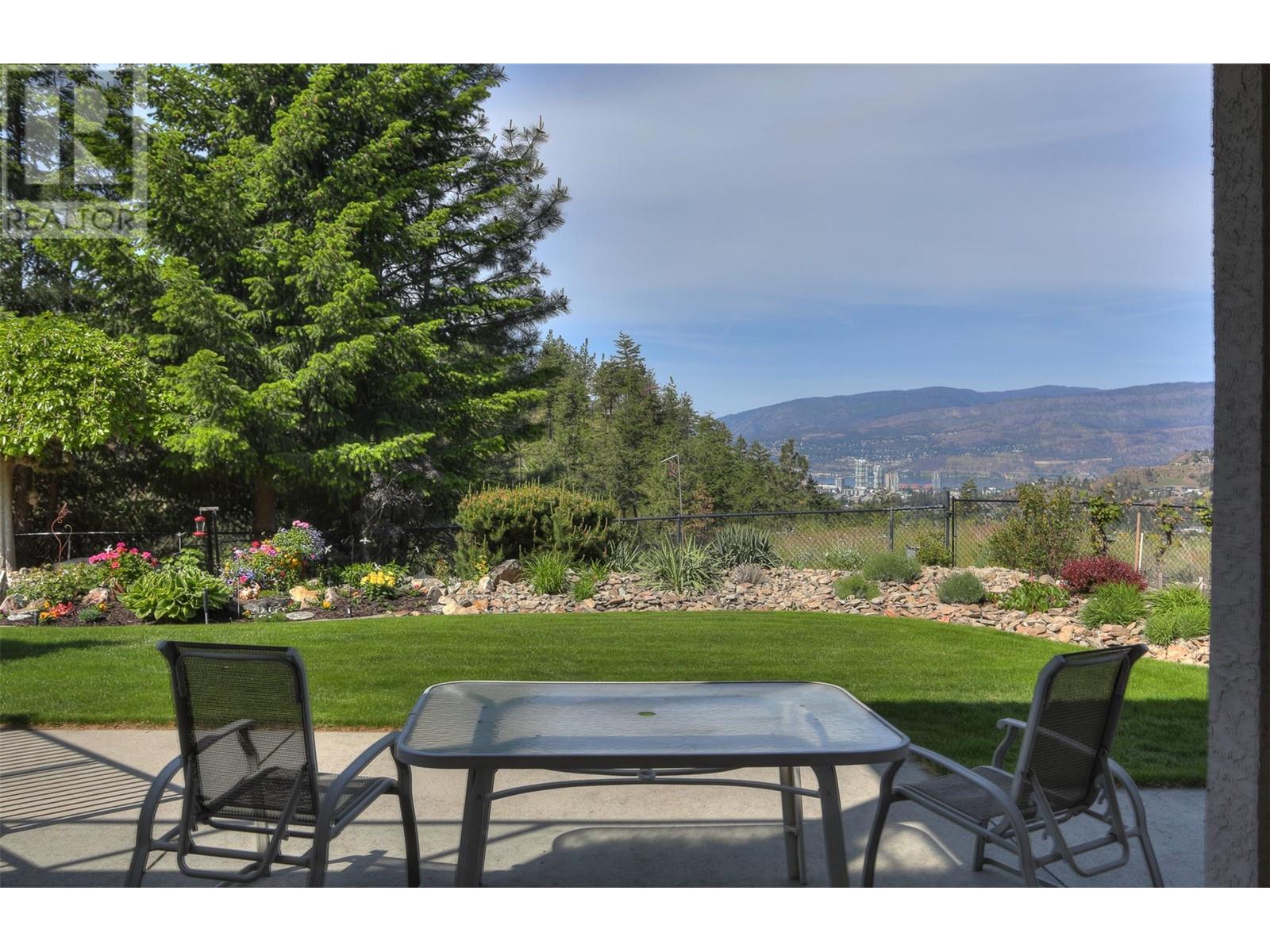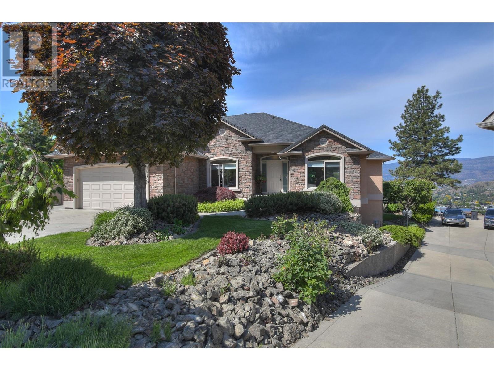 Truly a rare find on this small coveted private cul de sac on Dilworth Mountain. Only the second time on the market. You have the opportunity to enjoy the evening sunsets, twinkling lights in the valley and orchards below, along with colored hues of the sky reflected on Lake Okanagan with your loved ones from the balcony. This meticulously kept 4100 square foot rancher has been beautifully upgraded from roof, insulation, mechanical, Poly B plumbing, flooring, hardwood, carpet, kitchen cabinetry , island, countertops, appliances, 2 fireplaces, bathrooms, butlers pantry, blinds, windows, too numerous to mention. Primary and 1 bedroom, 2 bathrooms and office on the main floor. Access to upper deck from Kitchen and primary bedroom with covered deck and gas BBq Hookup. The lower level is easy to suite, has 3 bedrooms, bathroom, storage and oversized family room. The exterior is a sight to behold, professional landscaping around the entire yard, 7 irrigation zones, with a triple driveway, one extending toward the back with an engineered parking pad. Multi car parking with no jockeying required. Please call your agent for a private viewing and spec list. of this amazing home. (id:58842)