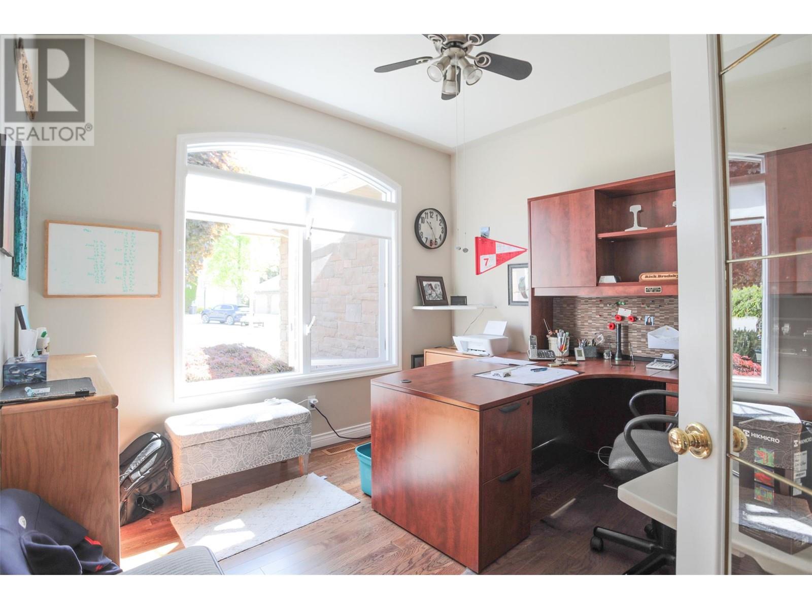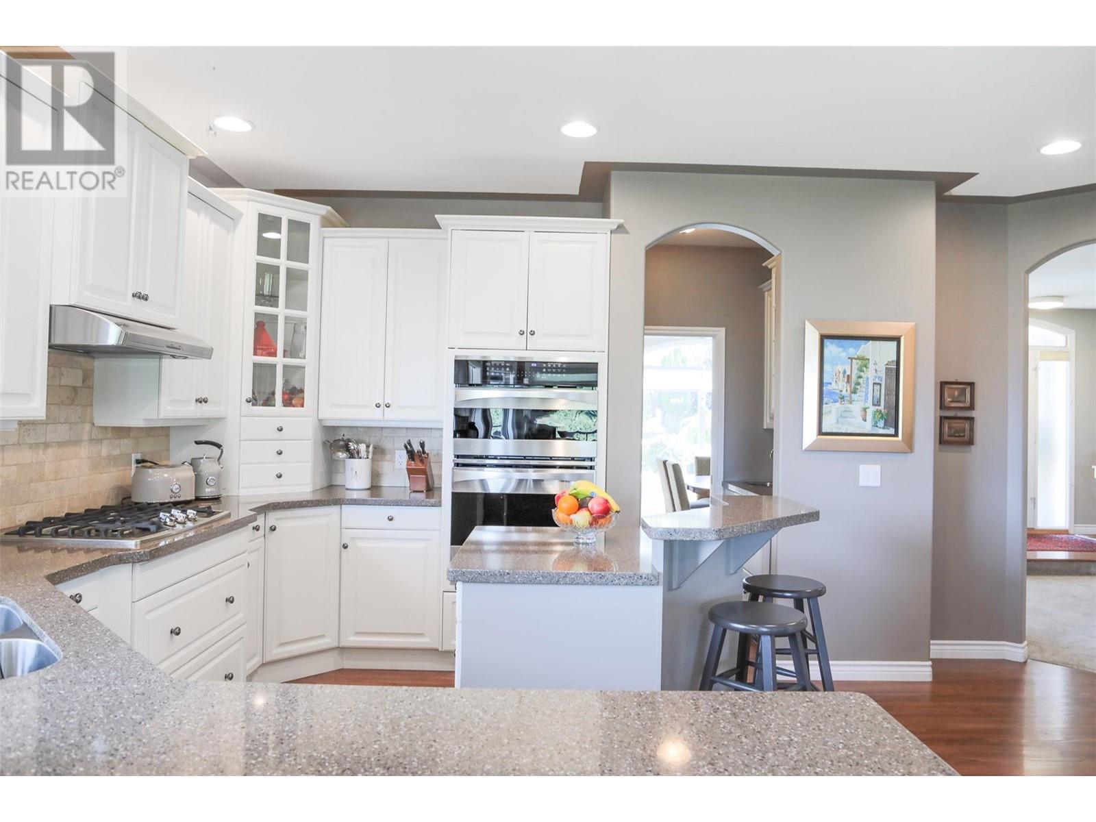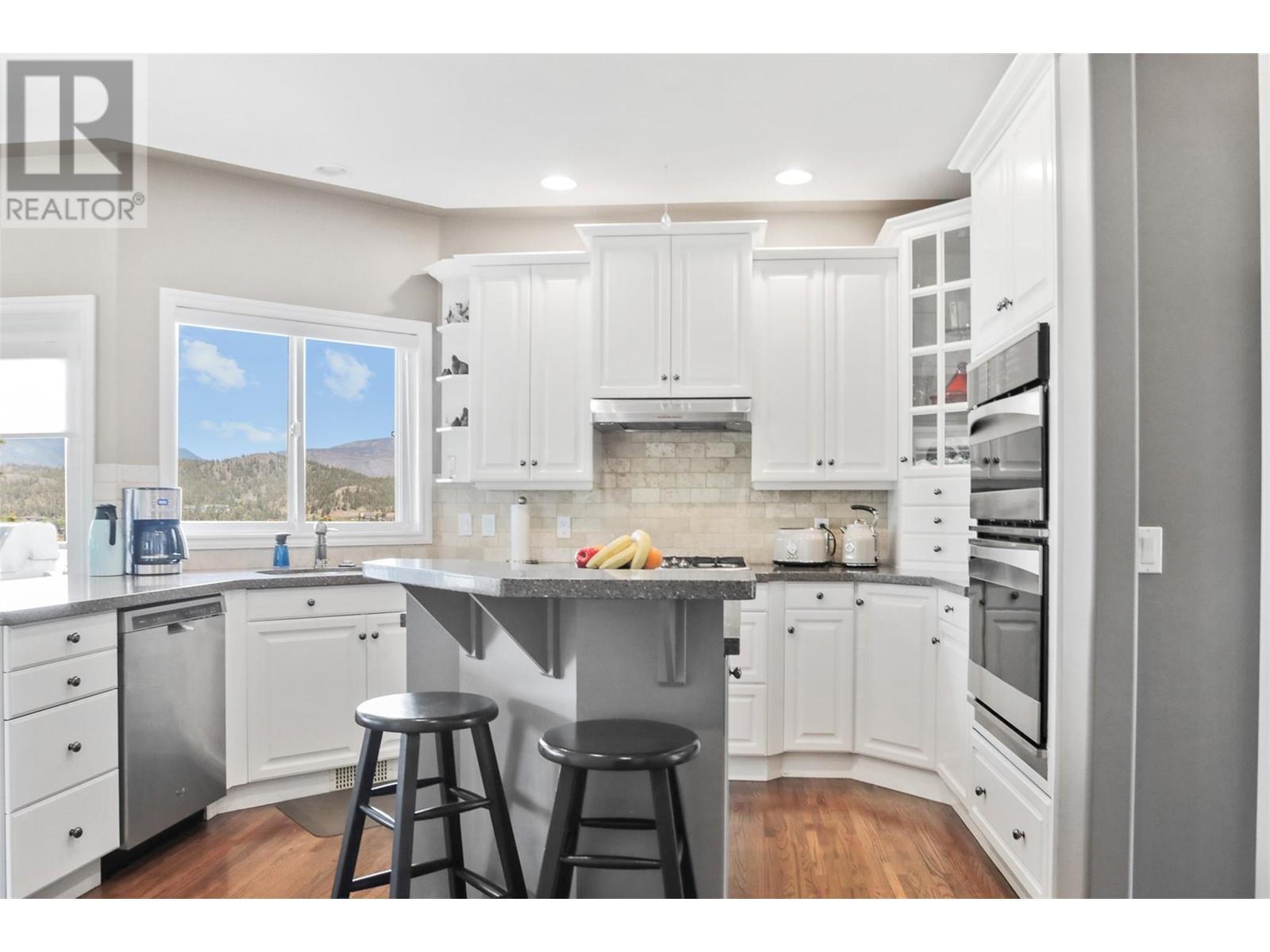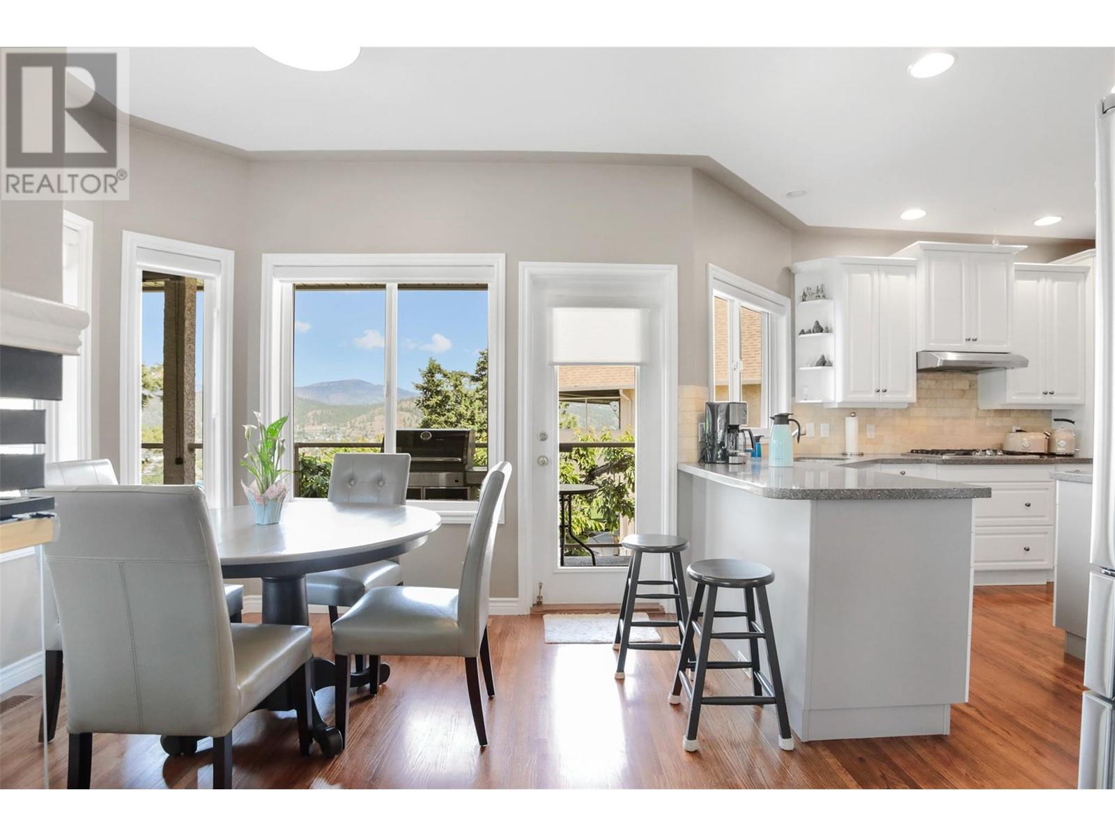 Truly a rare find on this small coveted private cul de sac on Dilworth Mountain. Only the second time on the market. You have the opportunity to enjoy the evening sunsets, twinkling lights in the valley and orchards below, along with colored hues of the sky reflected on Lake Okanagan with your loved ones from the balcony. This meticulously kept 4100 square foot rancher has been beautifully upgraded from roof, insulation, mechanical, Poly B plumbing, flooring, hardwood, carpet, kitchen cabinetry , island, countertops, appliances, 2 fireplaces, bathrooms, butlers pantry, blinds, windows, too numerous to mention. Primary and 1 bedroom, 2 bathrooms and office on the main floor. Access to upper deck from Kitchen and primary bedroom with covered deck and gas BBq Hookup. The lower level is easy to suite, has 3 bedrooms, bathroom, storage and oversized family room. The exterior is a sight to behold, professional landscaping around the entire yard, 7 irrigation zones, with a triple driveway, one extending toward the back with an engineered parking pad. Multi car parking with no jockeying required. Please call your agent for a private viewing and spec list. of this amazing home. (id:58842)