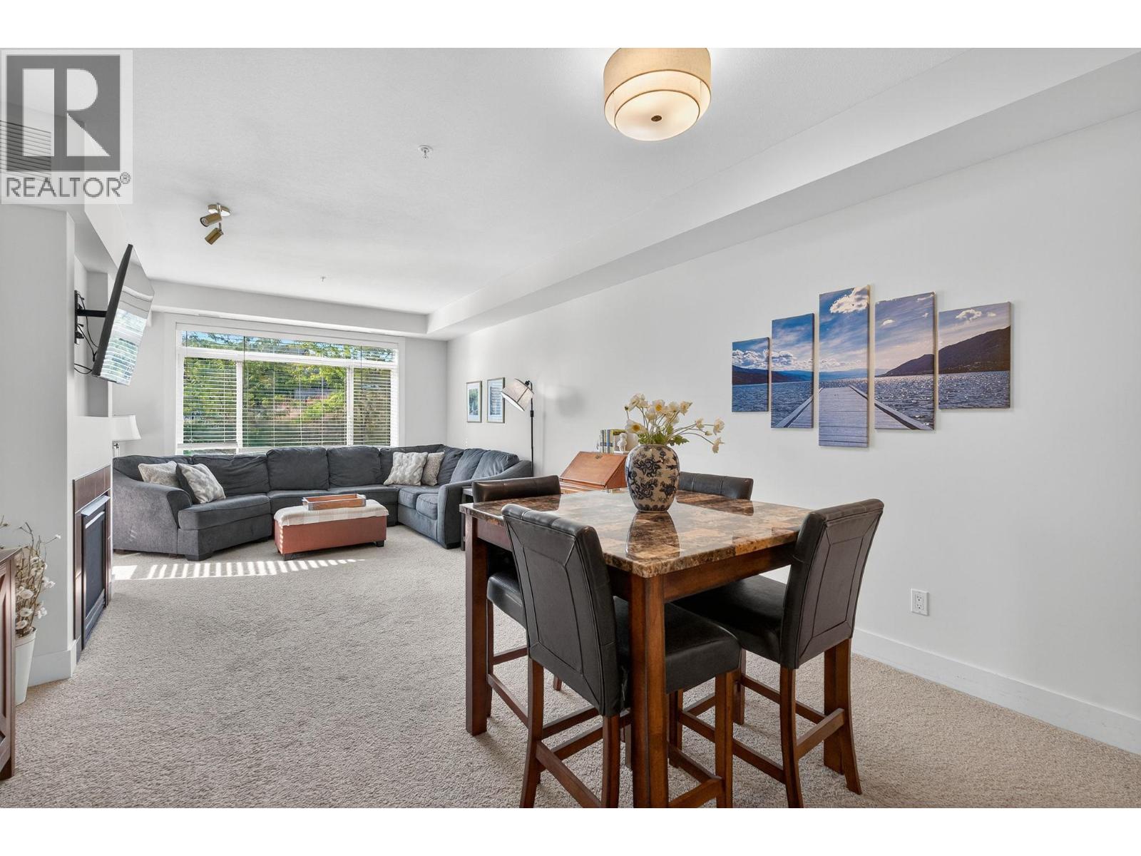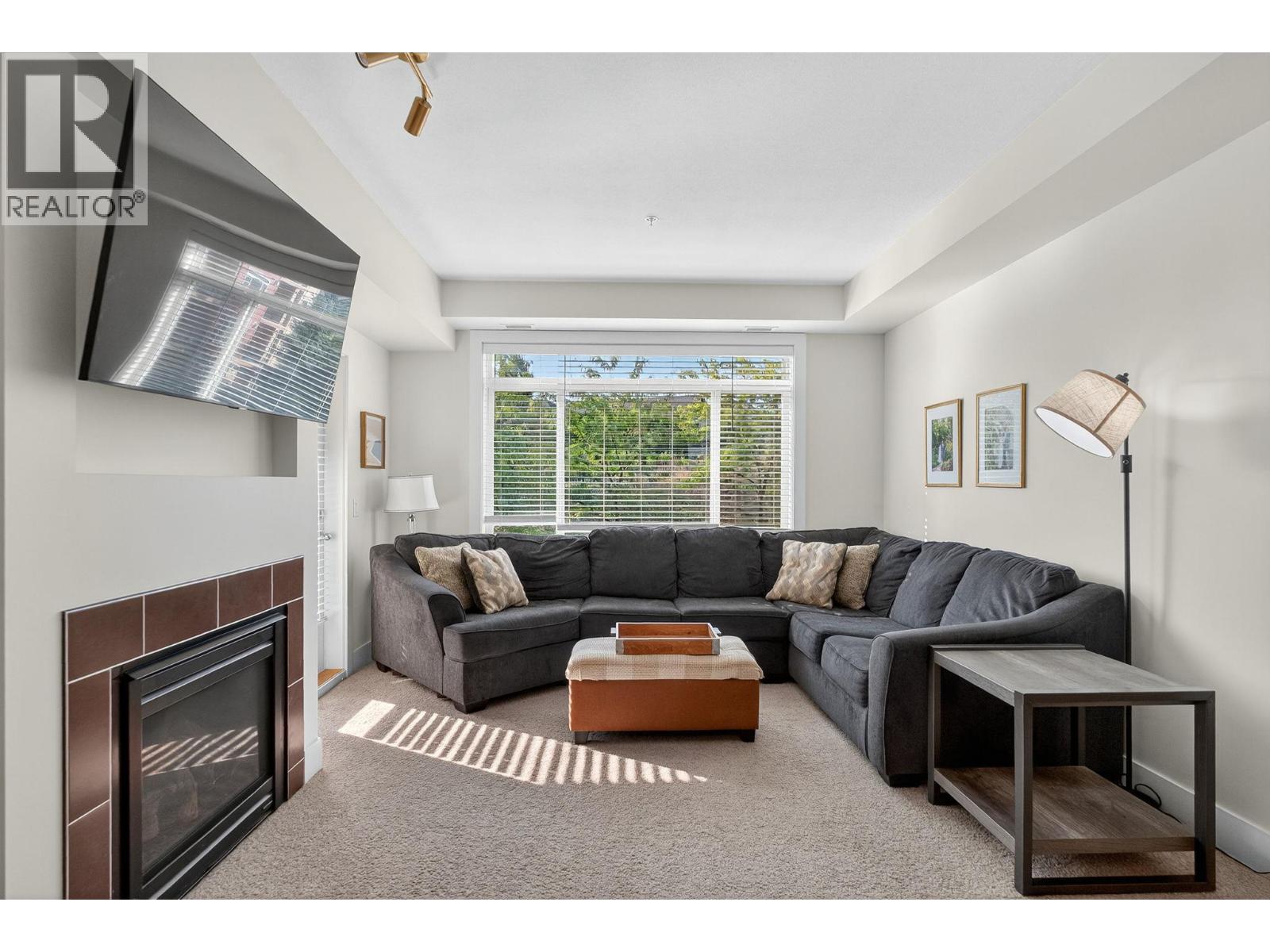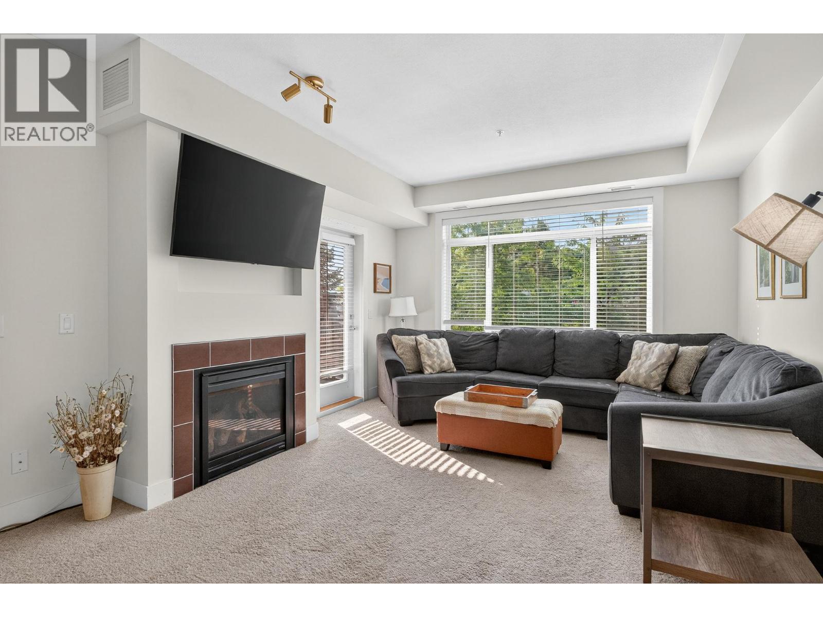 Welcome to Winterra at The Lakes! This stylish unit combines space, comfort, and an inviting open-concept design. Oversized windows fill the home with natural light, creating a bright and airy atmosphere that’s sure to impress. Since purchasing, the sellers have added fresh paint, new light fixtures, a new fridge and dishwasher, and have repaired the evaporator coil and motor on the AC unit, ensuring both modern style and functionality. The spacious kitchen is a standout, featuring a gas stove and abundant cabinetry, and plenty of storage, perfect for both everyday living and entertaining. Seamlessly connected, the dining and living areas are anchored by a cozy gas fireplace, while the balcony features a gas BBQ hookup which offers the ideal spot to unwind in the sun or host family and friends. The thoughtful layout includes a generously sized bedroom and full bathroom, blending functionality with comfort. Year-round ease is ensured with gas forced-air heating, central A/C, and included window coverings. As part of Winterra, you’ll also enjoy access to a clubhouse with fitness room and guest suite. The community is pet-friendly (large breeds okay) and ideally located close to renowned wineries, golf, skiing, the airport, and UBCO. A perfect blend of convenience, style, and location, this home offers a lifestyle you’ll love. (id:58842)