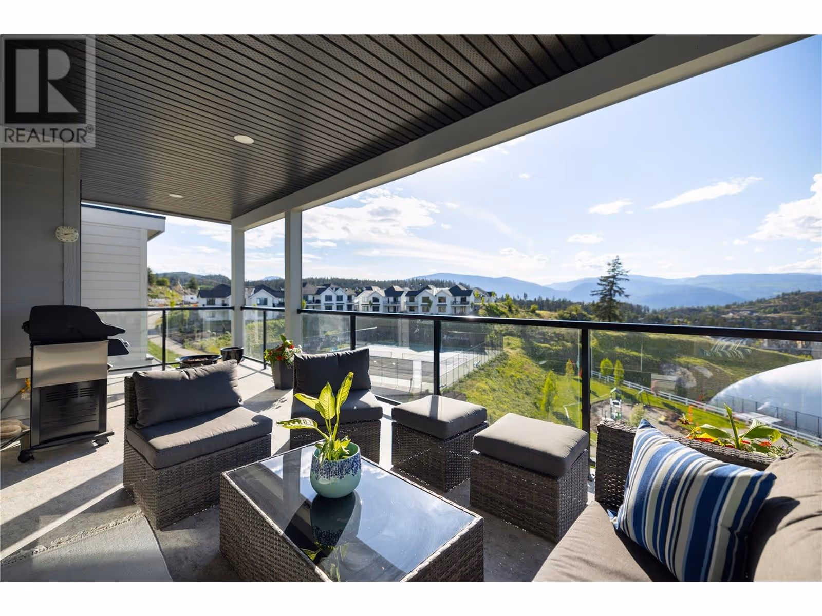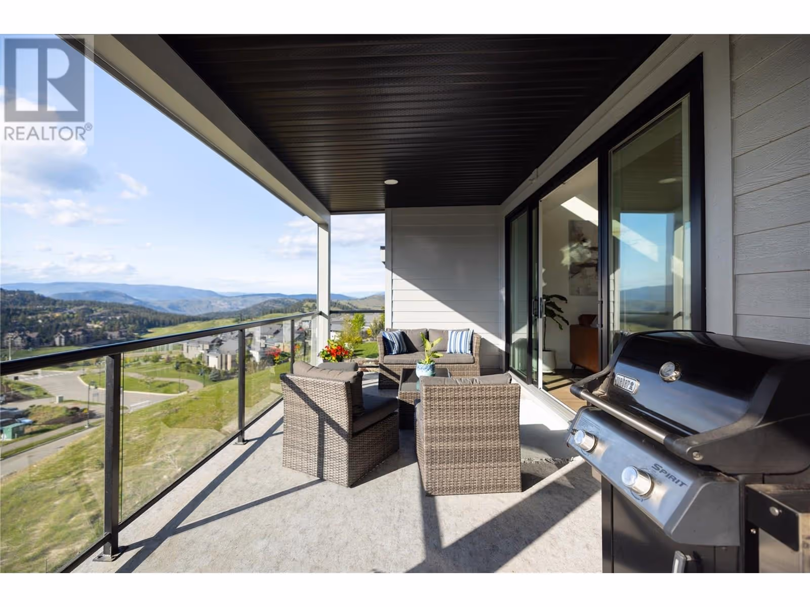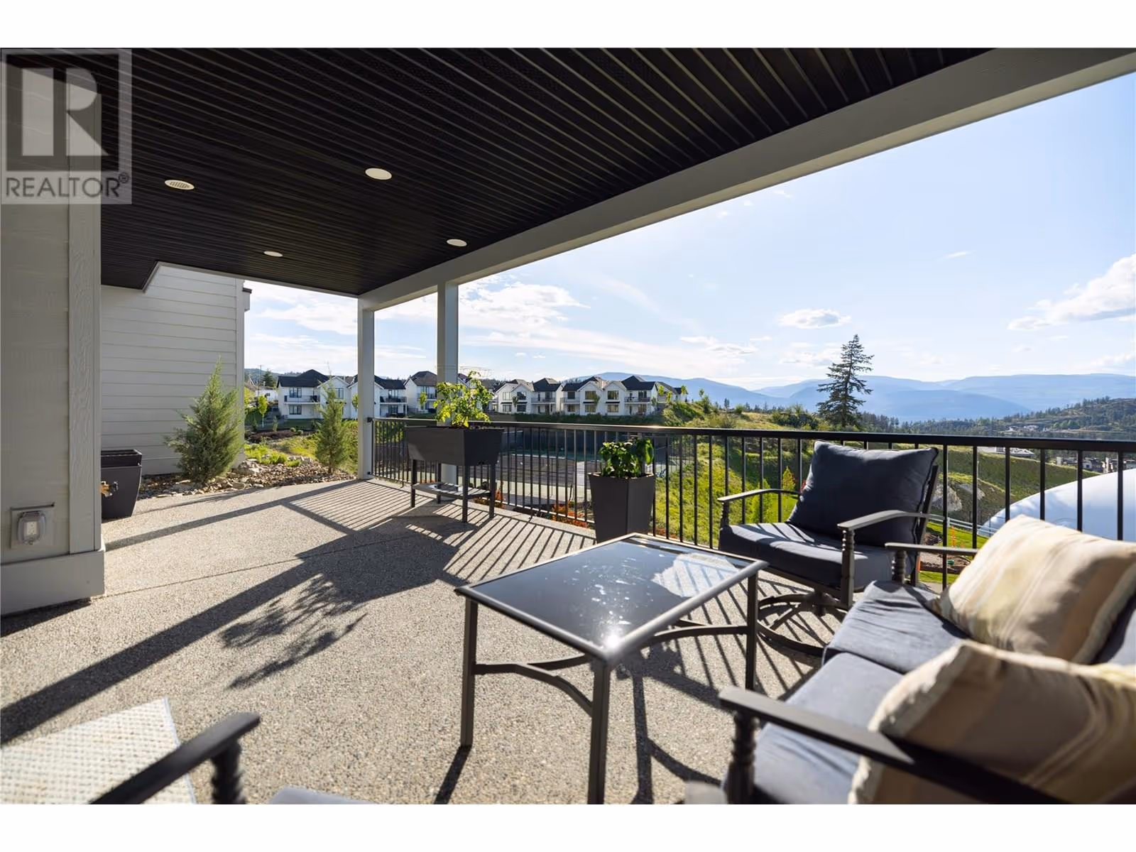 Live in the prestigious golf community of Predator Ridge, this exquisite townhouse offers luxurious living in a lush natural setting. Featuring 3 bedrooms, 3 bathrooms, and approx. 2,600 square feet of modern living, this home is a testament to style and comfort. The open main living floor seamlessly blends contemporary finishes with functional design. The chef's kitchen is a culinary delight, featuring quartz countertops, an oversized island, and stainless steel appliances. The living room is centered around a cozy fireplace and provides direct access to the oversized patio, perfect for alfresco dining or relaxing in the sun. High ceilings and large picture windows flood the space with natural light, creating a bright and inviting atmosphere. Retreat to your main level primary suite with direct patio access, a walk-in closet, and a spa-inspired 5-piece en-suite. The walkout basement includes a large rec room, two additional bedrooms connected by a jack-and-jill bathroom, and access to the second oversized patio. Strata fee includes Predator Ridge Community fee, encompassing access to the fitness centre, indoor lap pool, tennis courts and all hiking trails.. Explore nearby hiking/biking trails, beaches, parks, three beautiful lakes, and award-winning wineries. Just a 15-minute drive from downtown Vernon and 5 mins to Sparkling Hill Resort and Spa. Experience Okanagan living at its finest! (id:58842)