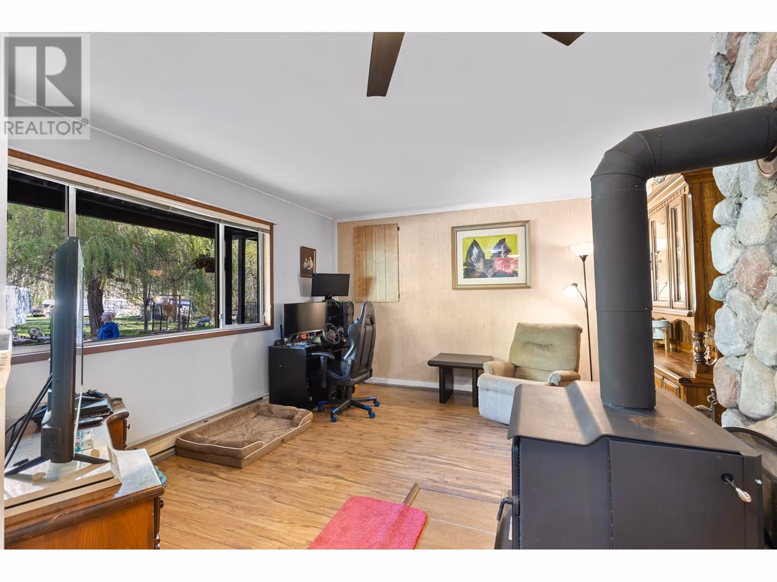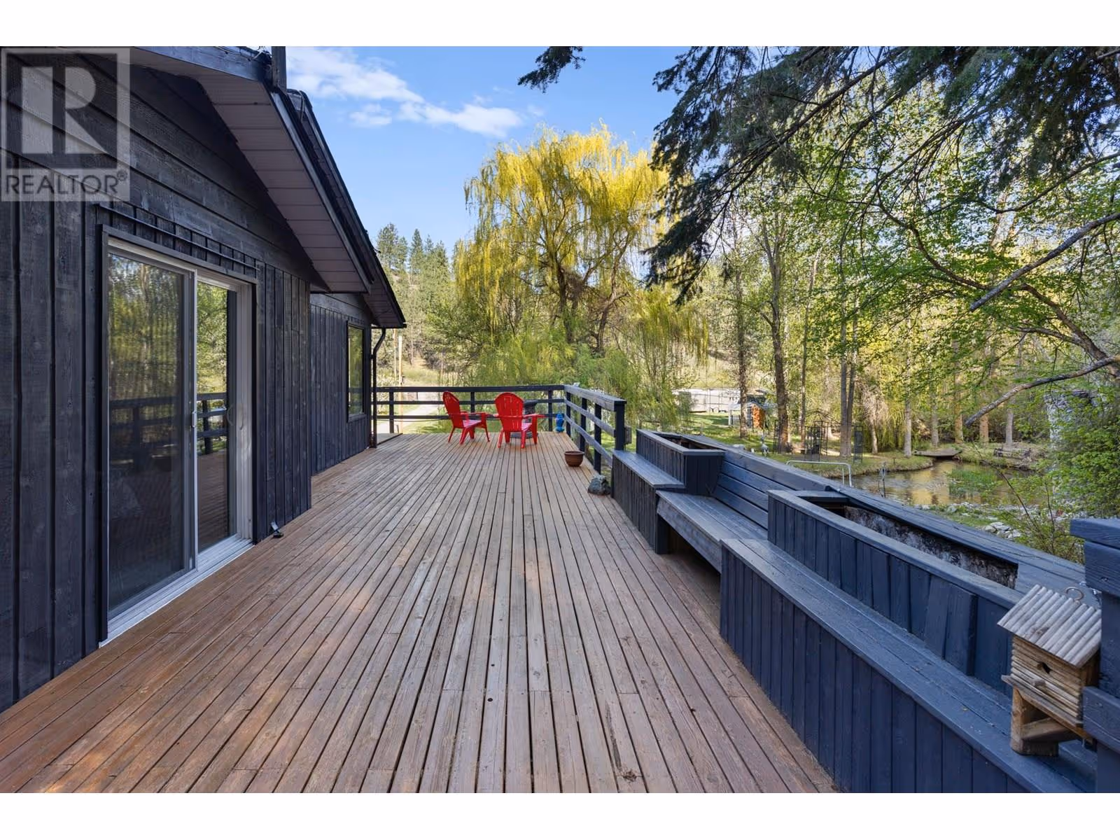 Discover tranquility on this stunning acreage located in Summerland, BC, with 5 acres to enjoy raising and growing your own food, with irrigation rights to the property. Enjoy the scenic hill side trails around the property, a charming creek that runs through the property is called Eneas Creek, a cozy well maintained 3 bedroom, 2 bathroom home with large wrap around deck, new wood stove on the lower level , upper level has a propane fireplace in the living room, ample parking for all your vehicles and recreational toys. A plus is new zoning regulations allows for a 2nd residence on the property. Hookup in place for a hot tub exterior ground level, one shed of many on the property has been insulated with power of 30 amps. Attention to all mechanics! This property includes a large, powered Quonset perfect for working on your vehicles. (id:58842)