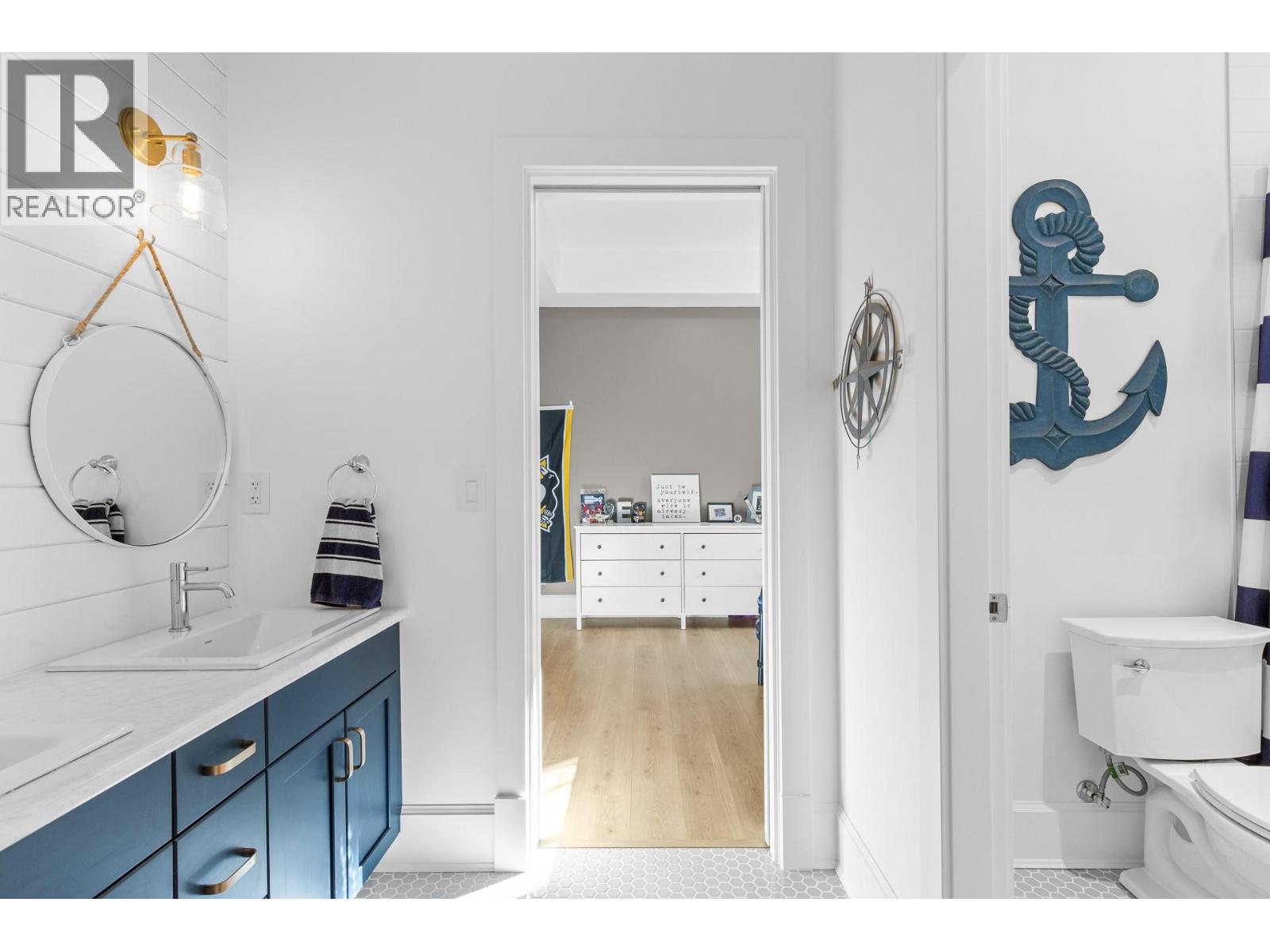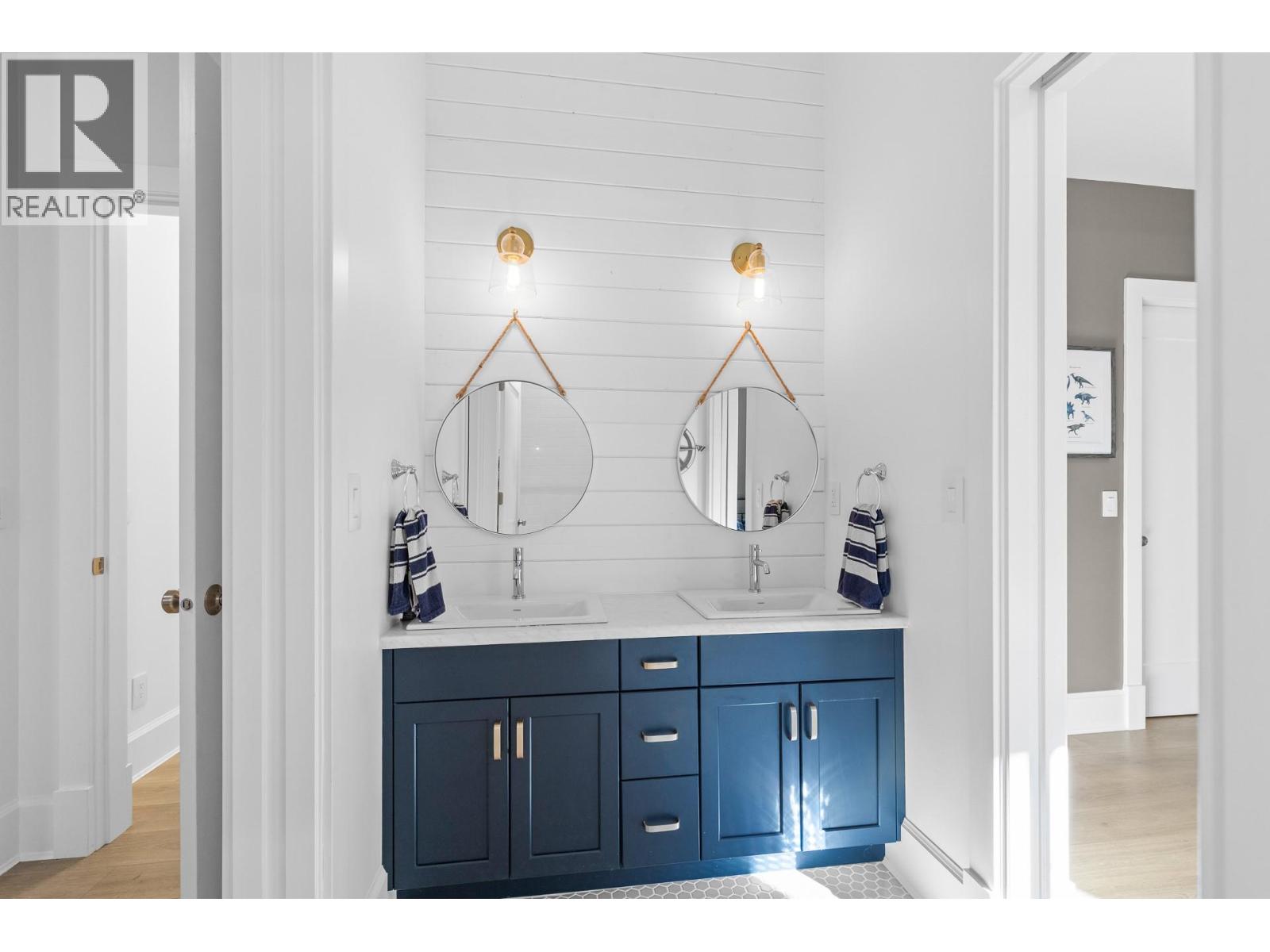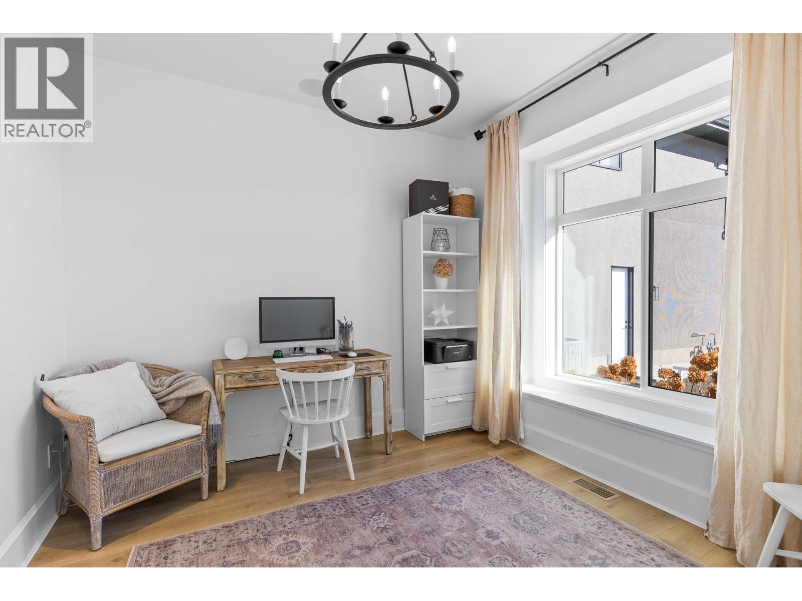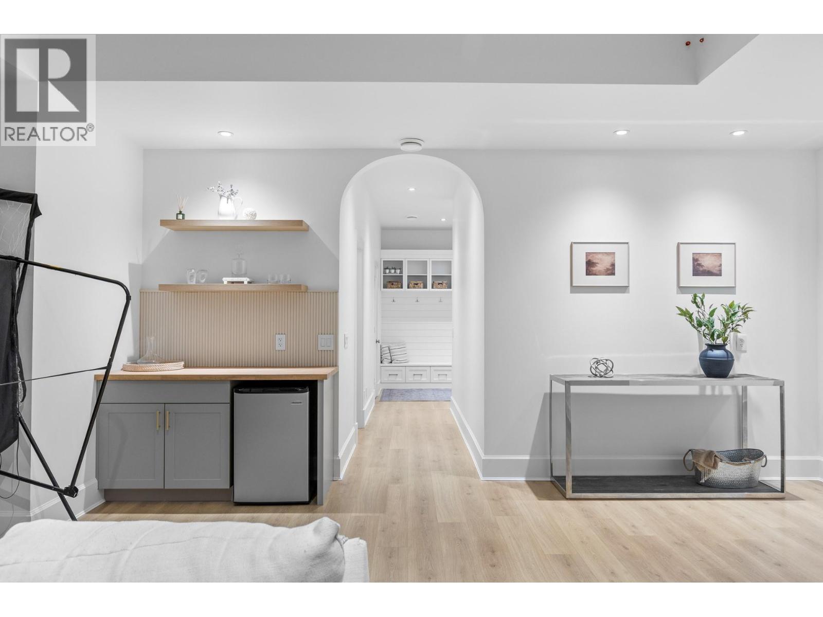 A stunning custom build by award-winning H&H Homes that perfectly captures the warmth and sophistication of modern farmhouse design. Thoughtfully curated and impeccably finished, this residence offers elevated living with beautiful lake and mountain views from the front deck and valley views from the backyard. The open-concept main living area is warm yet refined, anchored by a dramatic floor-to-ceiling stone gas fireplace with built-in bench seating and a stylish beverage station. Chef-inspired kitchen features a 6-burner KitchenAid gas range with pot filler, soft-close cabinetry, and spacious pantry complete with undercounter double-drawer fridge/freezers. Designed for seamless indoor-outdoor living, the backyard feels like a private retreat with 14 x 28 inground pool with auto cover, hot tub, and storage shed. The covered back porch, complete with remote screen, fireplace, BBQ and TV - creates ideal entertaining space. The oversized primary suite offers direct access to the backyard & hot tub, along with a 5-piece ensuite & walk-in closet. A second bedroom & den/office complete the main level. Lower level offers a spacious family room, bar area, two add'l bedrooms with Jack-and-Jill bath, an additional half bath, full laundry, & mud room with access to the double garage. A beautifully executed custom home offering designer style, thoughtful functionality, & resort-style outdoor living in one exceptional package! Click 3D Tour Link (id:58842)