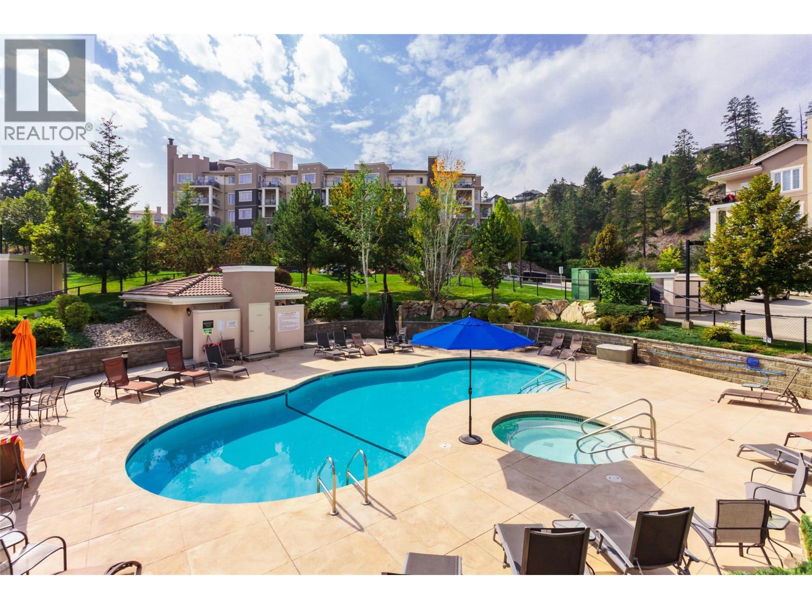 Welcome to this well-maintained 2-bedroom plus den condo at The Pointe at Quail Ridge, located just steps from the golf course and the outdoor pool and hot tub. Featuring a smart split-bedroom design for added privacy, the spacious den is large enough to be used as a third bedroom or home office, offering great flexibility for owners and investors alike. The bright, open-concept layout includes a breakfast bar, newer carpet, a separate laundry room, and a ground-floor walk-out patio—perfect for morning coffee or winding down after a day on the course. The home comes with secure entry, underground parking, and two designated parking stalls. This pet-friendly building allows one cat or one dog with no height restrictions and permits rentals with a minimum 30-day term, making it a solid option for UBCO students, professionals, or short-term stays. Heat is included in the strata fees for added convenience. Situated just five minutes from Kelowna International Airport, UBCO, shopping, dining, coffee shops, and other essential amenities, this is carefree living in one of Kelowna’s most desirable golf course communities. Measurements are taken from iGuide. Current renter is month-to-month, paying $2,065.95. (id:58842)