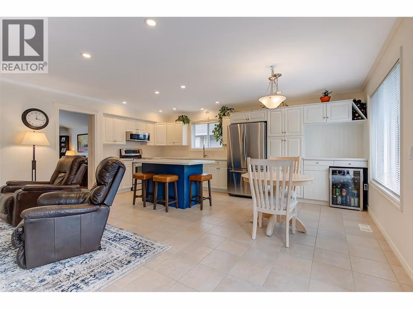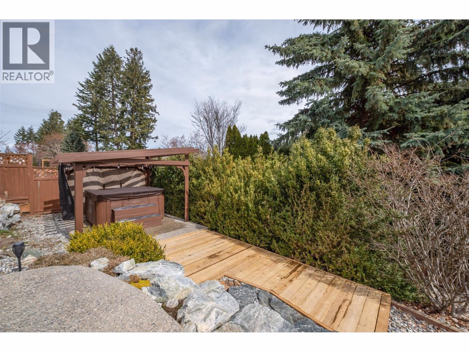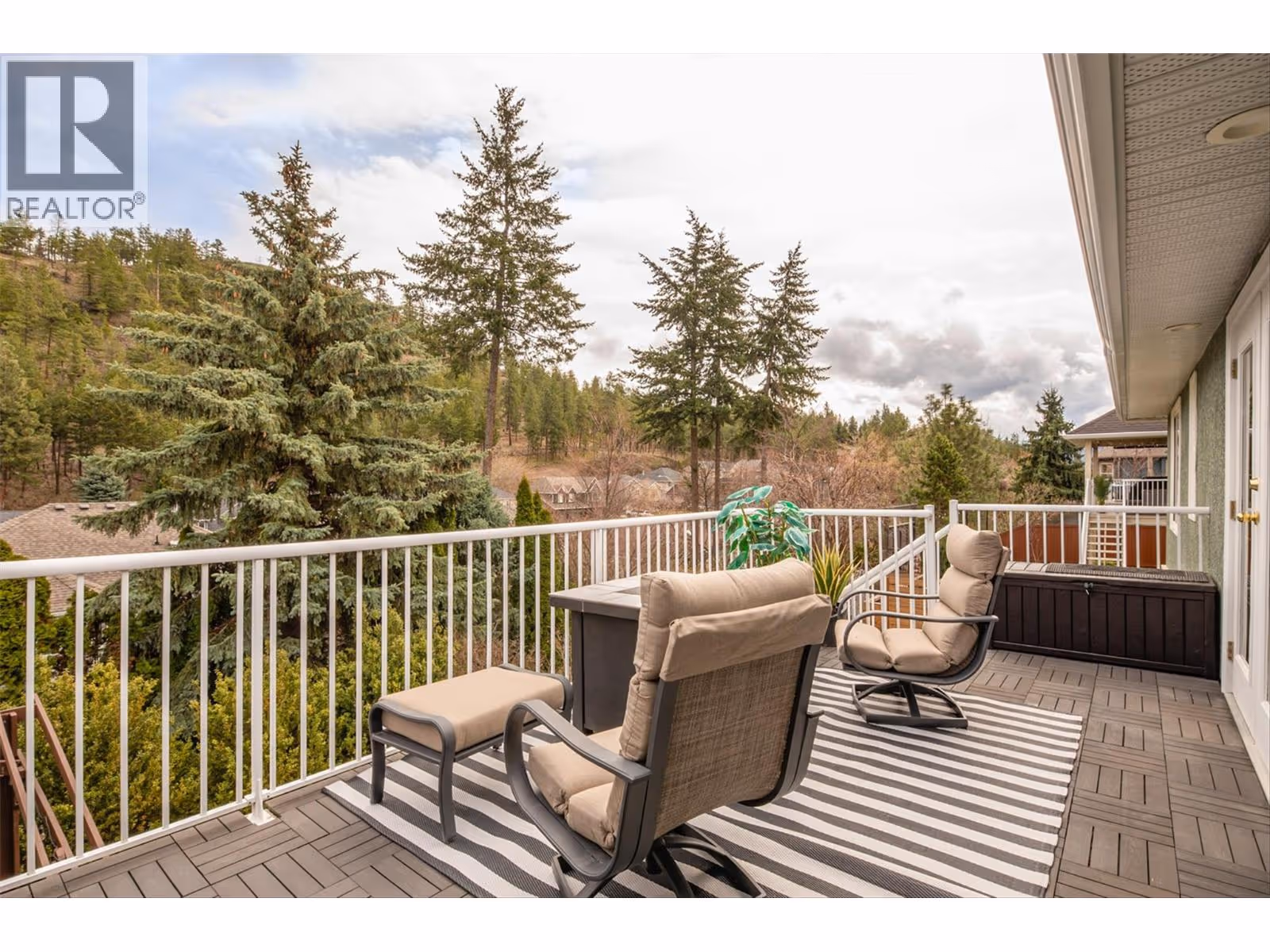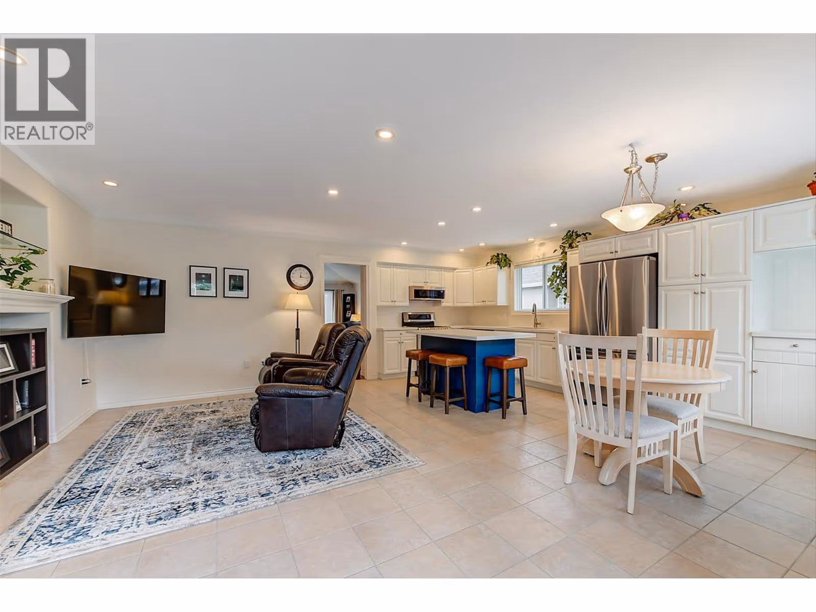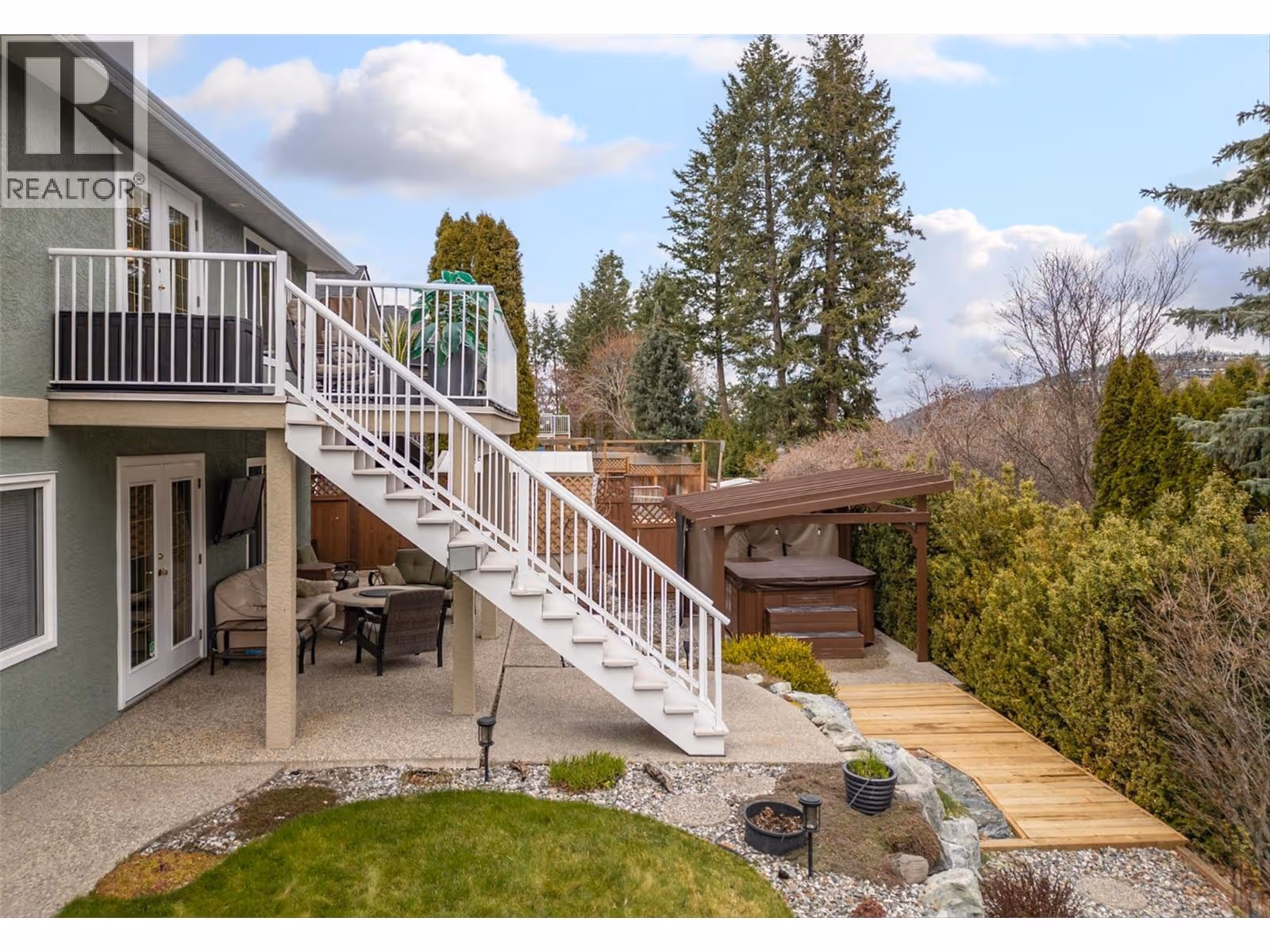 Welcome to this beautifully updated & spacious 5-bedroom rancher, with a walkout basement, in desirable Magic Estates. Offering 3 baths & over 3,000 sq ft of versatile living space, this home offers plenty of room for the entire family, perfect for teens! Step into a welcoming tiled foyer that flows seamlessly into rich hardwood flooring throughout the living & dining areas. Soaring vaulted ceilings add a bright, airy feel to the main living space, perfect for relaxing and entertaining. The large kitchen features a central island, tile flooring, & is part of a cozy family room with a gas fireplace. French doors lead out to a mountain-view deck complete with a gas BBQ hookup, ideal for summer evenings. Downstairs, the walkout basement boasts 3 generously sized bedrooms, a large rec room with a second gas fireplace, & more French doors opening to a covered patio and fenced backyard. There's also a spacious games room, which could easily be converted into a media room or home theatre. Bonus features include: Central AC, built-in vacuum system, underground sprinklers, direct access to Knox Mountain Park with hiking & biking trails just across the street. Recent renovations include: brand new vinyl decking, asphalt roof, fully renovated kitchen, removal of poly-B plumbing, recent furnace & A/C, & replaced hot water tank. Fresh paint & new carpets on the main floor. Don't miss your chance to own this updated and move-in-ready home in one of Kelowna’s most desirable neighborhoods! (id:58842)