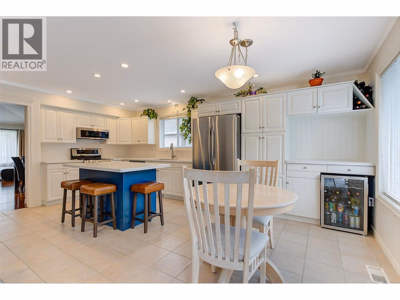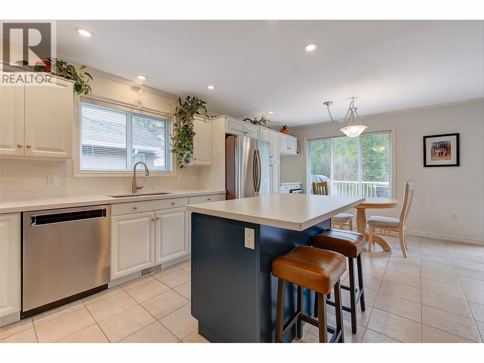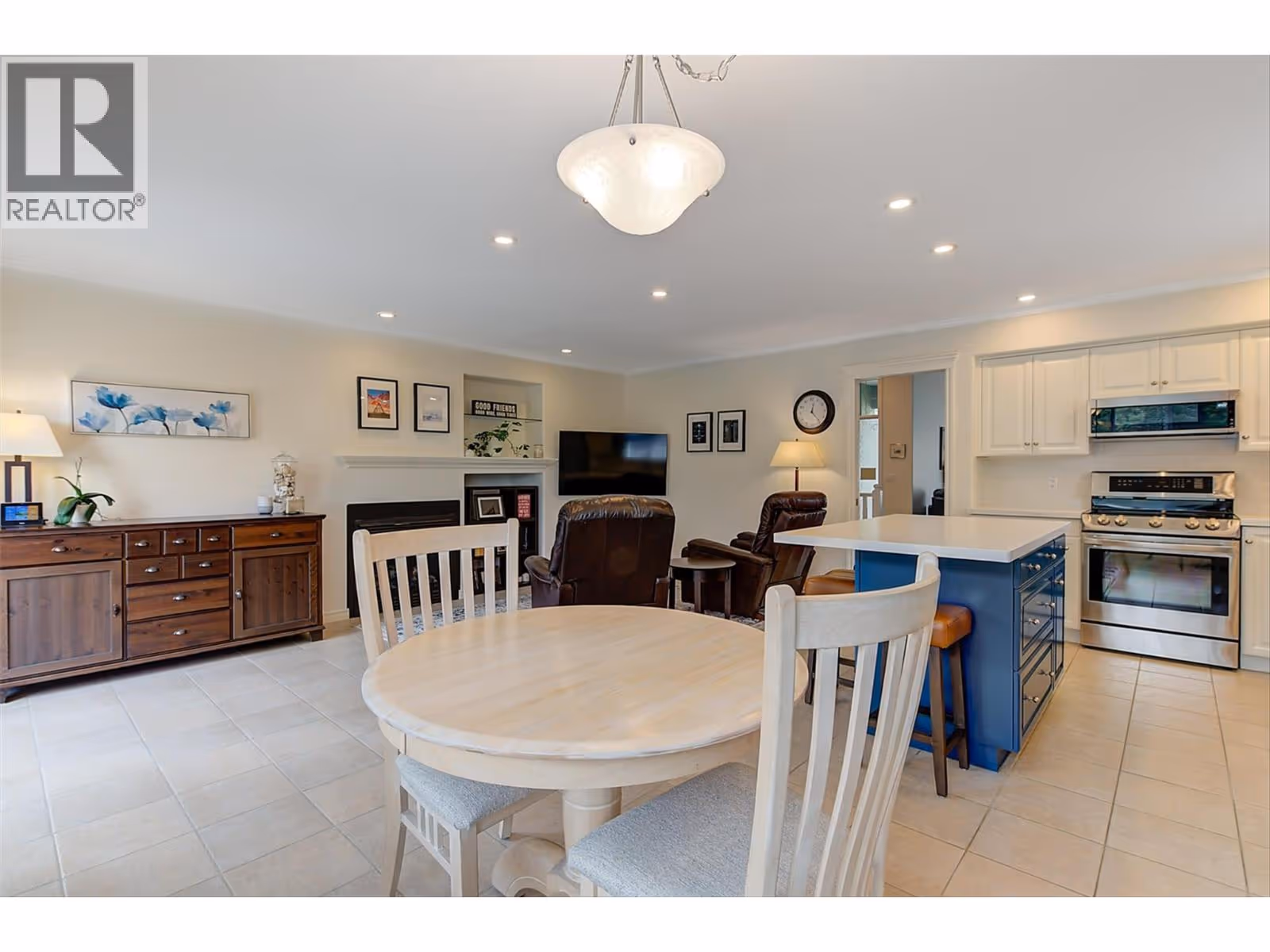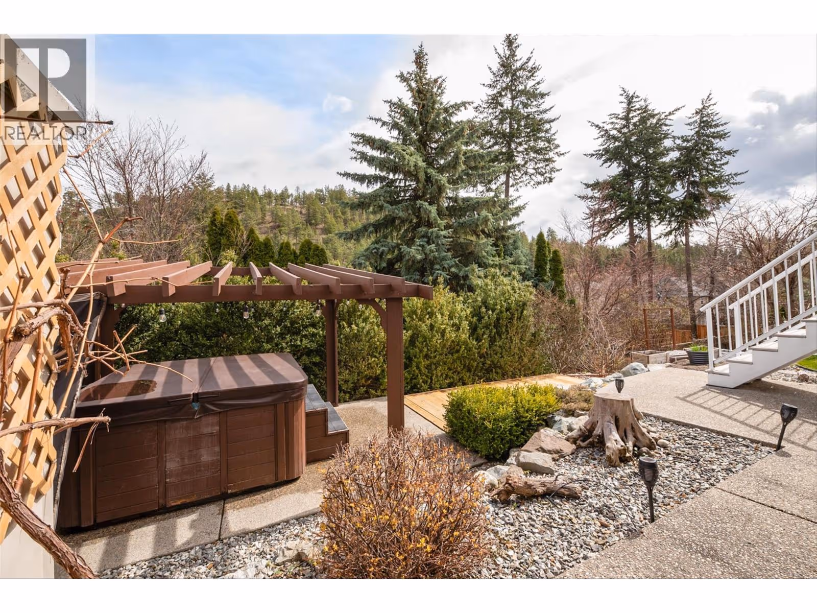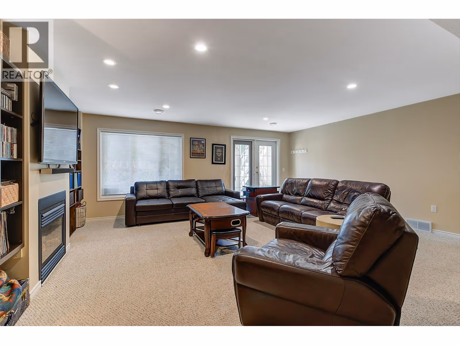 Welcome to this beautifully updated & spacious 5-bedroom rancher, with a walkout basement, in desirable Magic Estates. Offering 3 baths & over 3,000 sq ft of versatile living space, this home offers plenty of room for the entire family, perfect for teens! Step into a welcoming tiled foyer that flows seamlessly into rich hardwood flooring throughout the living & dining areas. Soaring vaulted ceilings add a bright, airy feel to the main living space, perfect for relaxing and entertaining. The large kitchen features a central island, tile flooring, & is part of a cozy family room with a gas fireplace. French doors lead out to a mountain-view deck complete with a gas BBQ hookup, ideal for summer evenings. Downstairs, the walkout basement boasts 3 generously sized bedrooms, a large rec room with a second gas fireplace, & more French doors opening to a covered patio and fenced backyard. There's also a spacious games room, which could easily be converted into a media room or home theatre. Bonus features include: Central AC, built-in vacuum system, underground sprinklers, direct access to Knox Mountain Park with hiking & biking trails just across the street. Recent renovations include: brand new vinyl decking, asphalt roof, fully renovated kitchen, removal of poly-B plumbing, recent furnace & A/C, & replaced hot water tank. Fresh paint & new carpets on the main floor. Don't miss your chance to own this updated and move-in-ready home in one of Kelowna’s most desirable neighborhoods! (id:58842)
