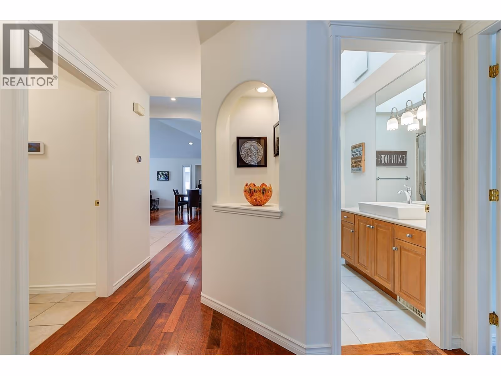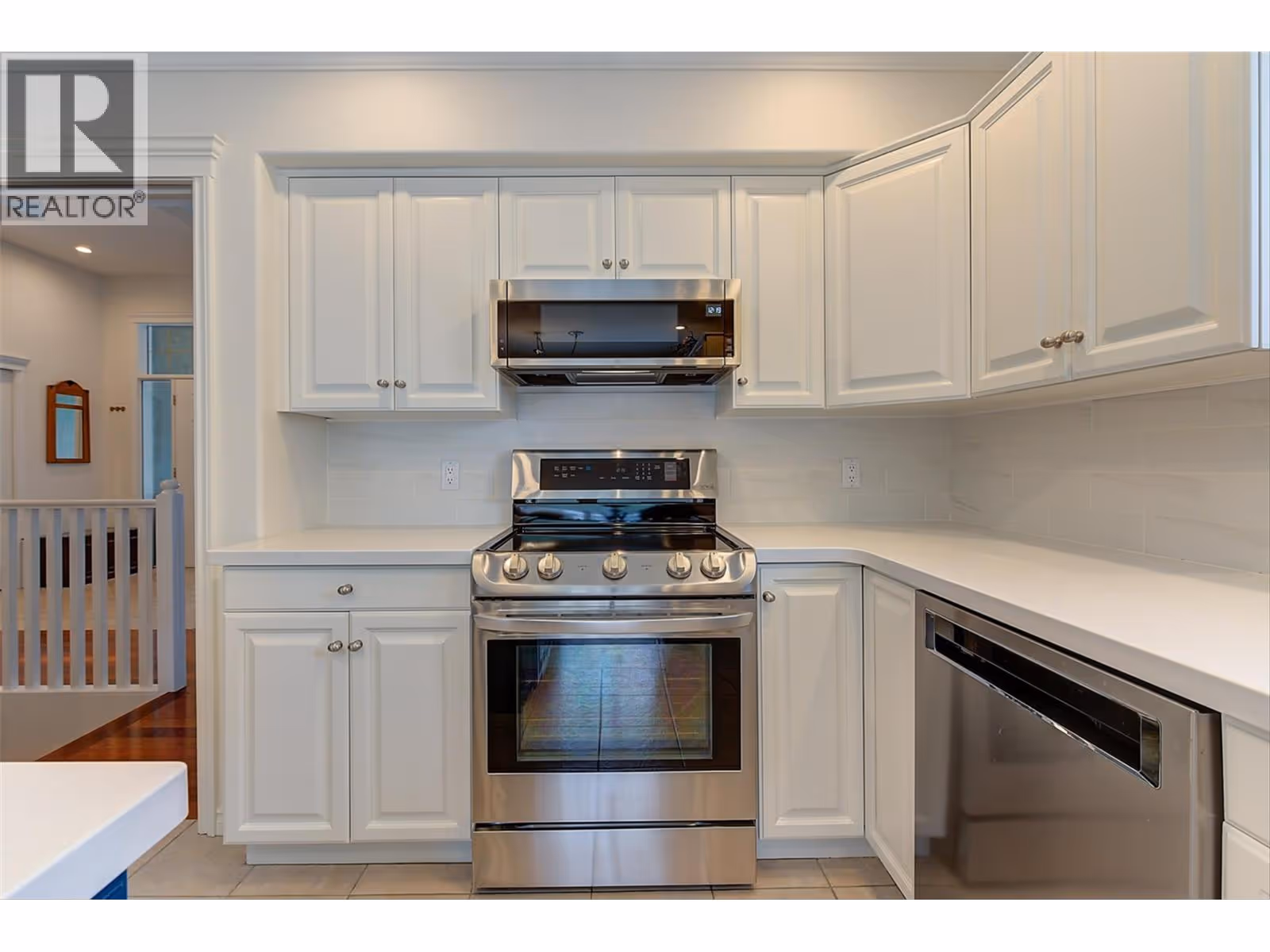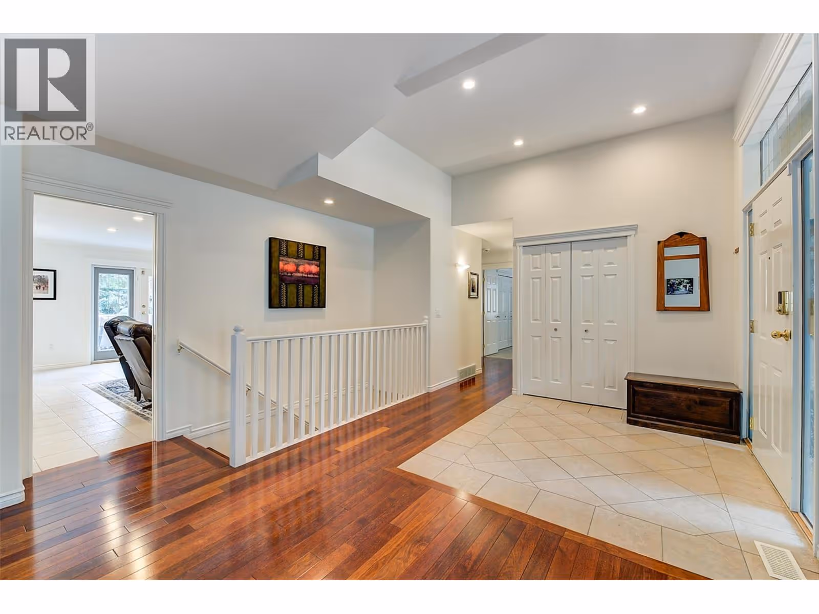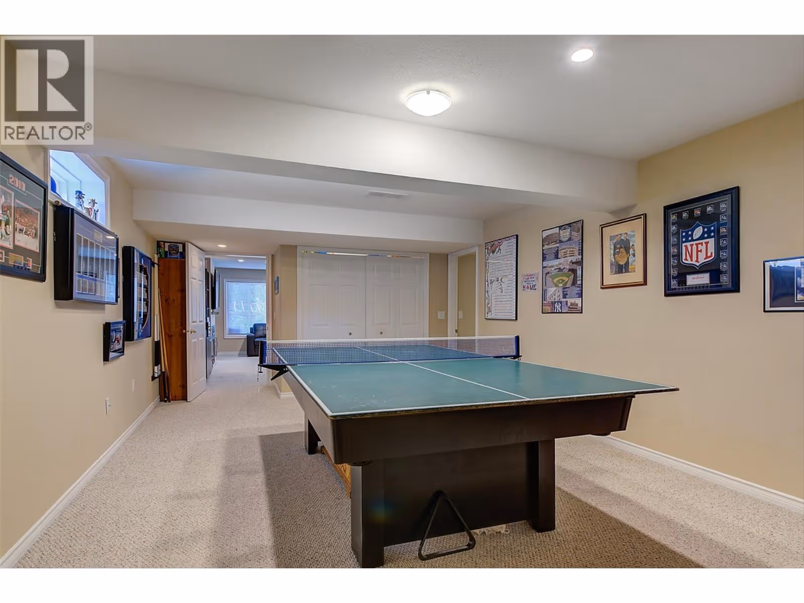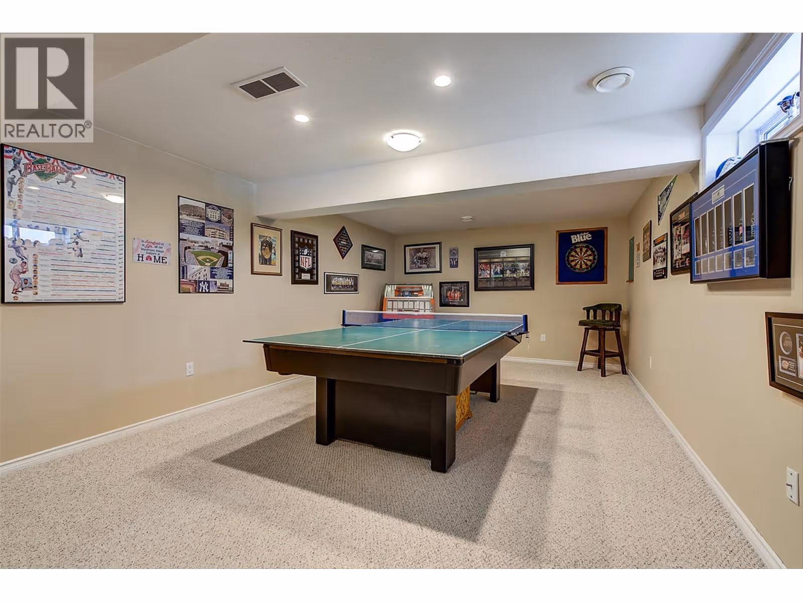 Welcome to this beautifully updated & spacious 5-bedroom rancher, with a walkout basement, in desirable Magic Estates. Offering 3 baths & over 3,000 sq ft of versatile living space, this home offers plenty of room for the entire family, perfect for teens! Step into a welcoming tiled foyer that flows seamlessly into rich hardwood flooring throughout the living & dining areas. Soaring vaulted ceilings add a bright, airy feel to the main living space, perfect for relaxing and entertaining. The large kitchen features a central island, tile flooring, & is part of a cozy family room with a gas fireplace. French doors lead out to a mountain-view deck complete with a gas BBQ hookup, ideal for summer evenings. Downstairs, the walkout basement boasts 3 generously sized bedrooms, a large rec room with a second gas fireplace, & more French doors opening to a covered patio and fenced backyard. There's also a spacious games room, which could easily be converted into a media room or home theatre. Bonus features include: Central AC, built-in vacuum system, underground sprinklers, direct access to Knox Mountain Park with hiking & biking trails just across the street. Recent renovations include: brand new vinyl decking, asphalt roof, fully renovated kitchen, removal of poly-B plumbing, recent furnace & A/C, & replaced hot water tank. Fresh paint & new carpets on the main floor. Don't miss your chance to own this updated and move-in-ready home in one of Kelowna’s most desirable neighborhoods! (id:58842)