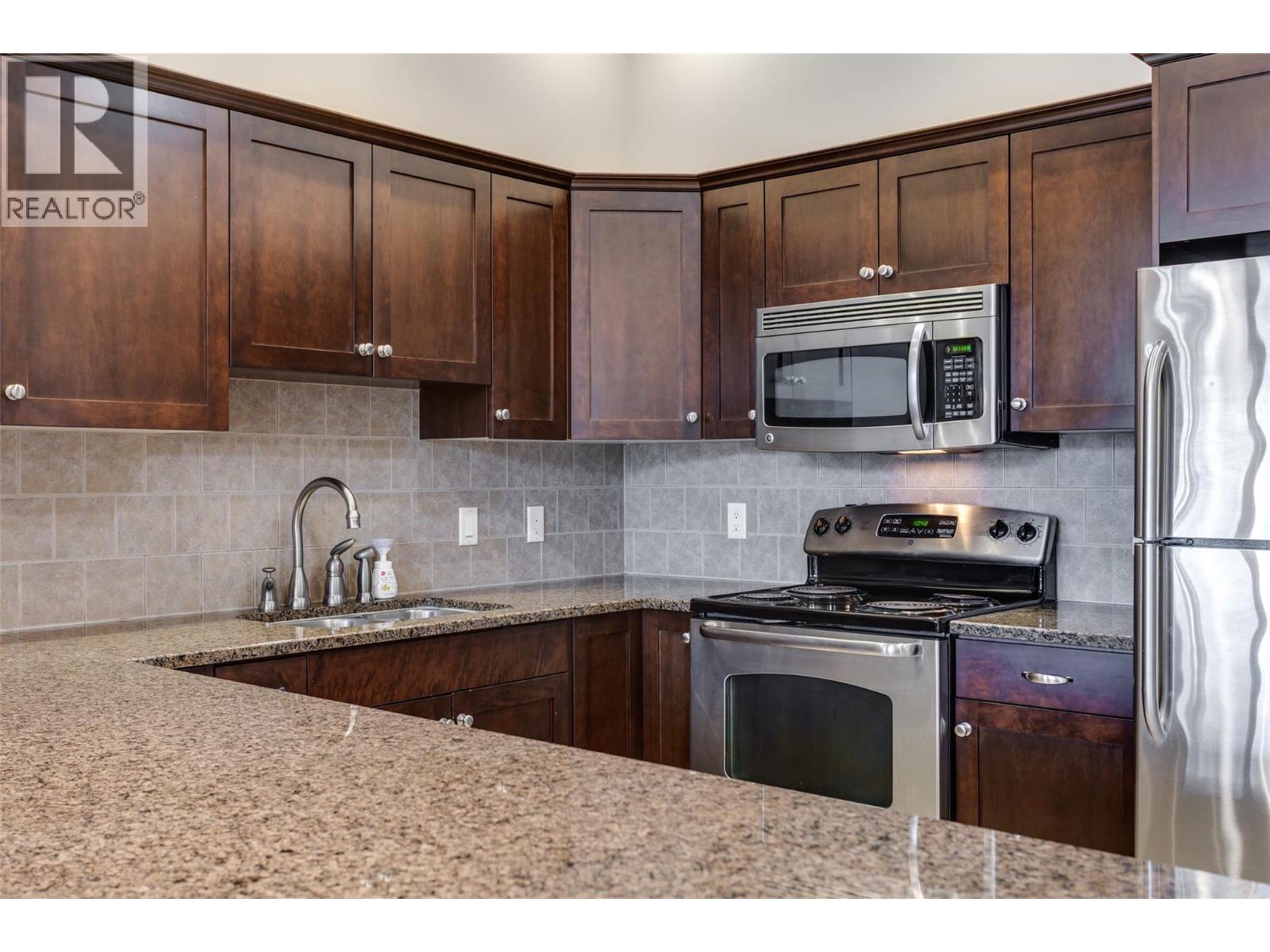 Wonderul Value. Welcome to this immaculate top-floor unit in the sought-after Mira Vista community. Featuring soaring 11-ft ceilings, brand new flooring, and fresh paint throughout, this west-facing 2 bed, 2 bath condo is full of natural light and style. The spacious primary bedroom boasts a walk-through closet leading to a well-appointed ensuite. The second bedroom is generously sized, perfect for guests or family. Use the den as a home office or additional storage.The kitchen is equipped with granite countertops, an eat-up island, and flows effortlessly into the open-concept living and dining area—ideal for entertaining. Step outside to your private deck to enjoy BBQs and evening sun. Bonus Features: Hot Water, Heating & cooling included in the strata fee. Secure underground parking & storage locker. Outdoor pool, hot tub, amenities building, guest suite, workshop, and rec room. Pet-friendly (1 dog or cat up to 18""). No age restrictions. Month-to-month rentals allowed. Quick possession is available. Mira Vista is just steps from Save-On-Foods, coffee shops, trails, and only a short drive to local wineries, golf courses, and the lake. This vacant home is truly turnkey—ready for you to move in and start enjoying the Okanagan lifestyle! Measurements taken from iGuide. (id:58842)