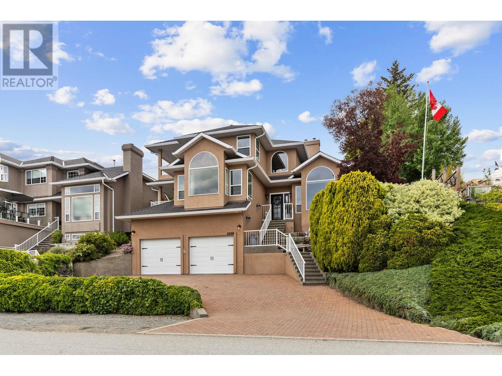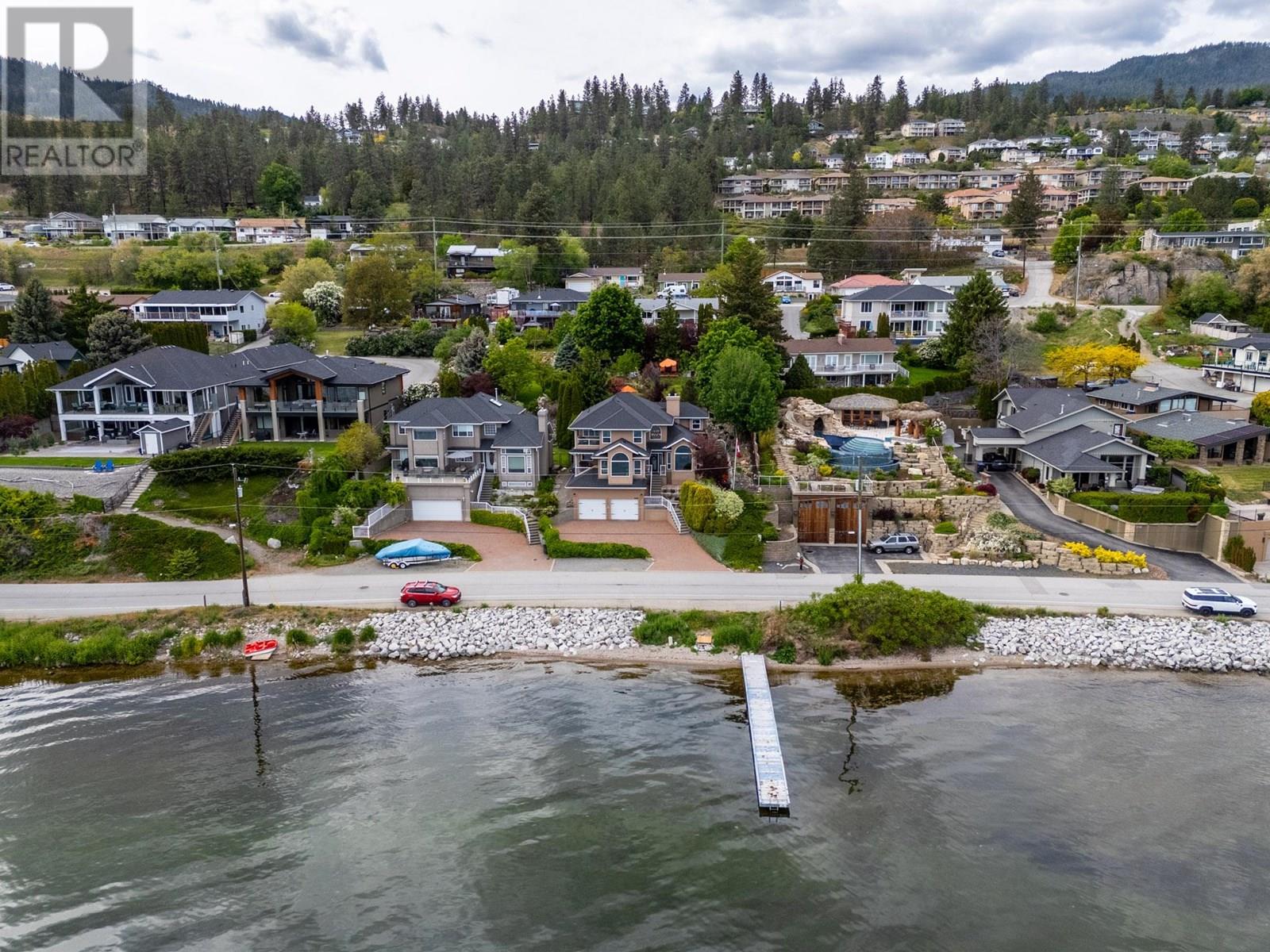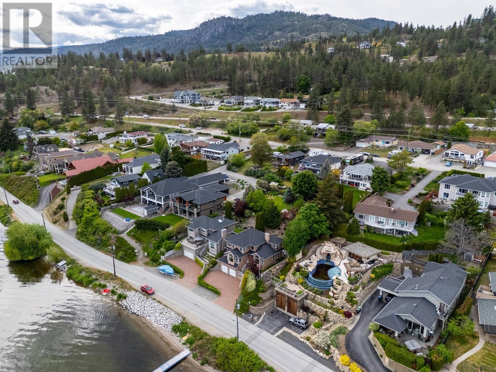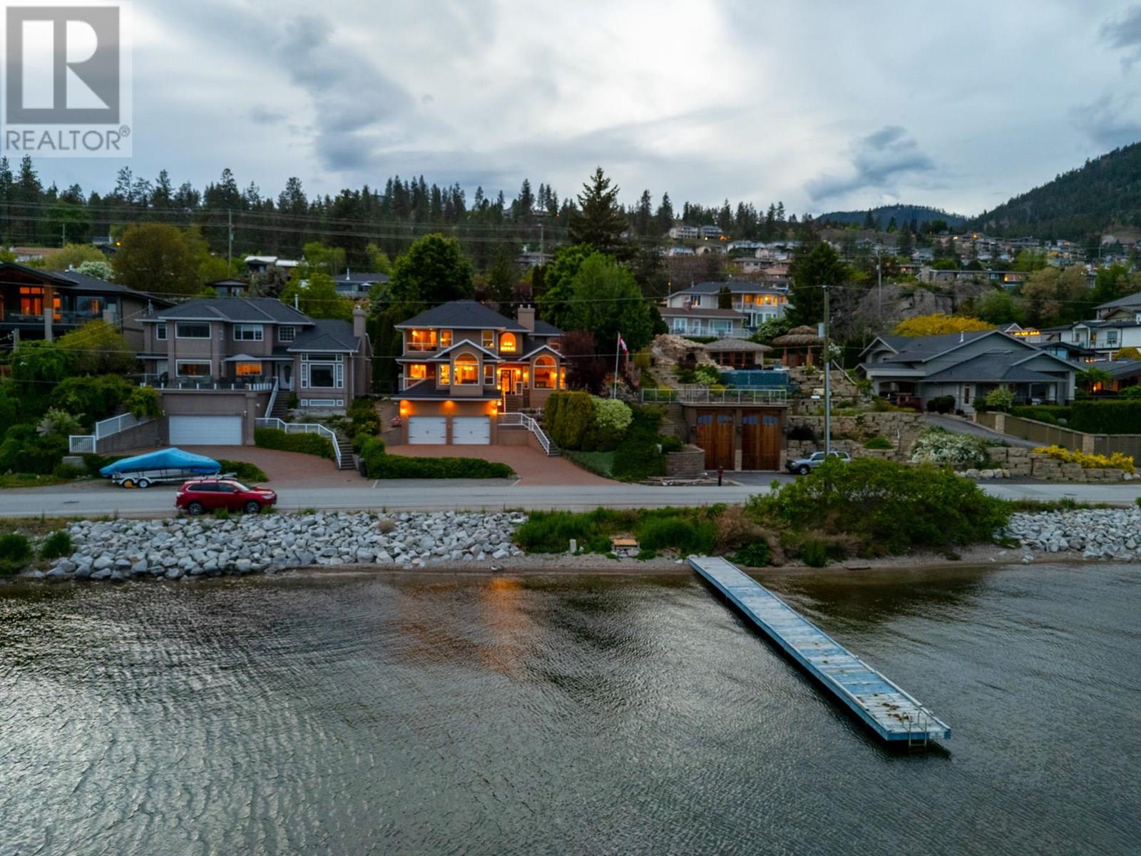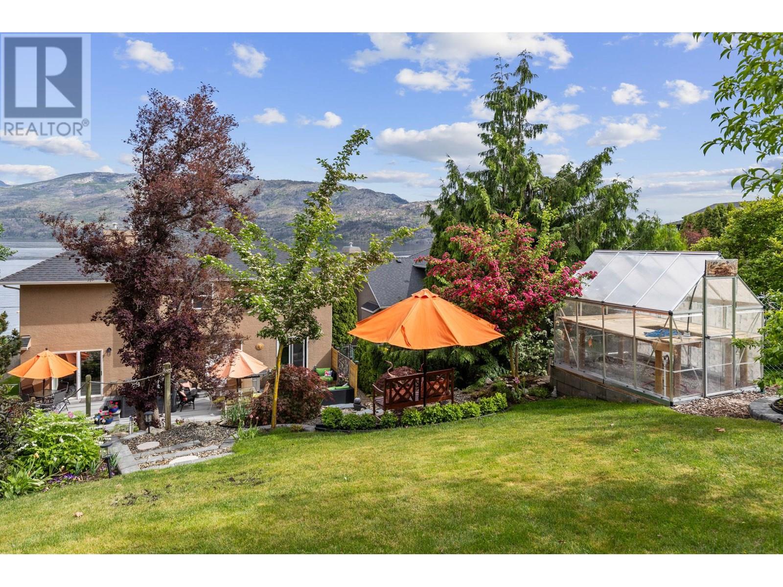 Step outside your front door to enjoy immediate access to Okanagan Lake, where a licensed private buoy awaits your water toys. This immaculate home showcases pride of ownership with its four bedrooms, versatile flex room, and spacious recreation room ideal for a pool table or games room. The newly renovated kitchen features mostly newer appliances, elegant quartz countertops, a beverage fridge and additional sink. The ten foot long island in the kitchen is the perfect gathering place. The primary bedroom ensuite boasts a jetted tub. Additional highlights include a newer front load washer and dryer, built-in vacuum system, and gleaming hardwood oak flooring throughout the home. The property features two front decks for taking in the lake and mountain views, a sunken living room with a gas fireplace, pristinely kept double garage. The outdoor space is fully irrigated, complete with timed drip lines, a stunning water feature, exceptional landscaping with a park like setting of your very own, a greenhouse, garden boxes and a hot tub on the back patio. The home is equipped with a newer geothermal heating and cooling system, ensuring energy efficiency. Your new lifestyle awaits you in the beautiful Peachland along the shores of Okanagan Lake! (id:58842)