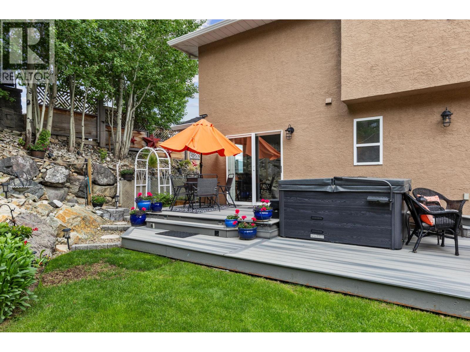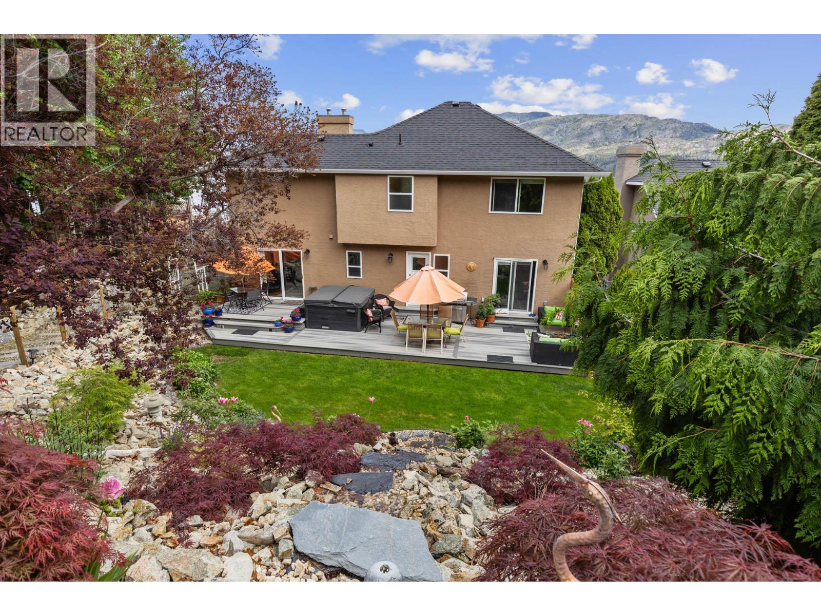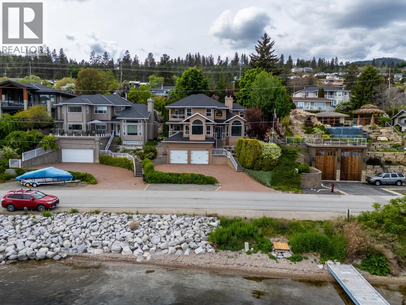 Step outside your front door to enjoy immediate access to Okanagan Lake, where a licensed private buoy awaits your water toys. This immaculate home showcases pride of ownership with its four bedrooms, versatile flex room, and spacious recreation room ideal for a pool table or games room. The newly renovated kitchen features mostly newer appliances, elegant quartz countertops, a beverage fridge and additional sink. The ten foot long island in the kitchen is the perfect gathering place. The primary bedroom ensuite boasts a jetted tub. Additional highlights include a newer front load washer and dryer, built-in vacuum system, and gleaming hardwood oak flooring throughout the home. The property features two front decks for taking in the lake and mountain views, a sunken living room with a gas fireplace, pristinely kept double garage. The outdoor space is fully irrigated, complete with timed drip lines, a stunning water feature, exceptional landscaping with a park like setting of your very own, a greenhouse, garden boxes and a hot tub on the back patio. The home is equipped with a newer geothermal heating and cooling system, ensuring energy efficiency. Your new lifestyle awaits you in the beautiful Peachland along the shores of Okanagan Lake! (id:58842)