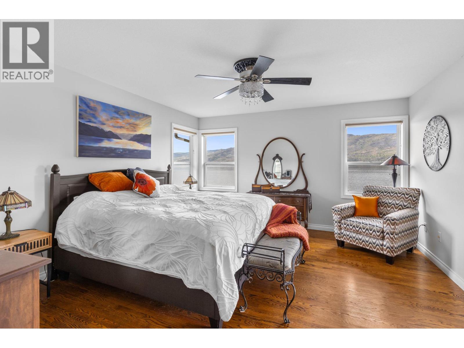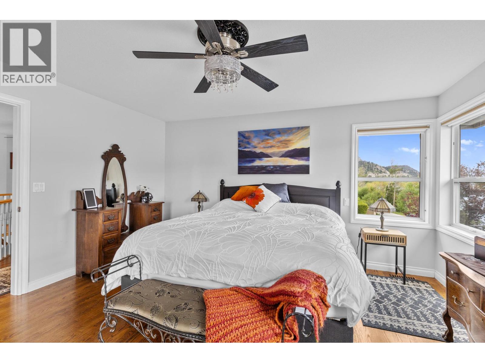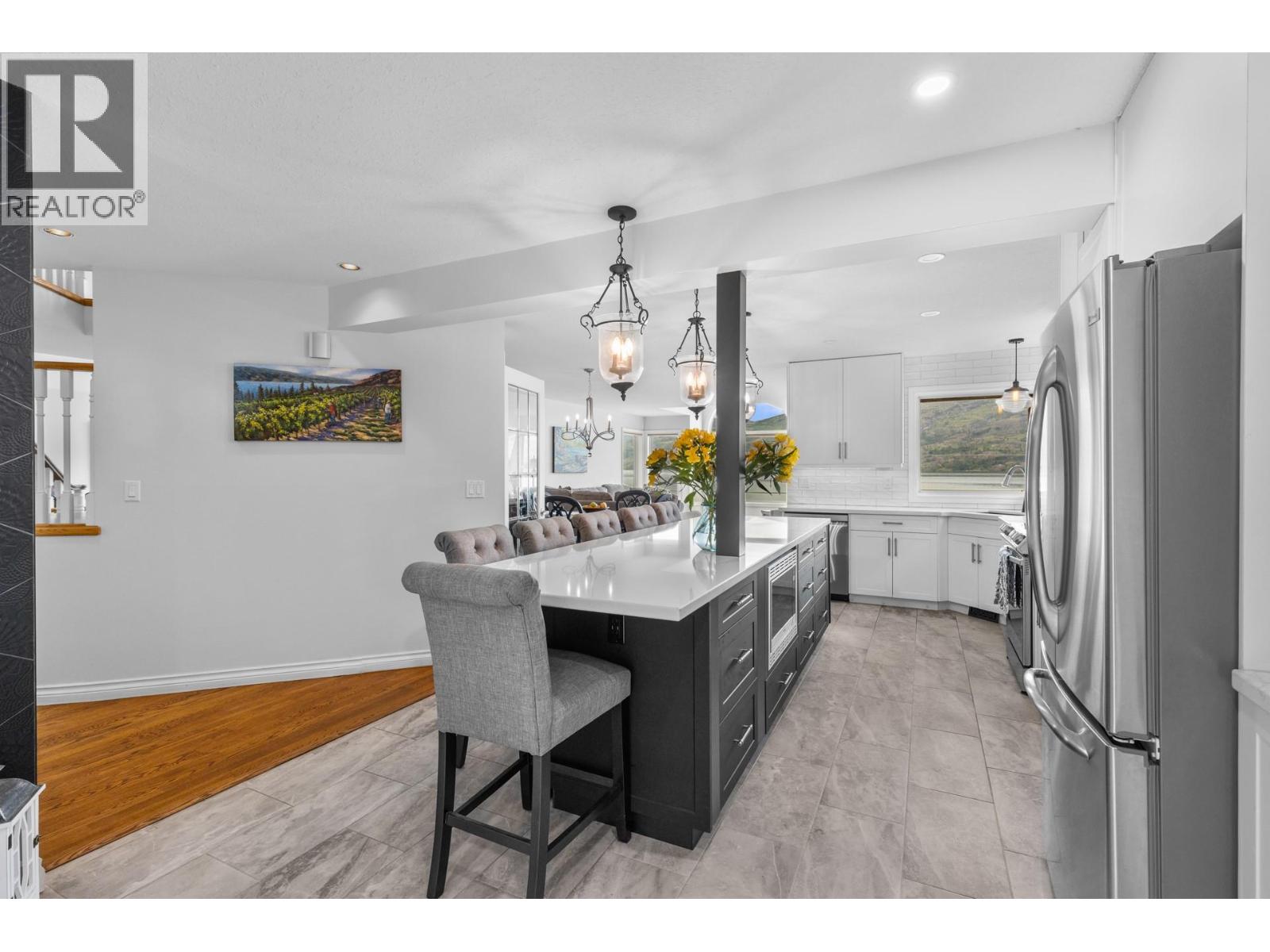 Step outside your front door to enjoy immediate access to Okanagan Lake, where a licensed private buoy awaits your water toys. This immaculate home showcases pride of ownership with its four bedrooms, versatile flex room, and spacious recreation room ideal for a pool table or games room. The newly renovated kitchen features mostly newer appliances, elegant quartz countertops, a beverage fridge and additional sink. The ten foot long island in the kitchen is the perfect gathering place. The primary bedroom ensuite boasts a jetted tub. Additional highlights include a newer front load washer and dryer, built-in vacuum system, and gleaming hardwood oak flooring throughout the home. The property features two front decks for taking in the lake and mountain views, a sunken living room with a gas fireplace, pristinely kept double garage. The outdoor space is fully irrigated, complete with timed drip lines, a stunning water feature, exceptional landscaping with a park like setting of your very own, a greenhouse, garden boxes and a hot tub on the back patio. The home is equipped with a newer geothermal heating and cooling system, ensuring energy efficiency. Your new lifestyle awaits you in the beautiful Peachland along the shores of Okanagan Lake! (id:58842)