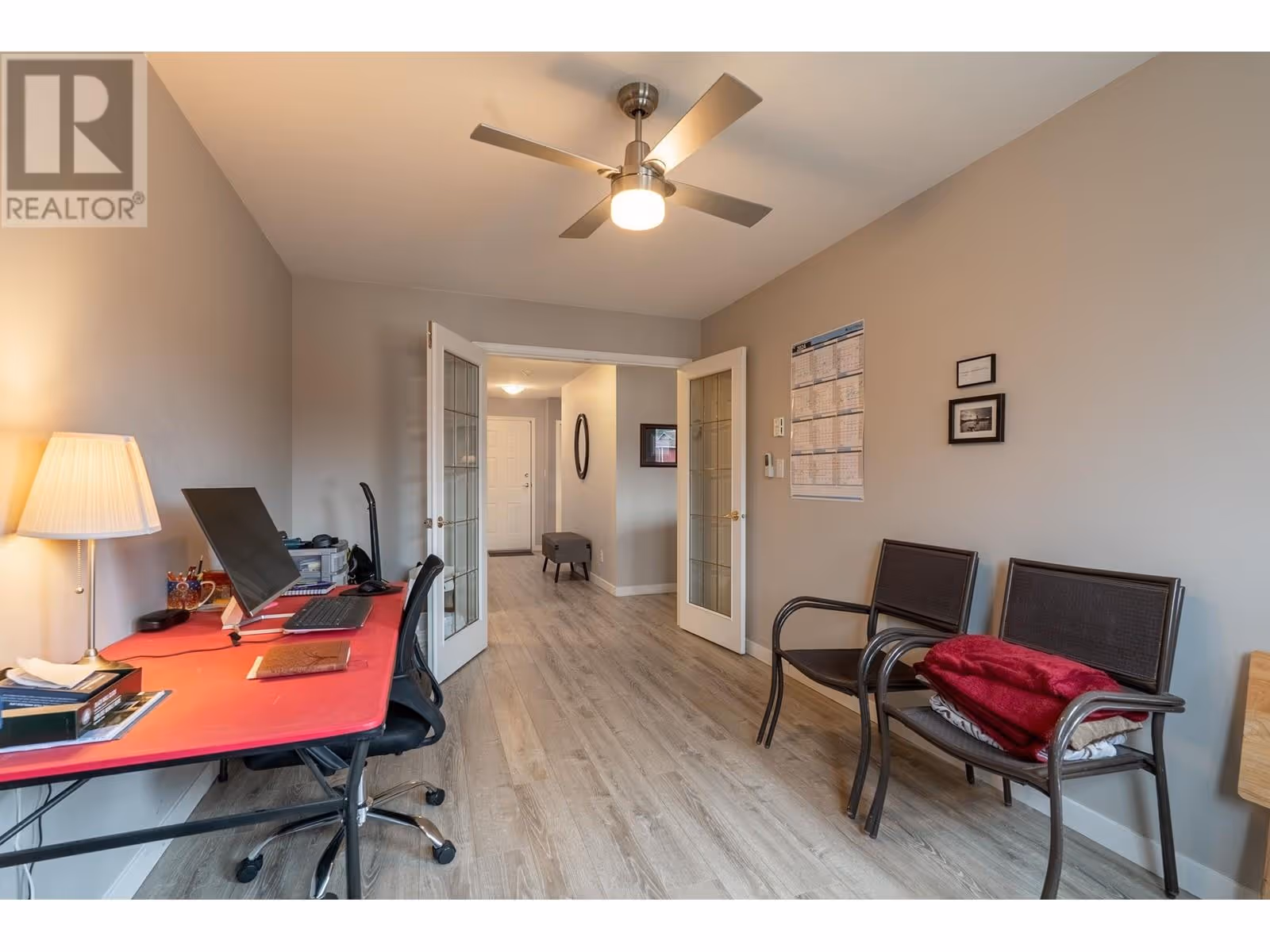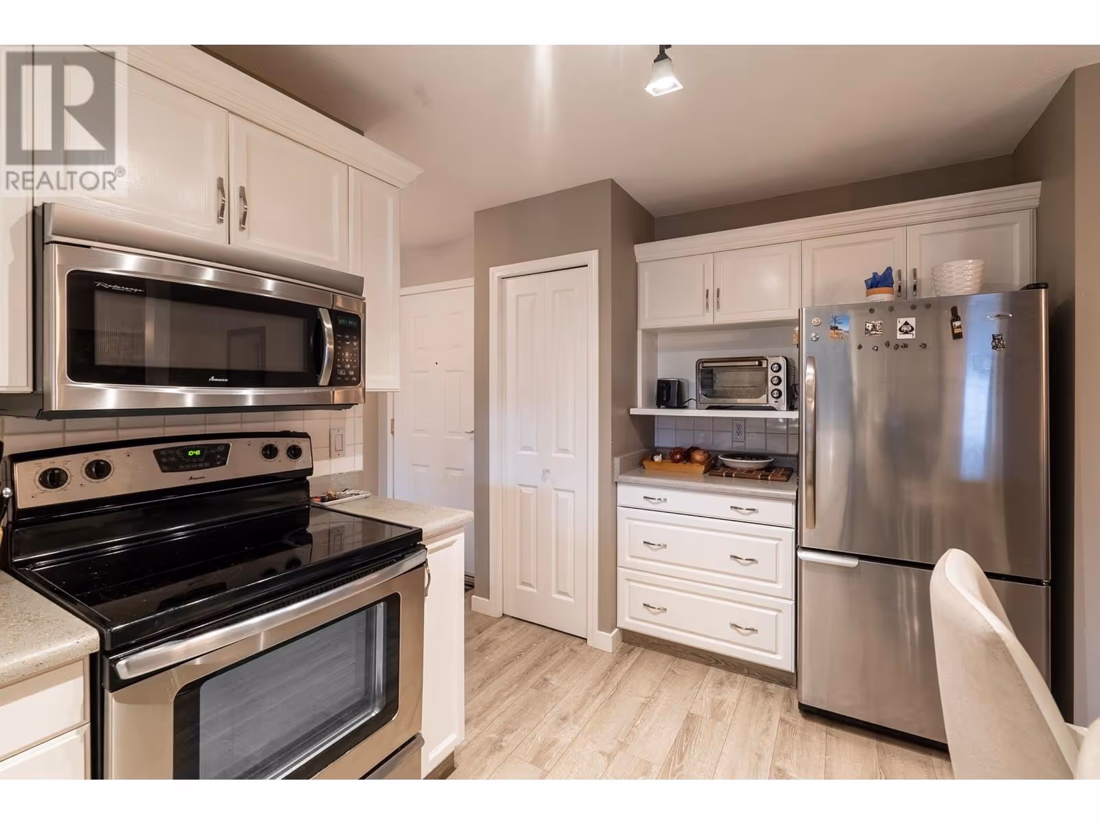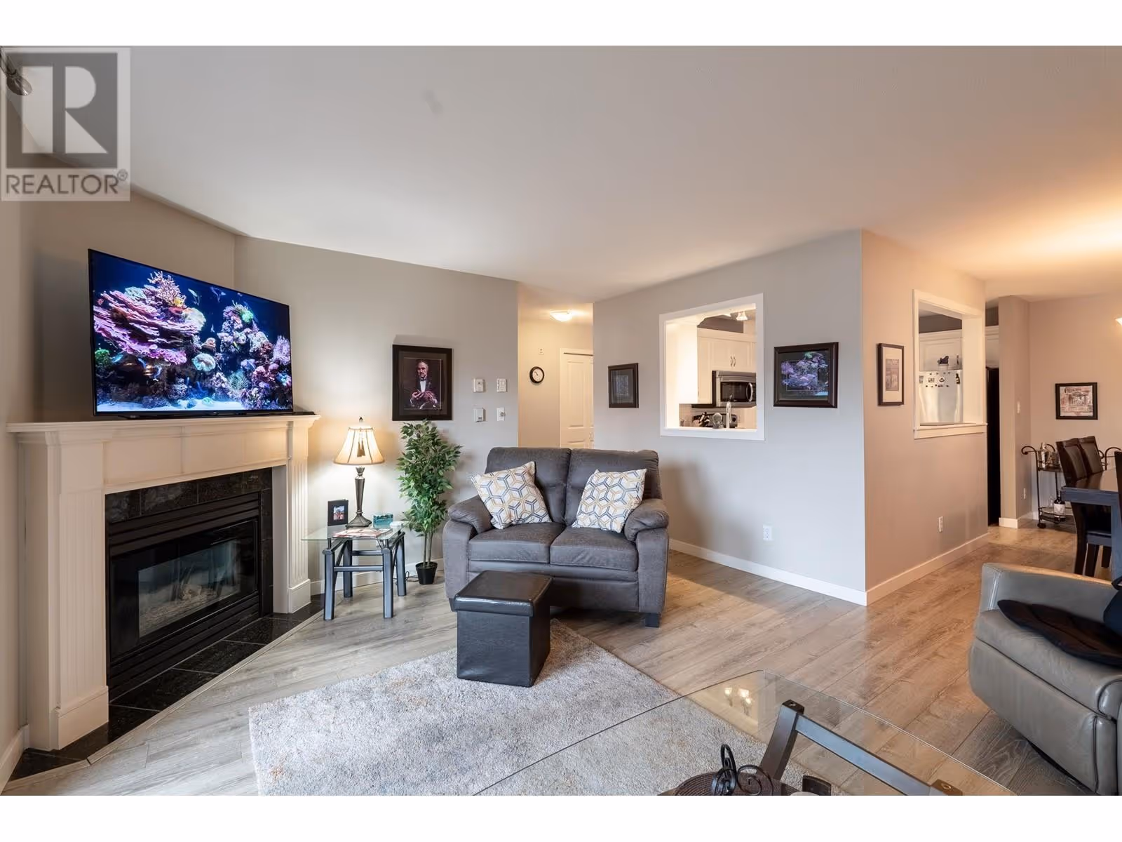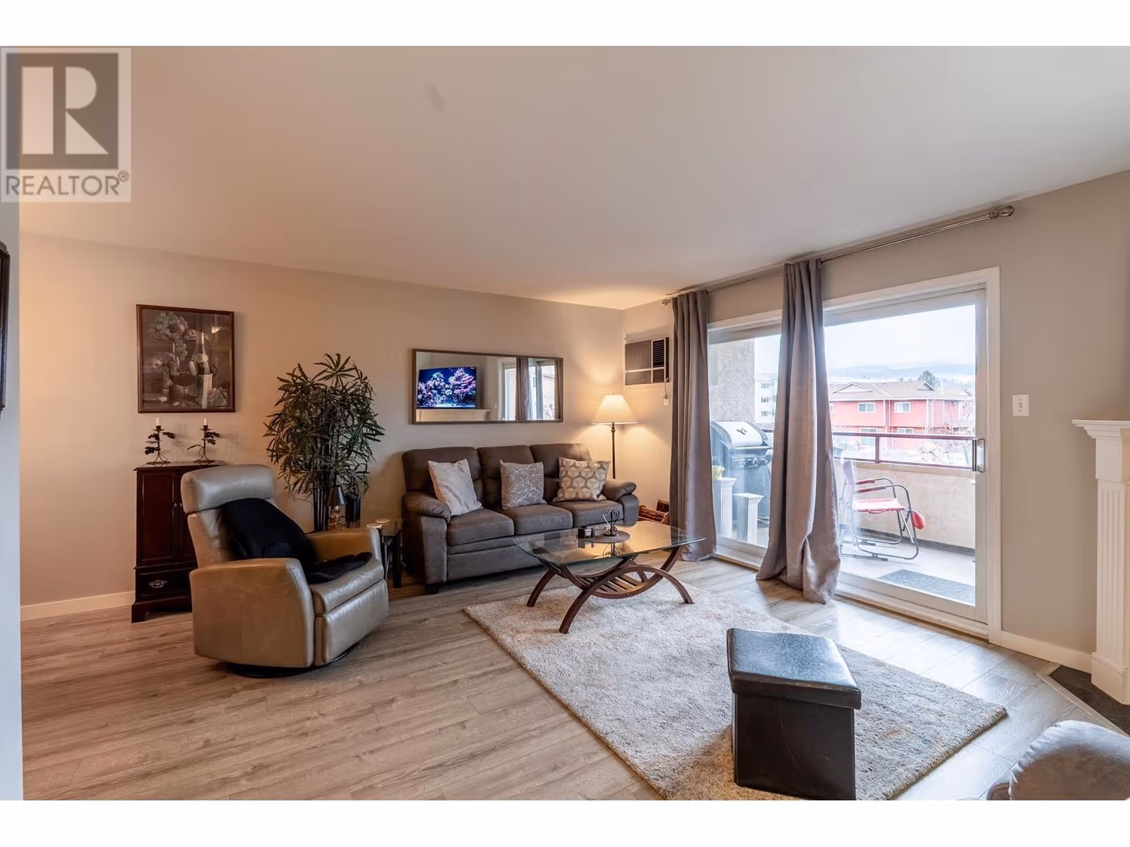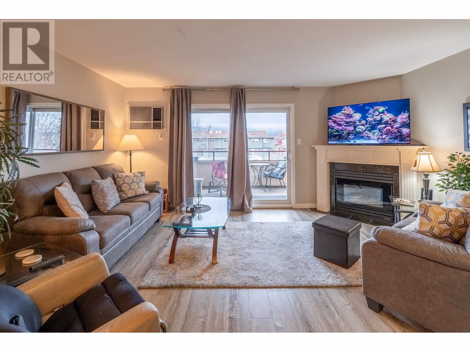 Rare Opportunity in Linden Estates – 55+ Community! Enjoy spacious, easy living in this well-appointed 1,057 sq ft unit, featuring a large primary bedroom and a versatile second bedroom/office (no closet). Recent updates include modern laminate flooring, appliances (approximately 2022), and an updated bathroom. The generous living room offers a cozy gas fireplace and direct access to a large North/North-East facing deck, perfect for enjoying cooler, shaded outdoor space. Conveniently located within walking distance to groceries, bank, doctor’s office, as well as Crown & Thieves Winery and Truck 59 Cider House and the new city hall and library. Pet-friendly (one dog or one cat, up to 14” at the shoulder), workshop and car wash area in the parkade. Don’t miss this rare chance to live in a highly desirable location with so many amenities nearby! Price includes dining room table and chairs, BBQ on the deck. (id:58842)