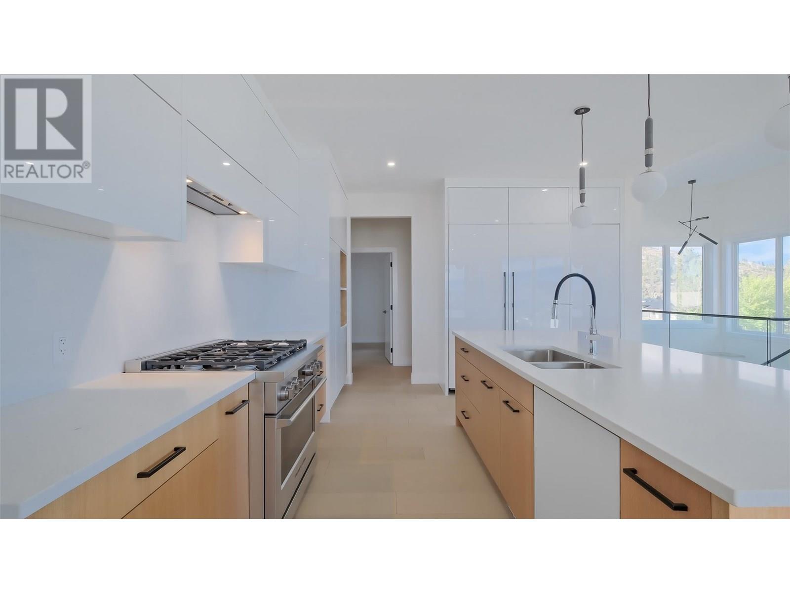 Beautiful new modern home. Pristine decor and styling throughout this spectacular view property. Large spacious and bright rooms complement the unobstructed panoramic lake, city and bridge views. Quality cabinetry, high end luxury appliances. Hardwood and tile flooring. Custom gas f/p. Massive spa-like master en-suite bath complete with walk in closet. Large view deck with glass to fully encompass the views. Covered lower patio below off the recreation room with wet bar leads through patio doors leading to a large yard with room for your outdoor west facing dream pool! Double garage with two modern opaque overhead doors w/hot and cold taps. Stylish exterior with a pop of modern elements. Must be seen to fully appreciate. (id:58842)