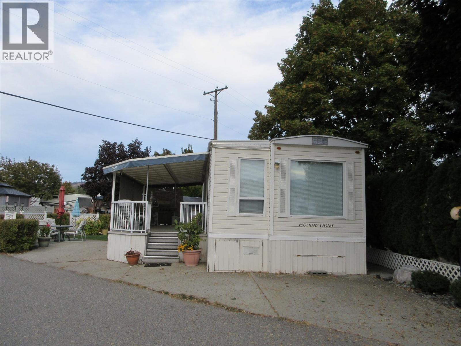 Immaculate Park Model situated on a corner site in the gated community of Holiday Park Resort. This lovely one bedroom, one bathroom is steps away from the off leash, fenced in dog park. Large covered deck to sit and relax or entertain your family and friends. The side yard features a patio area that is ideal for hosting happy hour. Numerous upgrades include dishwasher, AC unit, flooring, water softener and reverse osmosis system. There is underground irrigation for the lawn and plants. A few minutes away is Woodlands Adult Rec Centre where you will find the pickleball court, coin laundry, games room, library, billiards, conversation pool and hot tub. Lease term to 2035 with the option to extend to 2046 for an additional cost. The leasehold interest is registered with the Federal Government. The park Model ownership is transferred by bill of sale. There is no Property Transfer Tax. Long and short term rentals allowed. Enjoy all the amenities offered by Holiday Park - pools, hot tubs, golf course, shuffleboard, restaurant, dinners and and dances, plus more. Close to the Rail Trail, Kelowna International Airport, wineries, golf courses, shopping and entertainment. (id:58842)