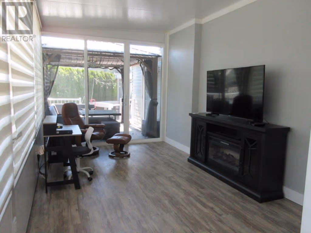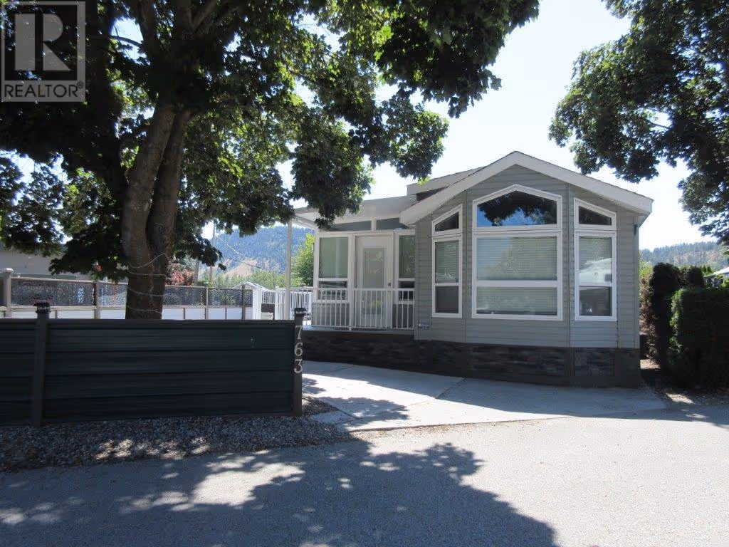 Bright, open concept kitchen makes it ideal for entertaining! This lovely Park Model is situated on a large corner lot close to the fenced in, off=leash dog park and Woodlands Adult Rec Centre where you will find the outdoor pool, hot tub, coin laundry, games room, library and pickleball court. There is a covered deck off the primary bedroom and Okanagan Room that is perfect for relaxing and star gazing. Other amenities in Holiday Park Resort include pools, hot tubs, golf course, restaurant, coin laundry, shuffleboard, gym, hair salon plus more. Lease term to 2046 which is registered with the Federal Government. The site price is $135,000, Park Model price is $165900. The Annual Maintenance Fee is payable in January of each year. It includes security, water, sewer, use of the amenities, maintenance of the common areas and roads, snow removal and garbage disposal area. No Property Transfer Tax. Long and short term rentals are allowed. Close proximity to Kelowna International Airport, UBCO, wineries, golf courses, Rail Trail, shopping and entertainment. (id:58842)