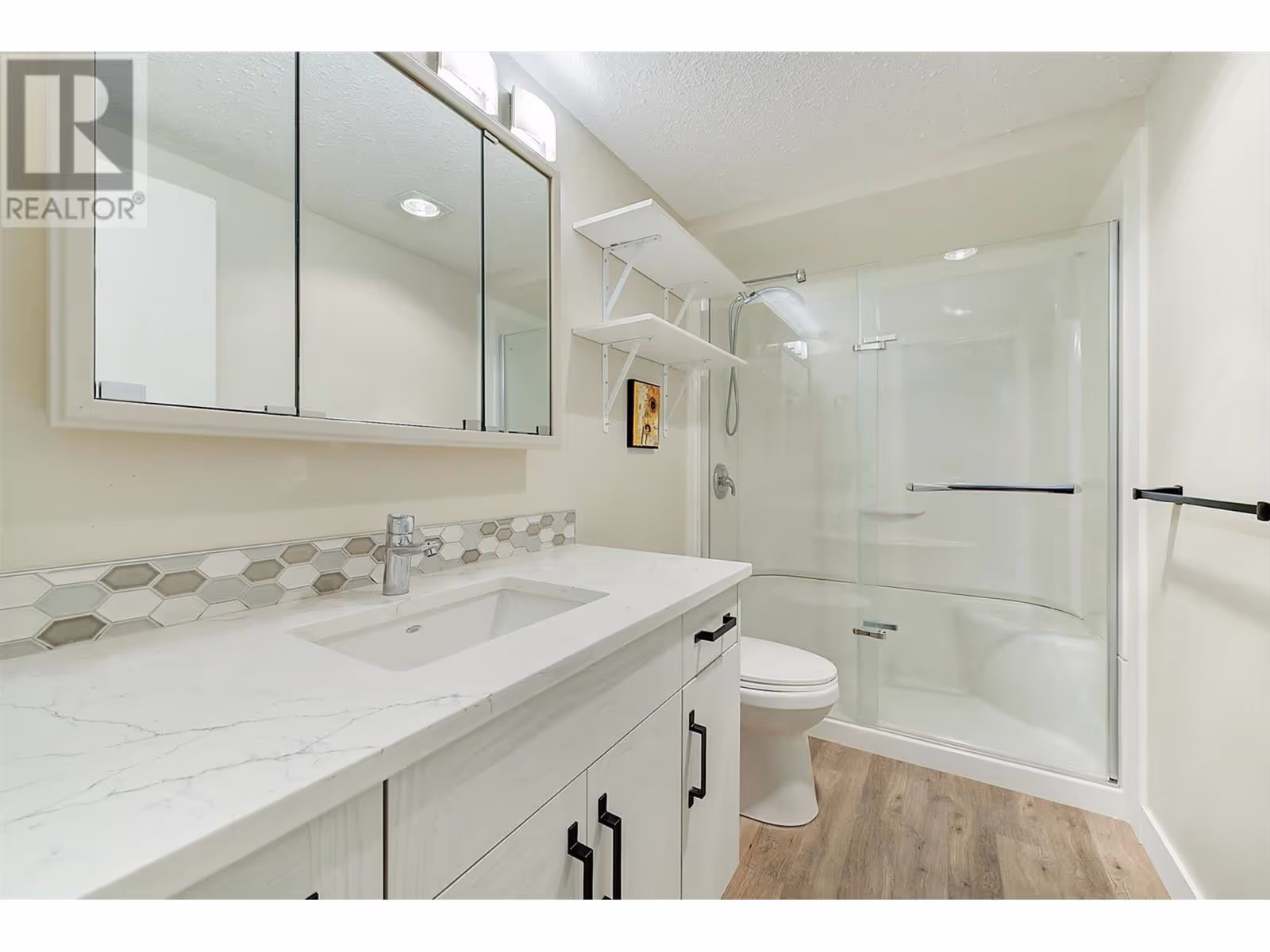 This beautifully renovated ground-floor, semi-waterfront condo offers incredible value in the heart of downtown Peachland. Just steps from the beach, cafes, and shops, this 2-bedroom, 2-bath home has been extensively upgraded with over $100,000 in thoughtful improvements. The foyer welcomes you with custom cabinetry and a built-in bench. The spacious primary bedroom includes a walk-in closet and full en-suite, while the second bedroom features a versatile Murphy bed—perfect for guests or a home office. The dining area offers custom cabinetry and pantry space, ideal for entertaining. In the living room, a charming stone fireplace with gas insert adds warmth and character, enhanced by breathtaking lake views. The kitchen boasts Quartz countertops, tiled backsplash, updated cabinetry, and a breakfast bar thanks to the removal of a dividing wall—creating a bright, open layout. Step outside to your private deck surrounded by lush gardens and uninterrupted views of Okanagan Lake. Located in the 55+ Chateaux on the Lake, this quiet, well-kept community features manicured landscaping, RV/boat parking, a storage shed, and two additional storage spaces. Offering exceptional value for the area, and available for quick possession—this is a rare opportunity to enjoy semi-waterfront living in Peachland. Don’t miss your chance! (id:58842)