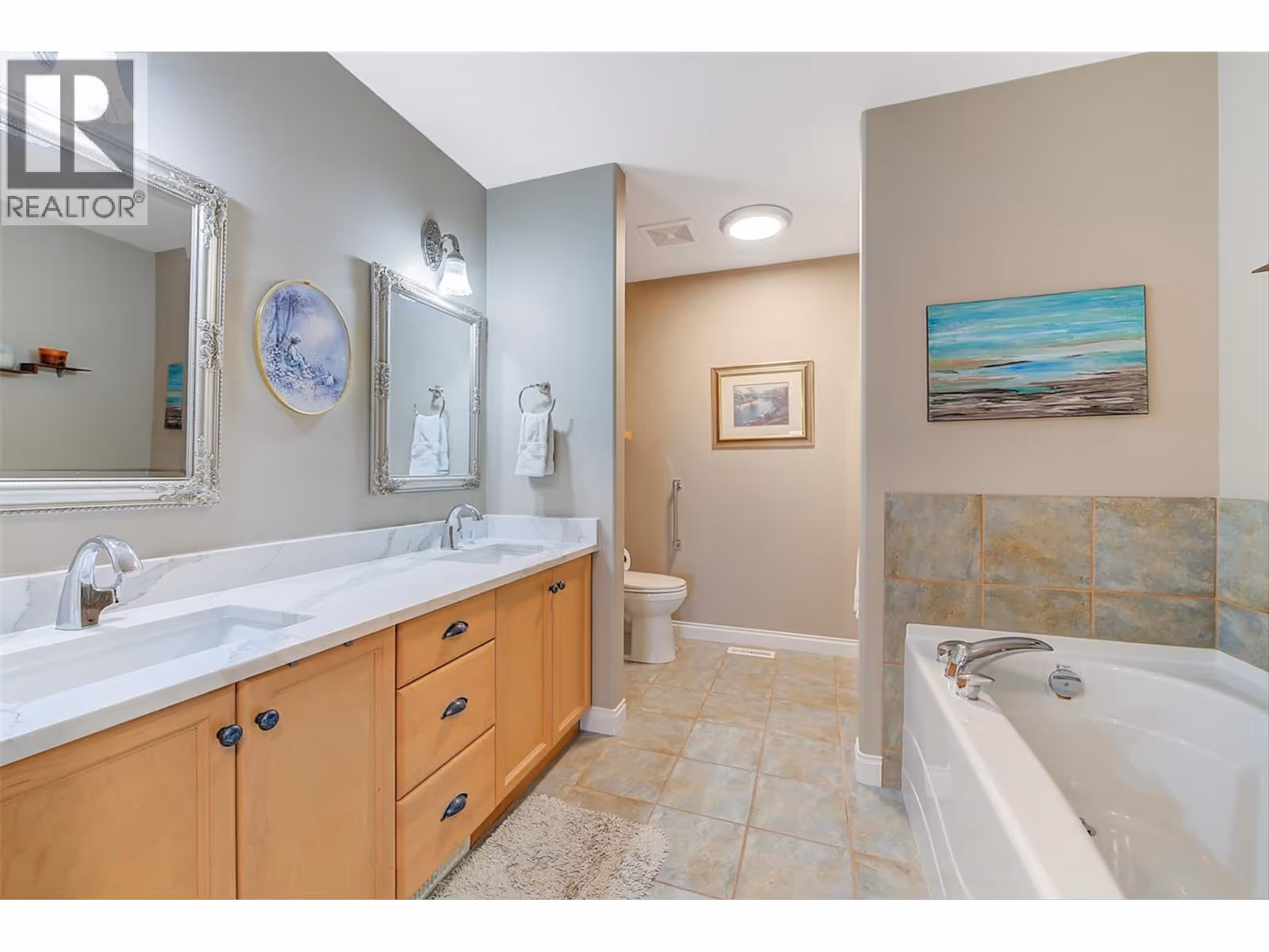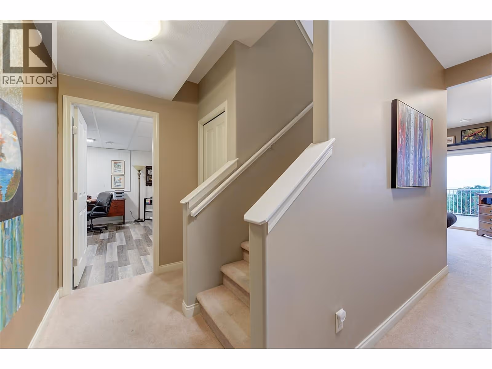 Vacant, and ready to move in! Easy-living in this beautiful home at Sunset Ranch. The home is located right off an exclusive-feeling laneway. Step in the door and be welcomed with your fabulous views of Okanagan lake, the golf course, all the city lights. Feel welcomed by valley, and surrounding mountains. 3 beds, and 3 baths. You can eat in the nook area off the kitchen, or enjoy those views from the living room/dining area. An expanded deck offers covered and non-covered sunny outdoor spaces. A generously-sized primary bedroom with your 5-piece ensuite. Head down to the full basement. Offering a nice and quiet office, and adjoining craft room. The lower family room is great for guests or the family. 2 beds down and a full bath. The double garage is great for tinkering. Superb gardens, nice backyard space. (id:58842)