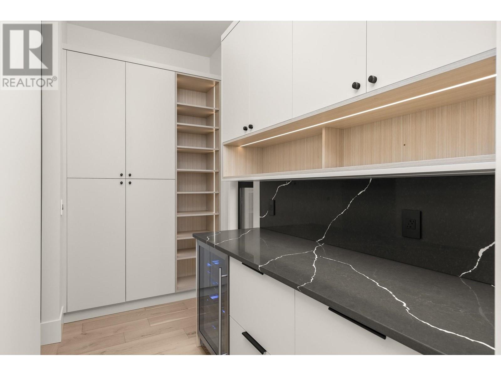 Experience modern Okanagan luxury in this brand-new custom-built walkout rancher, designed to impress with striking architecture, high-end finishings, and breathtaking lake, sunset, and city views. This home seamlessly blends contemporary elegance with functional design, delivering an unmatched indoor-outdoor lifestyle. The open-concept main level is highlighted by floor-to-ceiling sliding doors that expand to a spacious covered patio, complete with built-in BBQ, fire table, and panoramic views. The chef’s kitchen is a showstopper with premium Jennair appliances including a 6-burner gas cooktop, built-in oven, full-size fridge/freezer, double dishwashers, and built-in coffee station. A walk-through pantry connects directly to the laundry room and heated garage for everyday convenience. The luxurious primary bedroom features spa-inspired ensuite with fluted freestanding tub, steam shower, and large walk-in closet. A private office and a designer guest powder room with preserved moss wall and onyx sink complete the main level. Downstairs is designed for entertaining, opening directly to your backyard oasis with 16x32 pool (with auto cover), hot tub, and a second built-in BBQ area. Inside, enjoy the wet bar, theater room, gym with sports flooring, and ample storage. The legal 1-bedroom suite (option for a 2nd bdrm) offers flexibility for guests or rental income. Oversized heated garage features epoxy floors, an 11-foot door for RV or boat access, and roughed-in A/C. (id:58842)