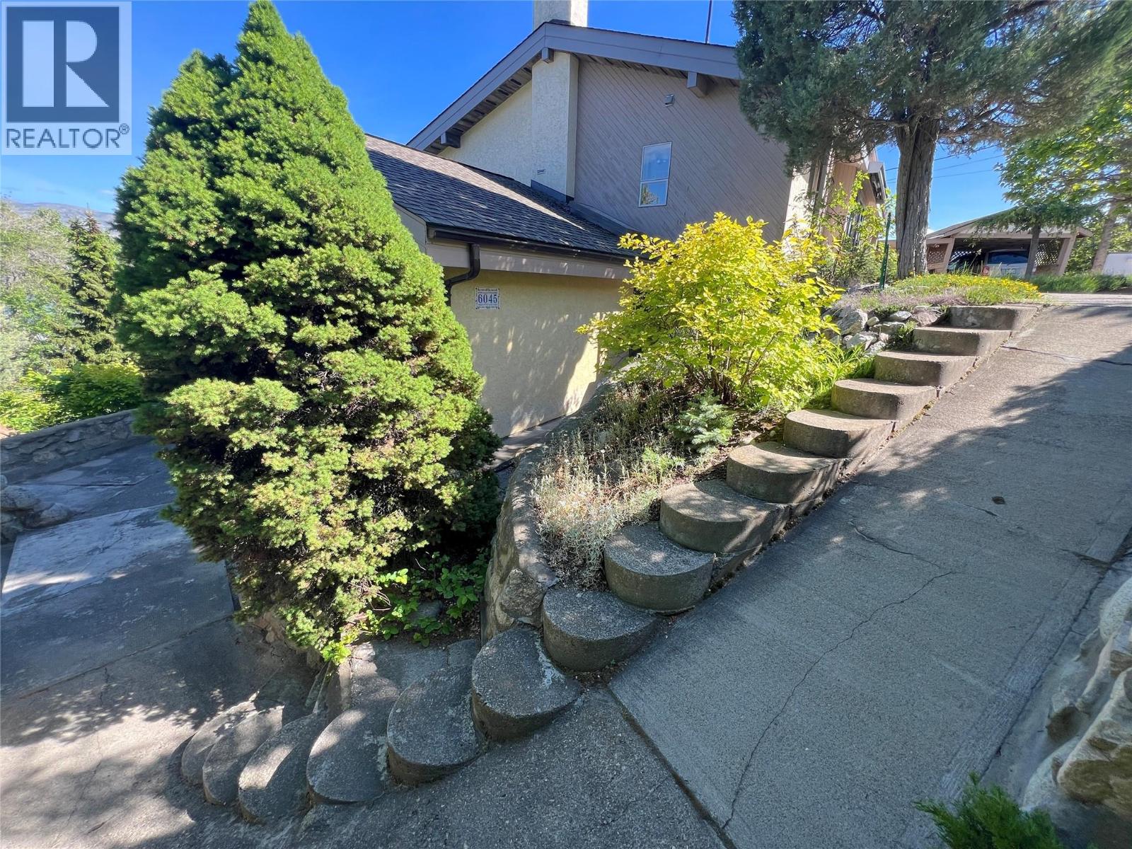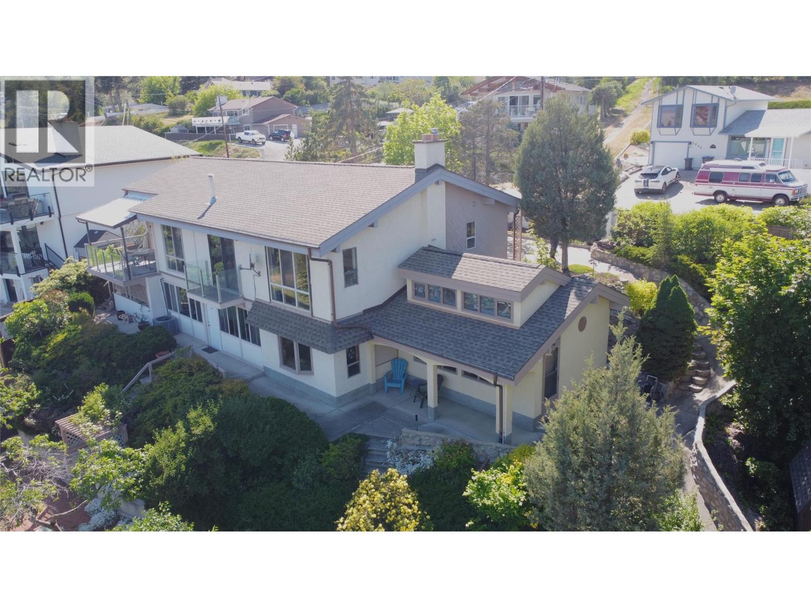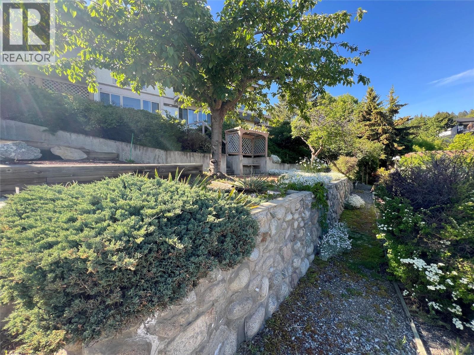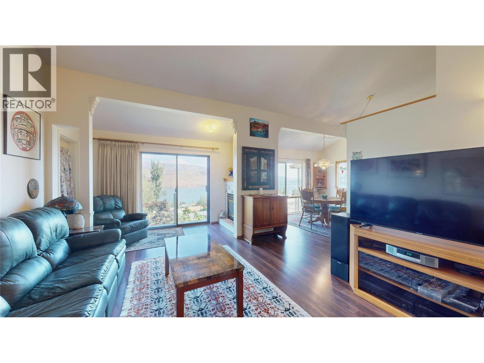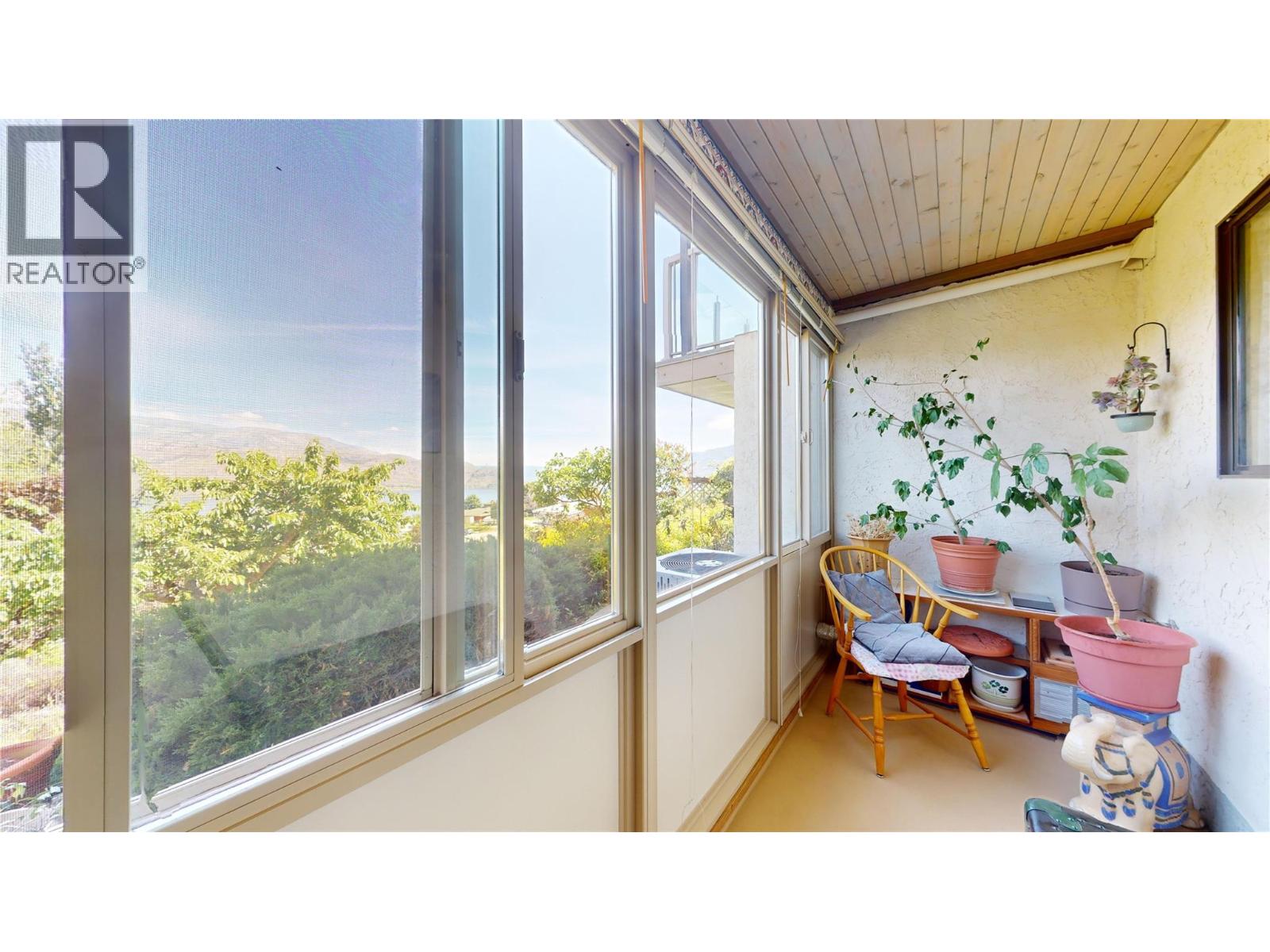 Great lake views looking south towards Penticton. No step rancher walk out with vaulted ceilings, beams and archways & stained glass accents. Well cared for home with pride of ownership and updates over the years, recently new hotwater tank and new air conditioning. There is a private lower side yard gathering area plus the backyard is fully terraced and landscaped with fruit trees and gardens. Closed in court yard at the front of the house for privacy and parking for RV or boat. Parking out front along the road as well. Great neighbourhood on school bus route so plowed first in the winter. That rare combination of a flat driveway with lakeviews! (id:58842)