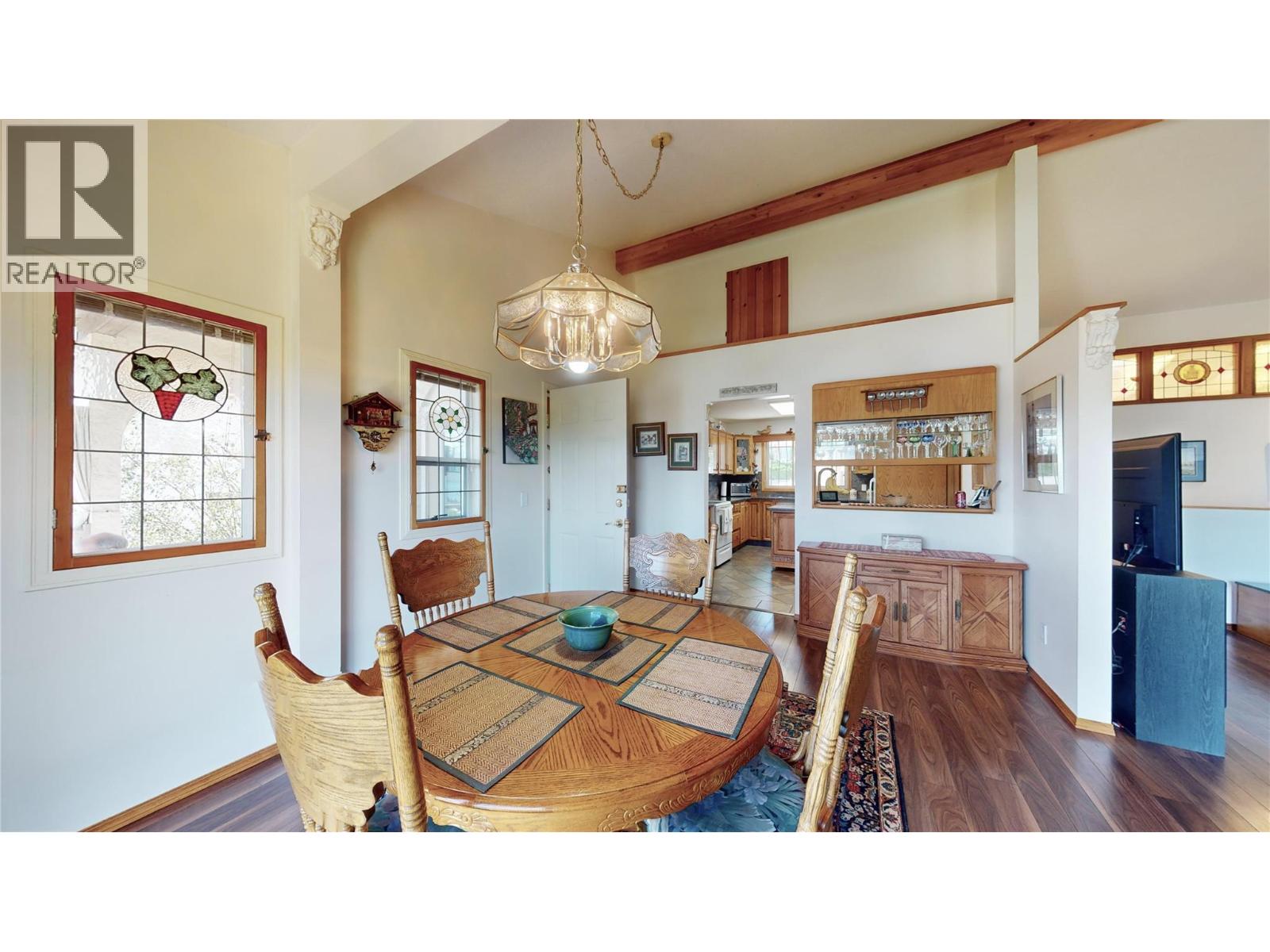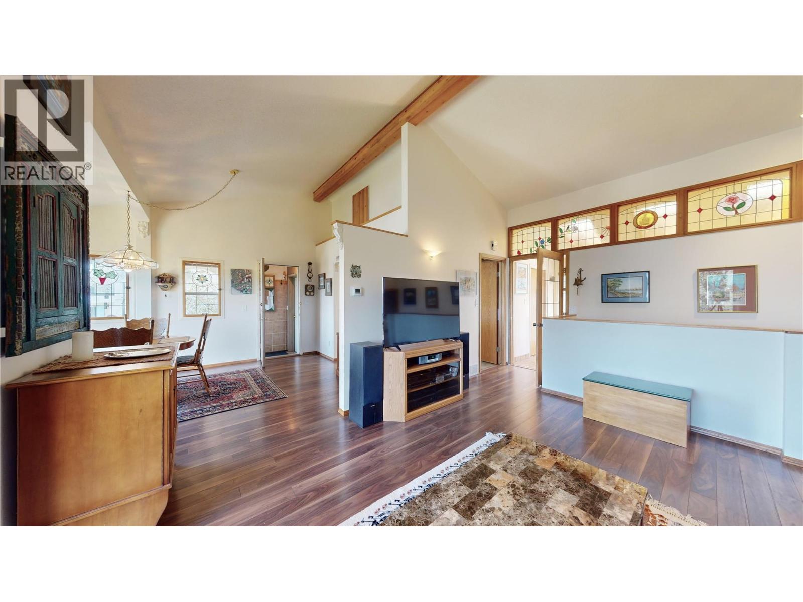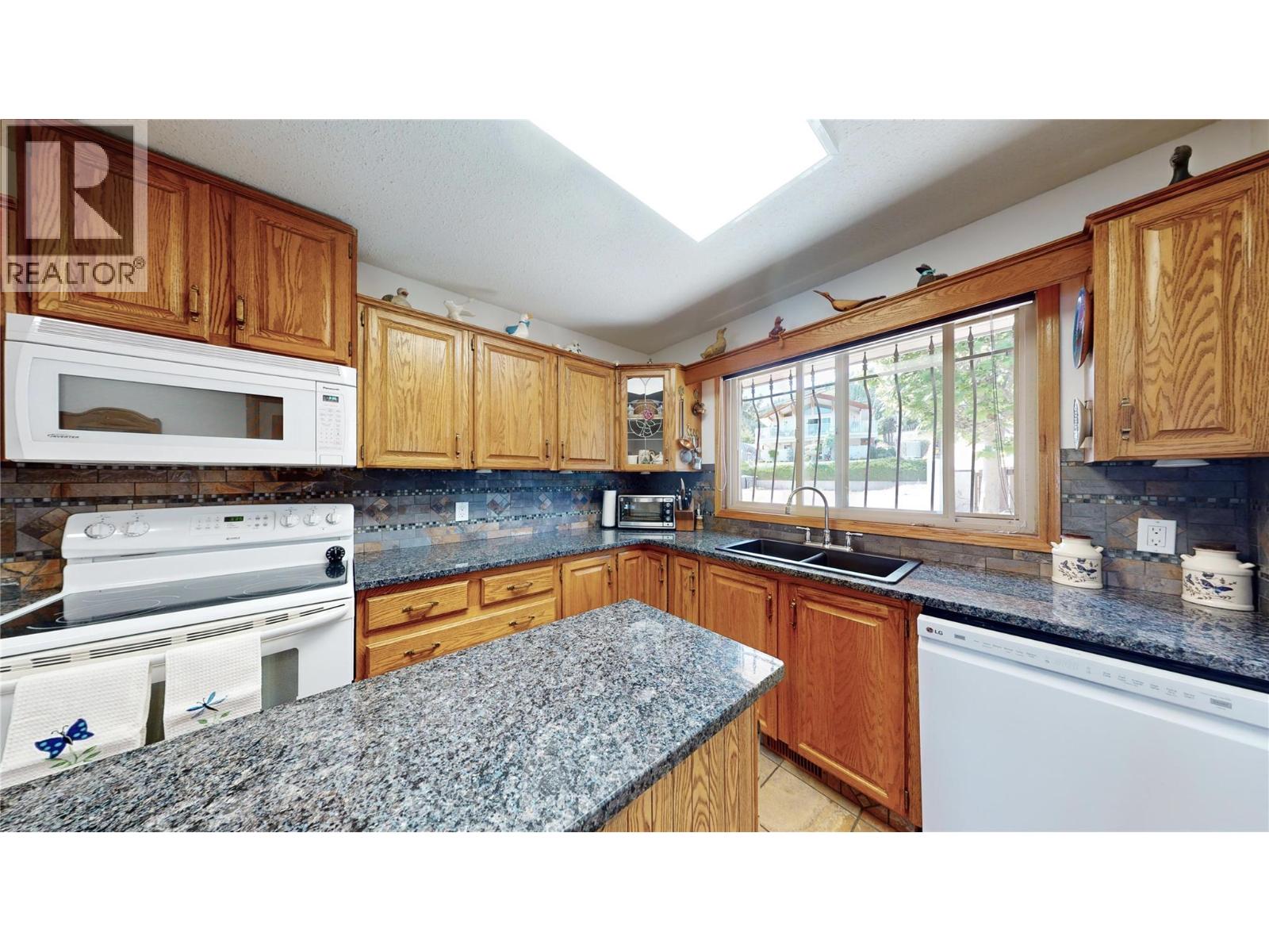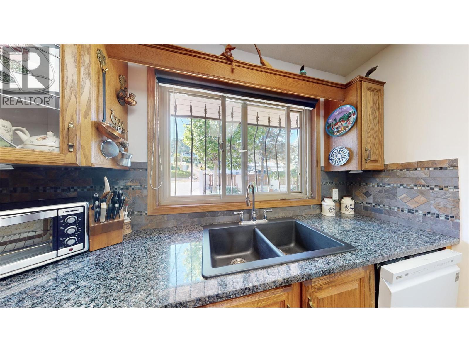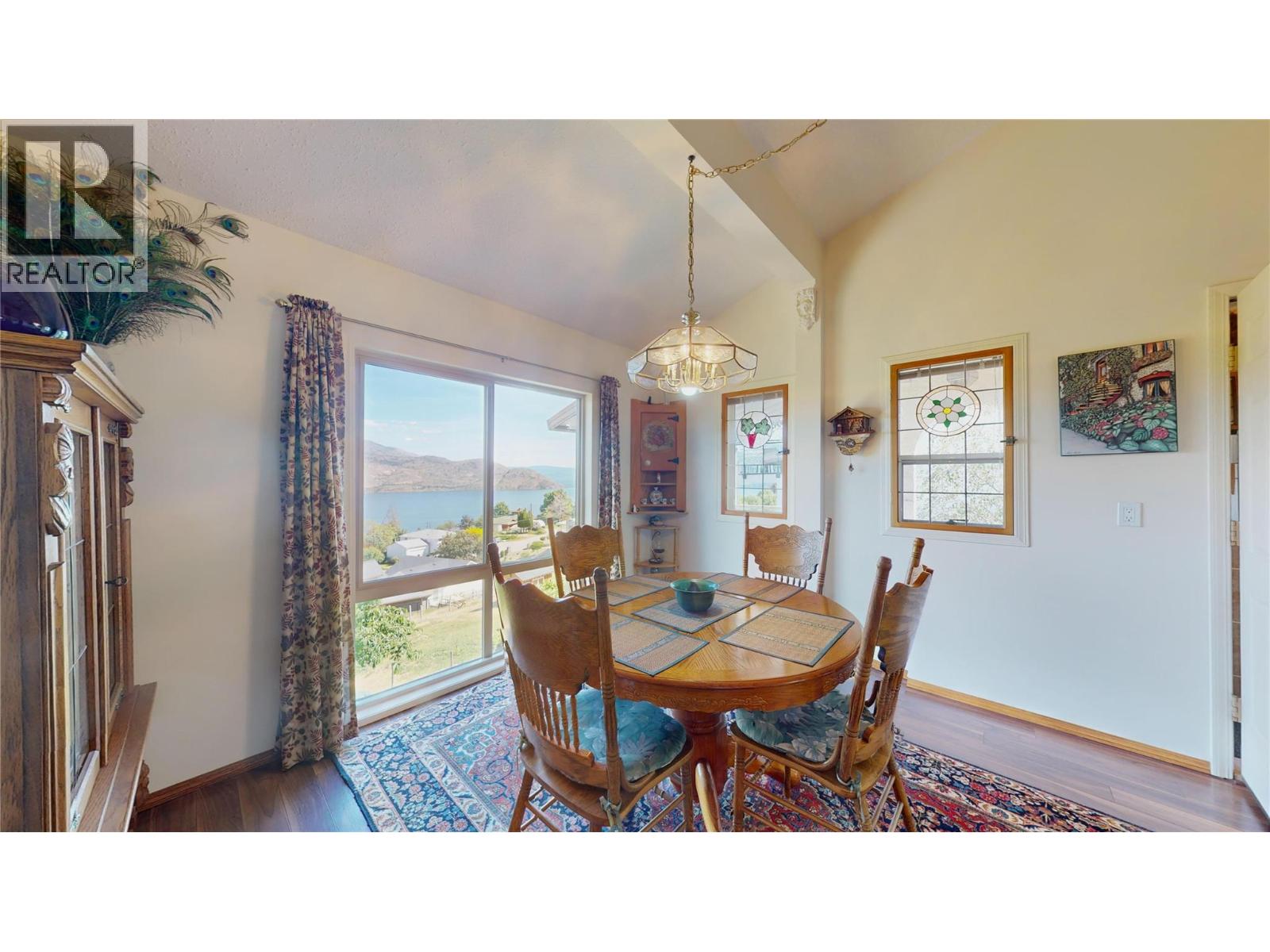 Great lake views looking south towards Penticton. No step rancher walk out with vaulted ceilings, beams and archways & stained glass accents. Well cared for home with pride of ownership and updates over the years, recently new hotwater tank and new air conditioning. There is a private lower side yard gathering area plus the backyard is fully terraced and landscaped with fruit trees and gardens. Closed in court yard at the front of the house for privacy and parking for RV or boat. Parking out front along the road as well. Great neighbourhood on school bus route so plowed first in the winter. That rare combination of a flat driveway with lakeviews! (id:58842)