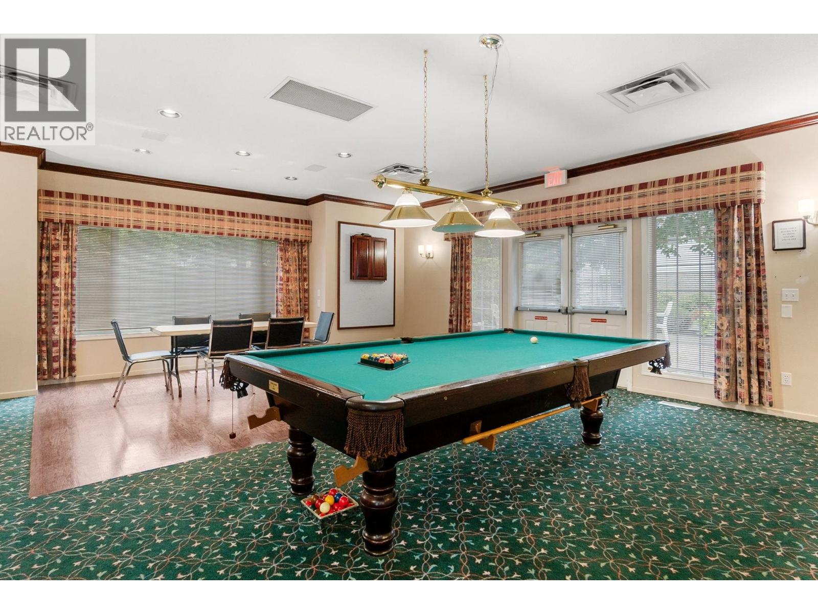 Top Floor Corner Unit. Vaulted ceilings in the living room and dining room, fireplace, very open and bright. Large primary bedroom with 4 pce ensuite and oversized walk-in closet. The second bedroom is next to a full bathroom separate from the primary bedroom. The kitchen has room for a table and two chairs. Two wall air- conditioners. The club house is very comfortable and has a pool table and shuffleboard, big screen TV, kitchen. There is a guest suite and gym. Outside is a BBQ area and gardening plots. Just a short walk to shops, restaurants and the Capri Mall. Secured parking plus a workshop. Pets: one dog 14 inches at shoulder or one cat. (id:58842)