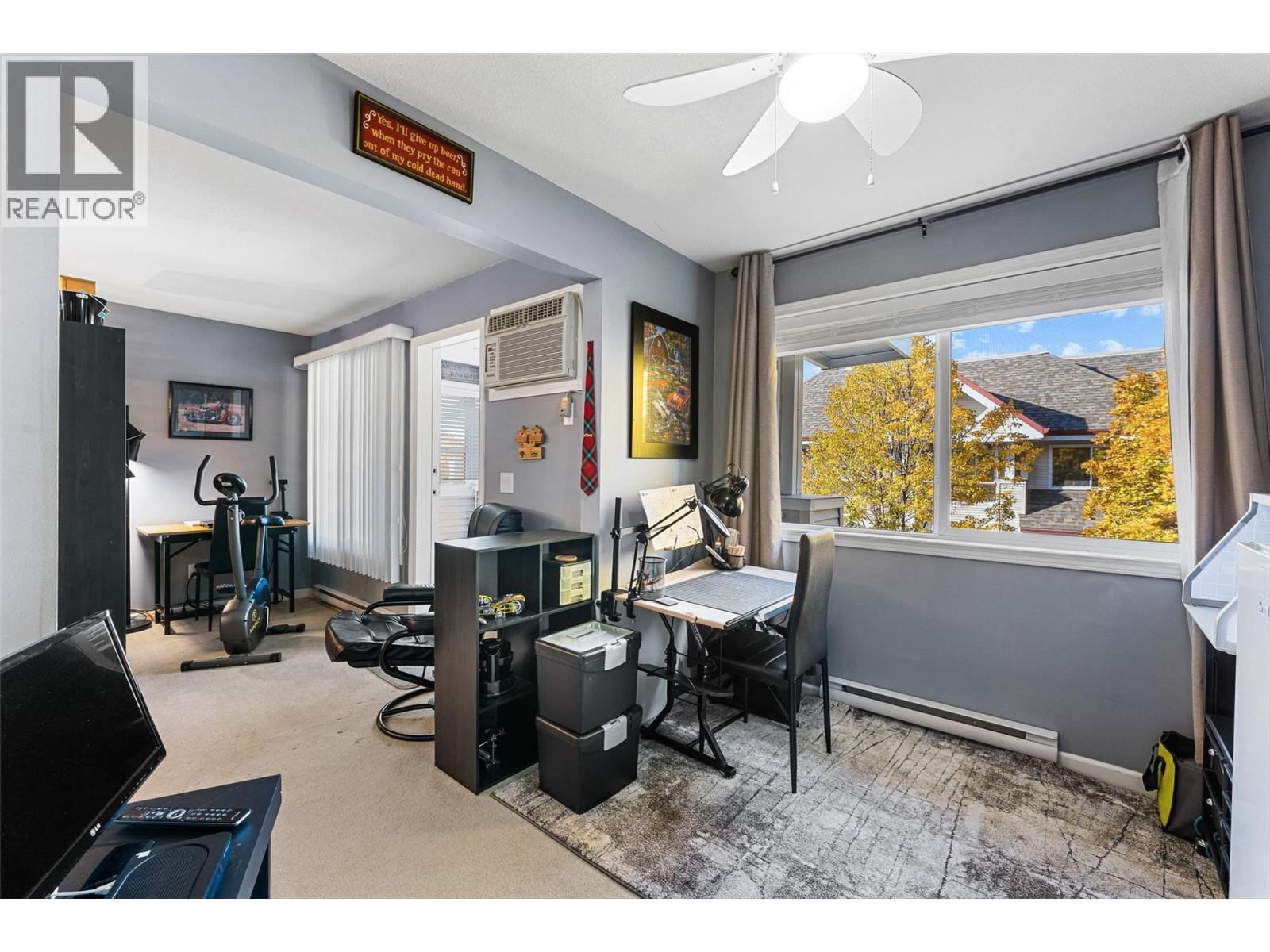 Perched quietly on the top floor, this 1-bedroom + den condo offers more than just a home, it offers peace of mind in a welcoming community. Designed for low-maintenance living, the open-concept layout features a functional kitchen with warm cabinetry and a double sink, flowing into an open living space and an enclosed sunroom that invites year-round use - think morning coffee nook, craft space, or a reading retreat. The den makes an ideal home office or hobby area and the unit has a washer & dryer. The building itself feels like an extension of your living room, with amenities including a clubhouse, shuffleboard, pool table, guest suite, gym, BBQ patio, and even garden plots for green thumbs. A secured parking spot, storage locker and workshop add practical appeal. Pet-friendly (1 cat or 1 small dog allowed) and just a short stroll to Capri Mall, groceries, and local dining, this unit offers comfort and connection in a convenient, central location. (id:58842)