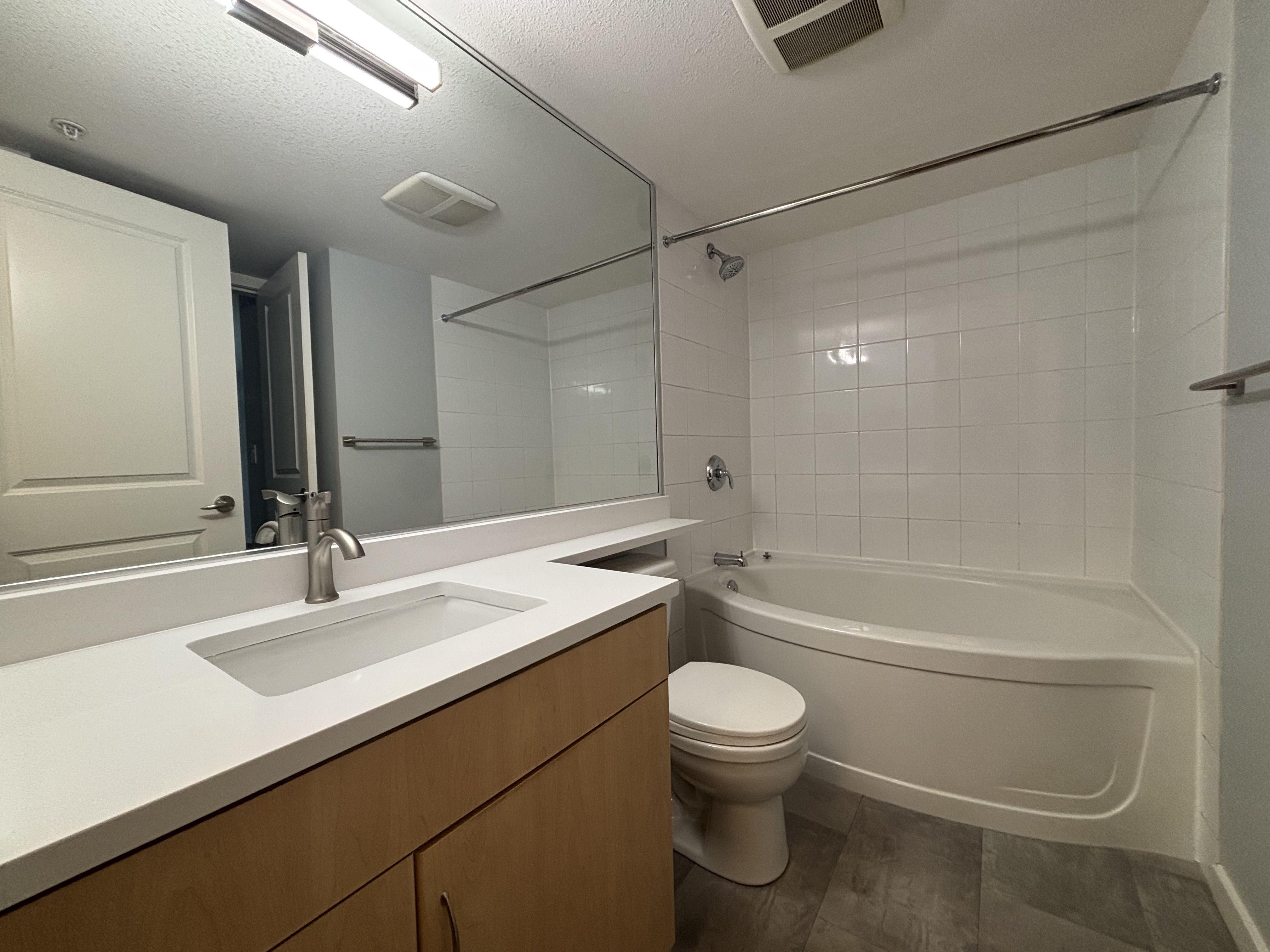 1 bedroom and den with 1 bath condo at the Verve building 555 (3rd floor). Brand new countertops in the kitchen and bathroom and a few other updates.