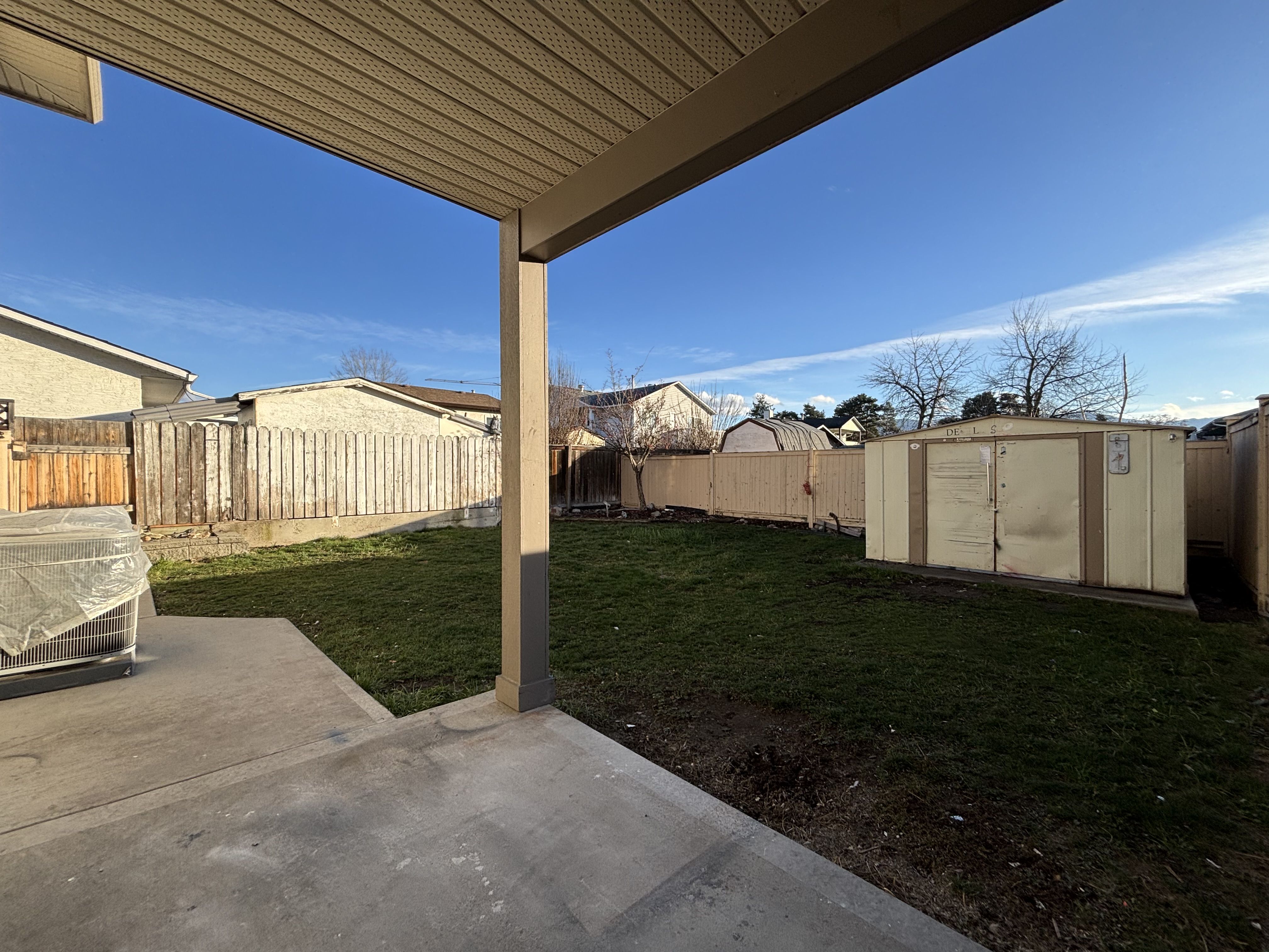 Large fenced backyard with shed for tenants use (not shared). Tenant is responsible for yard care.