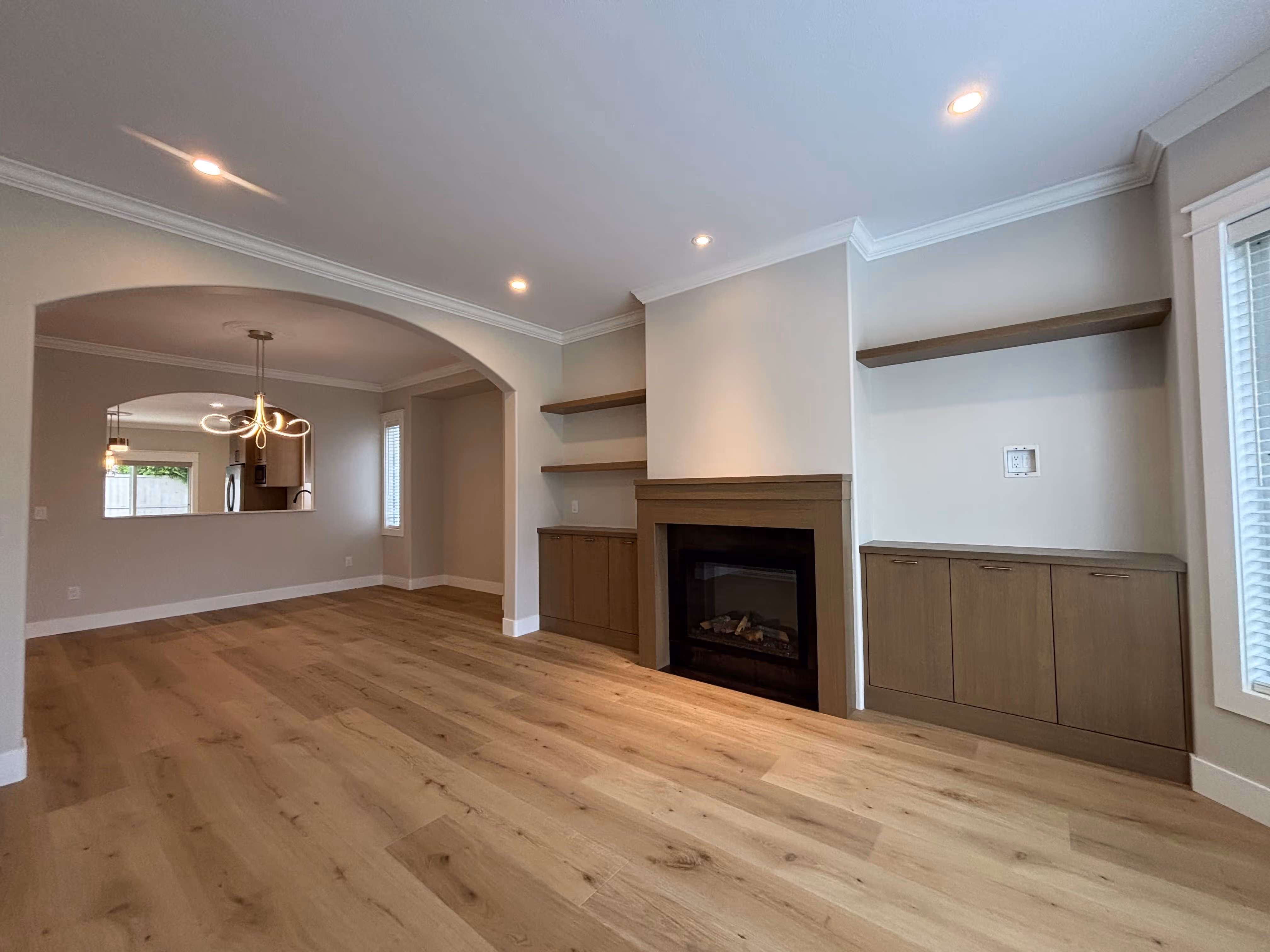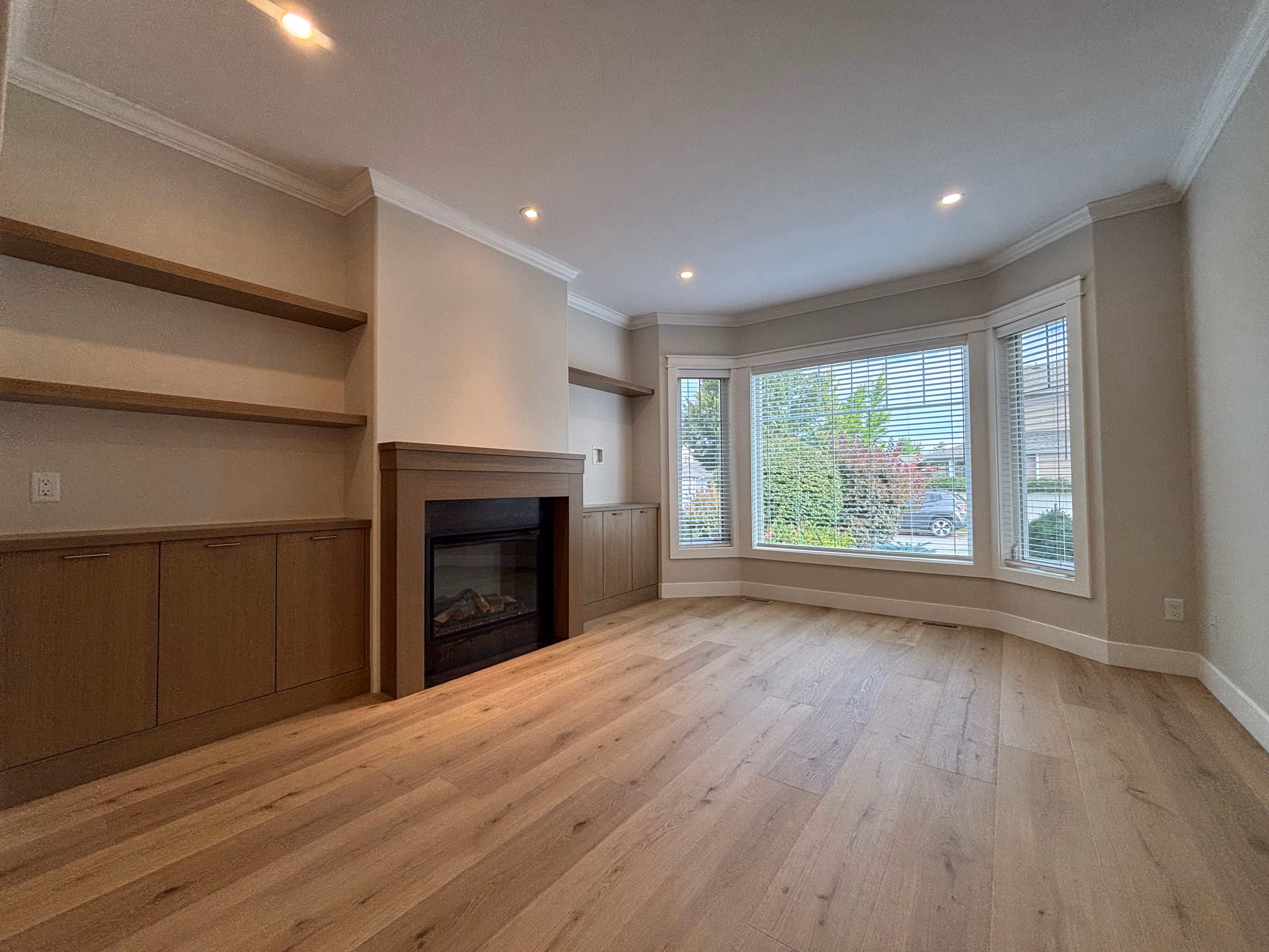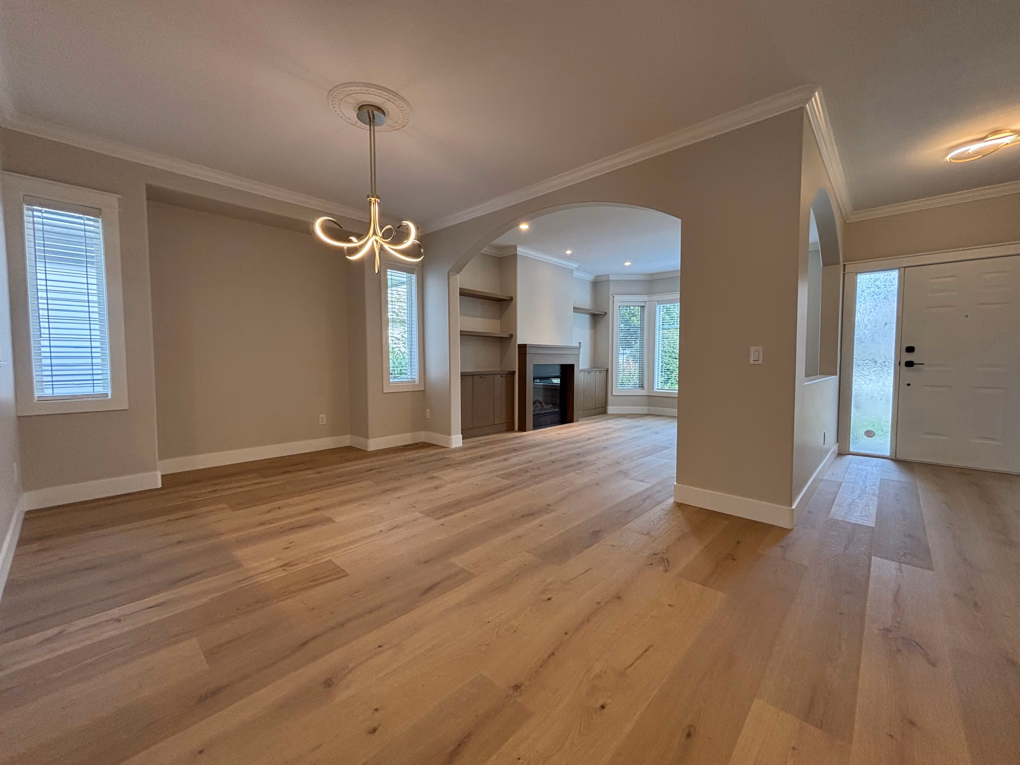 The kitchen comes with all appliances (fridge, gas stove, dishwasher and microwave). Large open island in the middle of the kitchen and a built-in office/desk space near the back patio doors.
