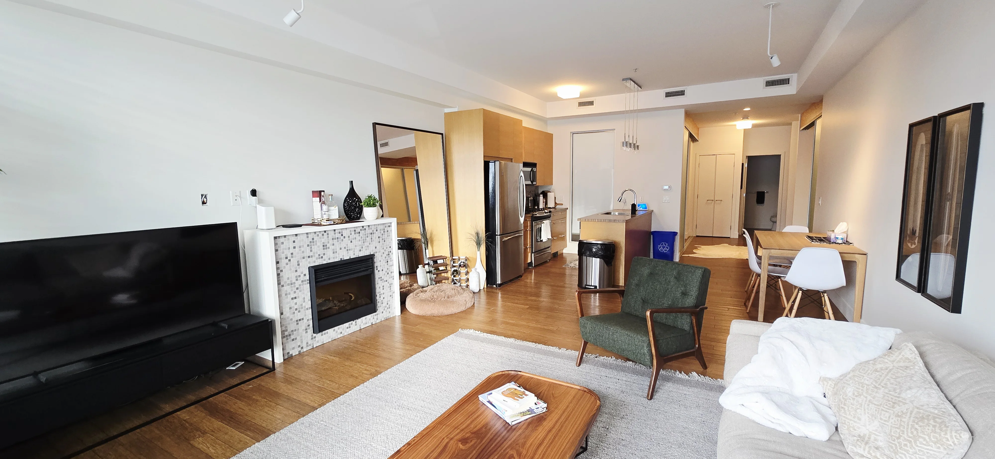 * Modern kitchen and living area