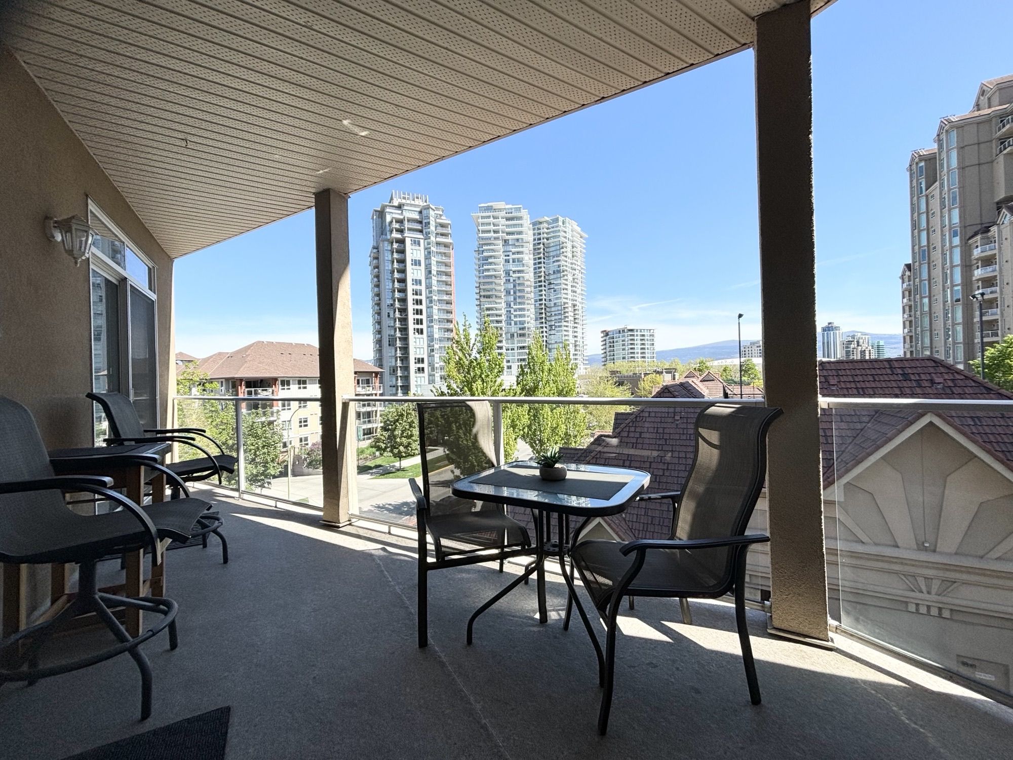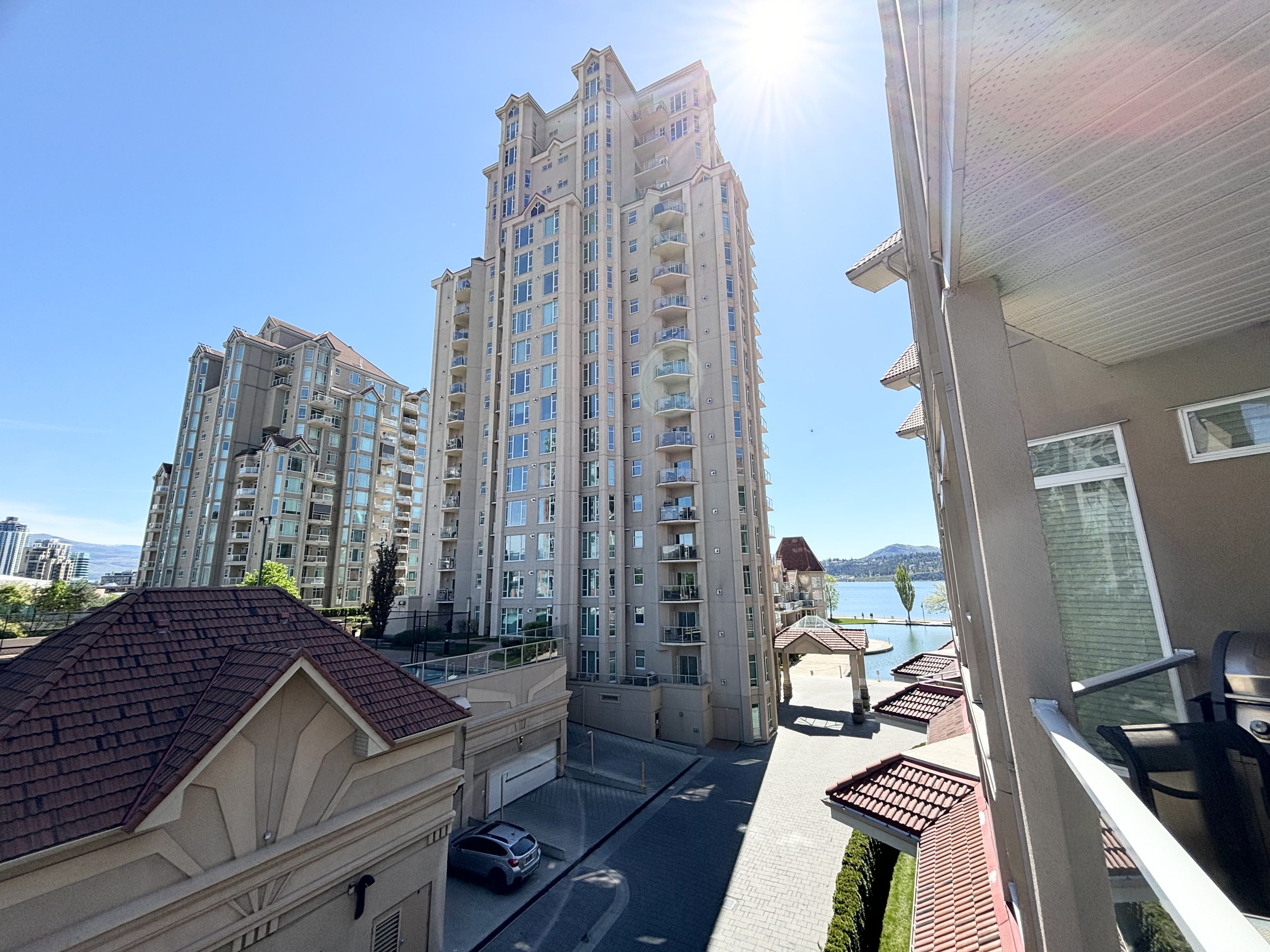 Available now for 6 - 12 month lease. Utilities are included besides cable, internet and phone. This unit comes fully furnished, just bring your suitcase and enjoy the Okanagan! 2 bed 2 bath fully furnished unit at Discovery Bay in the south building. This unit is located on the 4th floor with gorgeous views of Kelowna! Master bedroom has a king size bed, access to the large deck and an ensuite bathroom. Main bathroom has a bathtub and ensuite has a full shower. Both bedrooms, including the living room, have TV's (3 total). All appliances are included (fridge, stove, dishwasher, washer/dryer). Kitchen comes fully equipped with dishes, pots, pans etc. Linens and towels also included. 1 underground parking space and bike storage for tenants use. No pets and no smoking. Building amenities include 2 pools (1 pool is half outside, half inside), 2 hot tubs, gym, sauna, games room and communal BBQ area.