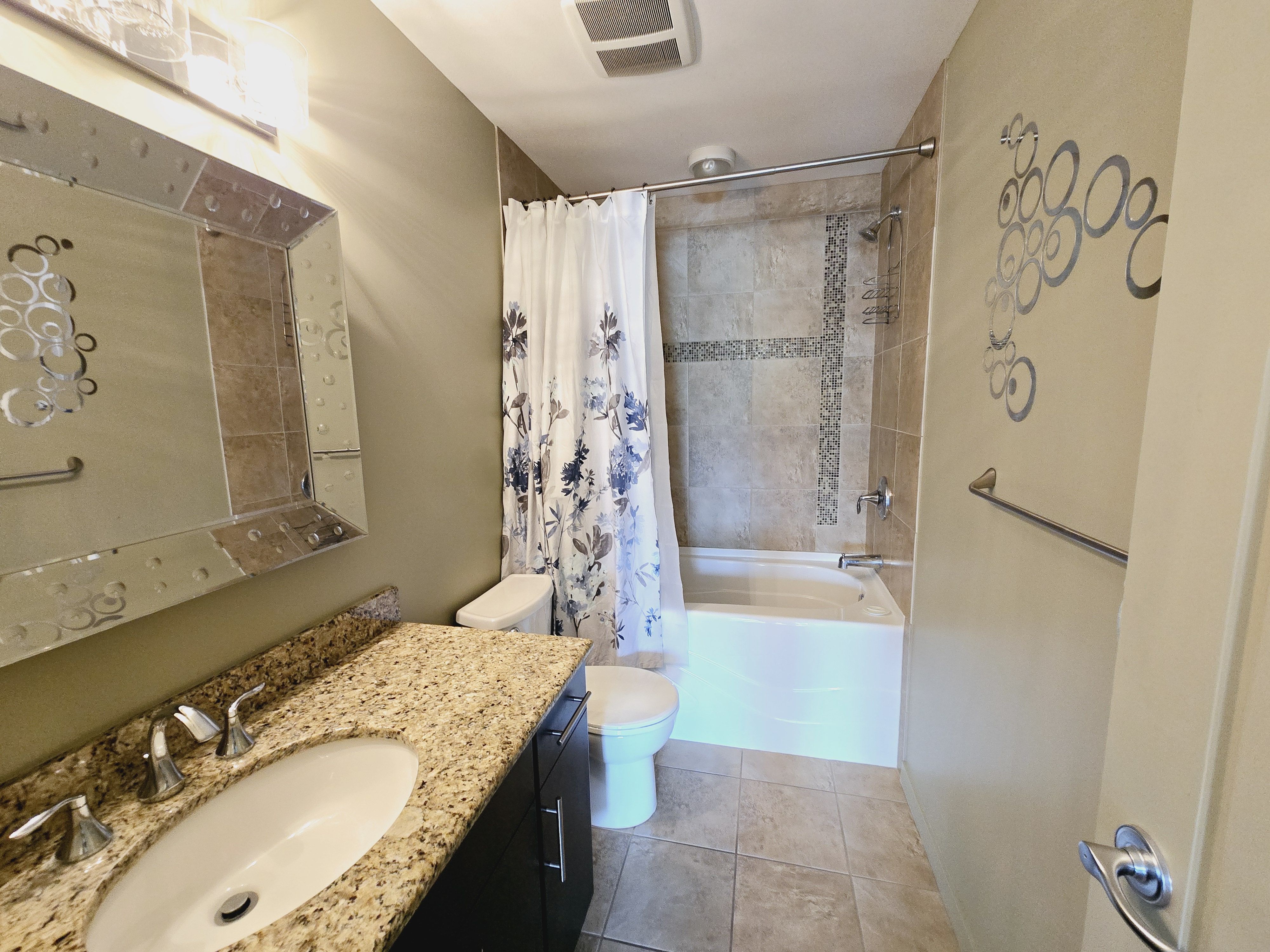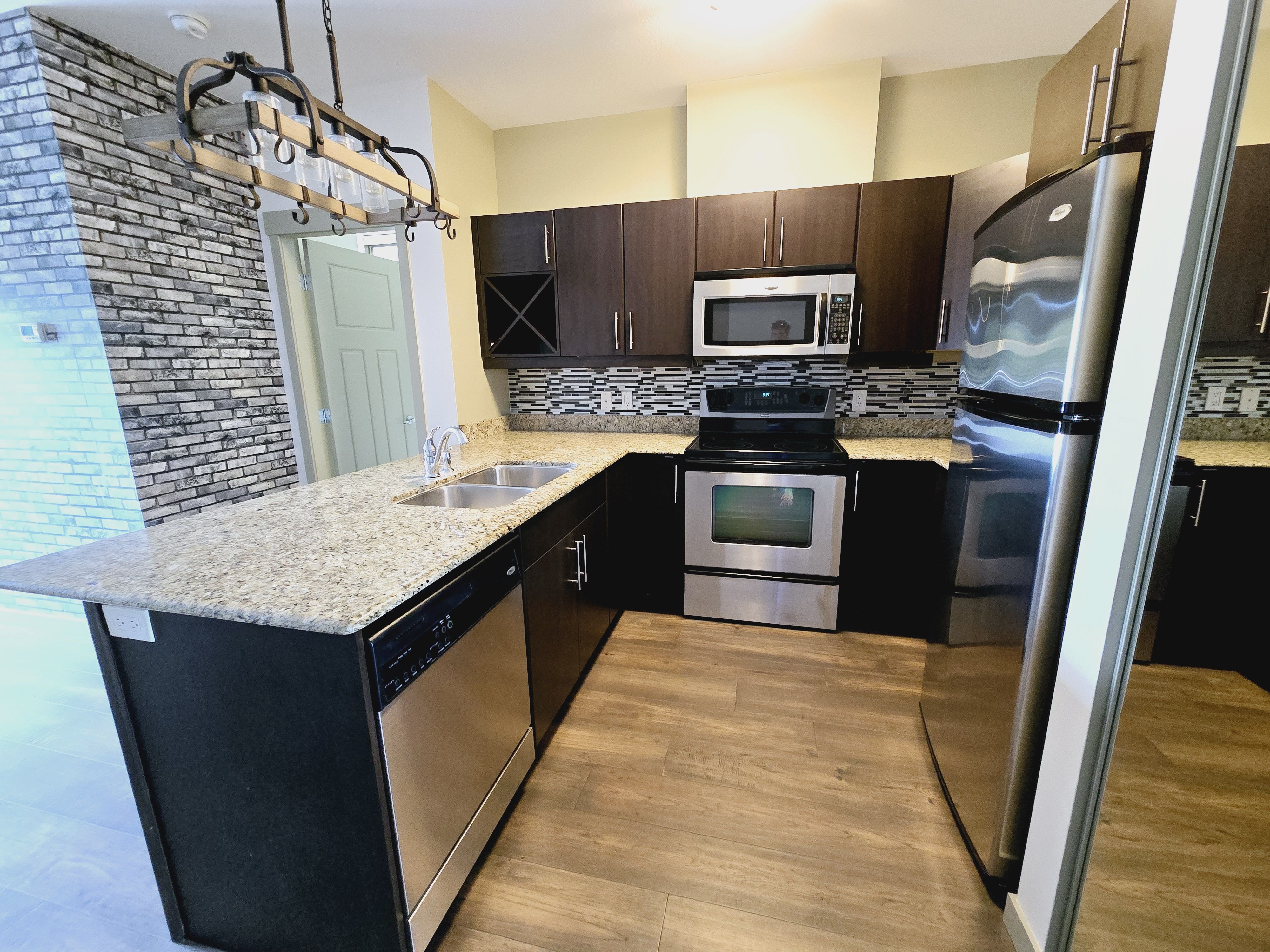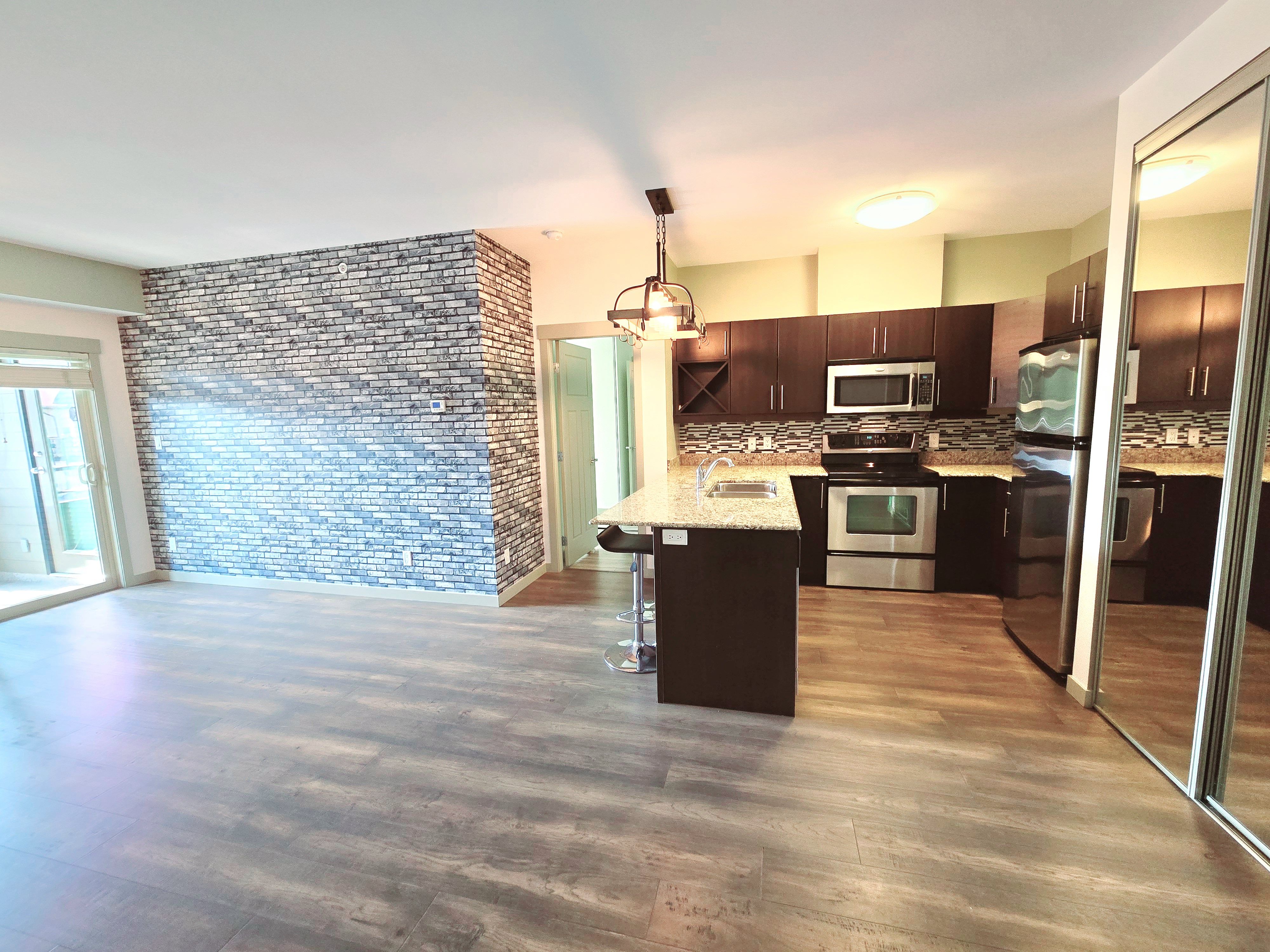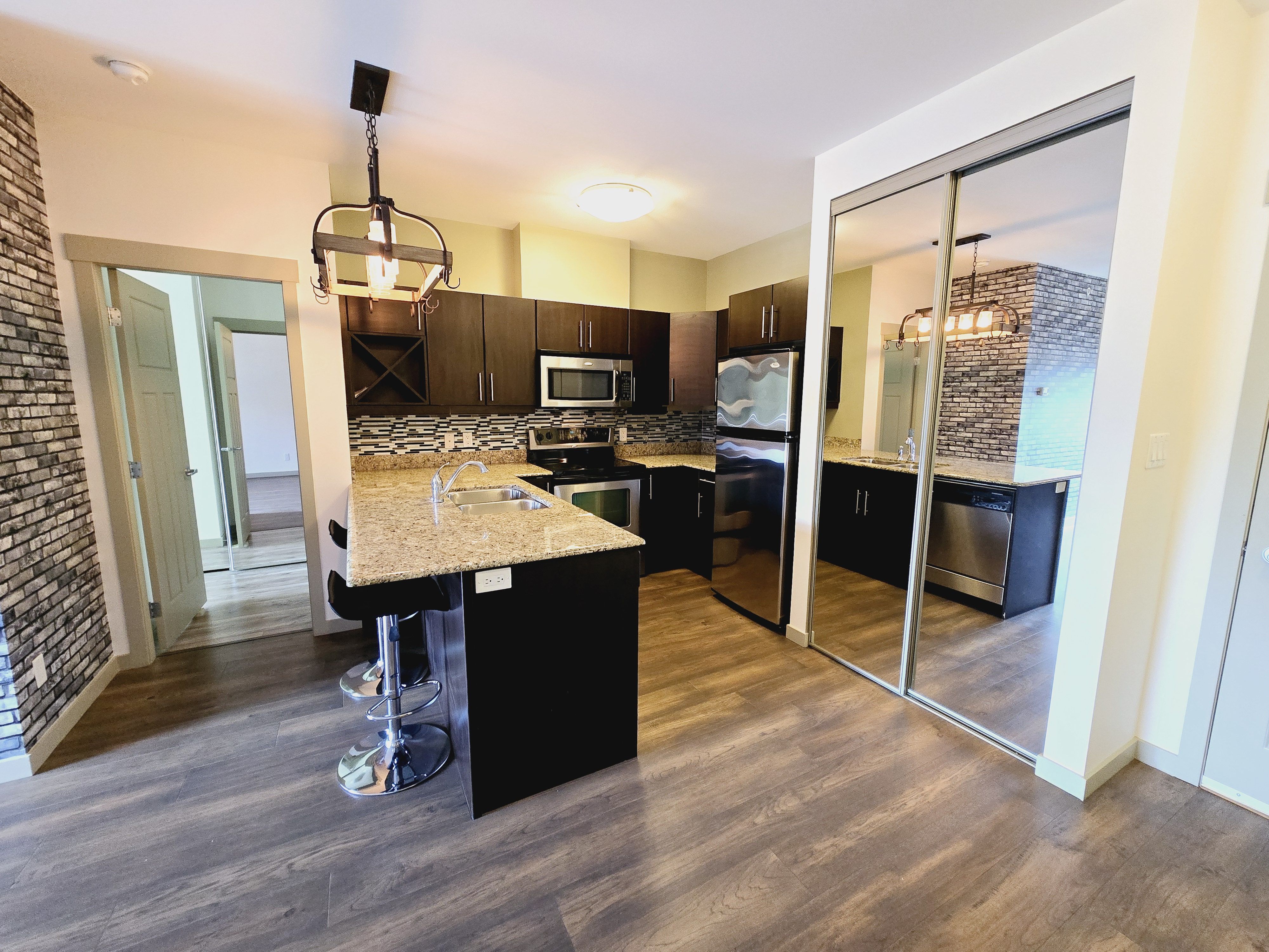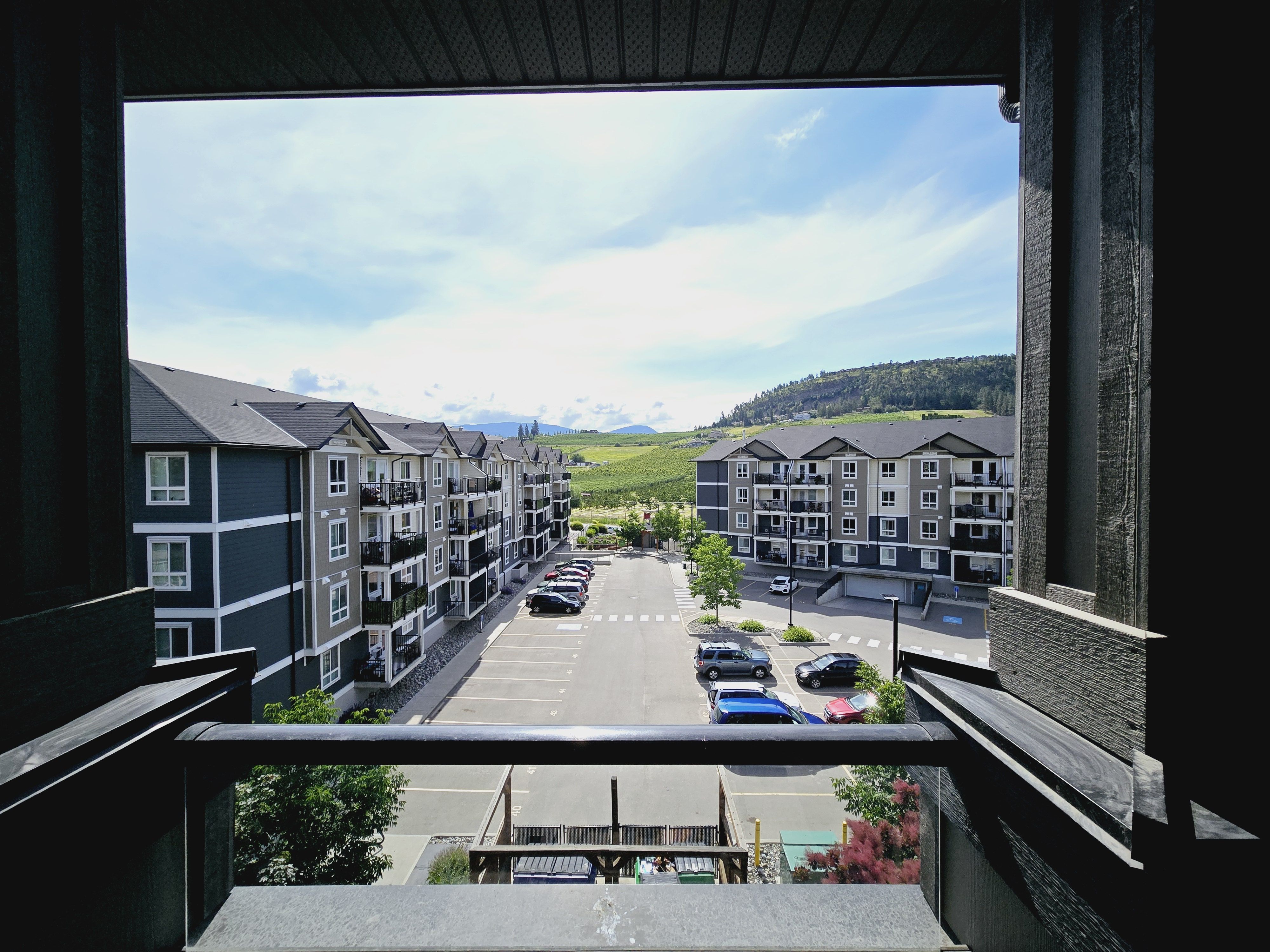 This modern, spacious 2-bedroom, 2-bathroom condo on the top floor offers convenient, comfortable living. The split floor plan provides added privacy, perfect for roommates or visiting guests. The primary bedroom includes two closets and a full ensuite with a large soaker tub. The condo is conveniently located within walking distance of shops, restaurants, and amenities, with easy access to public transportation, including the bus route, and proximity to UBCO. In-unit laundry and a dishwasher are also included. Additionally, the covered deck offers beautiful green, lush views of the orchards.