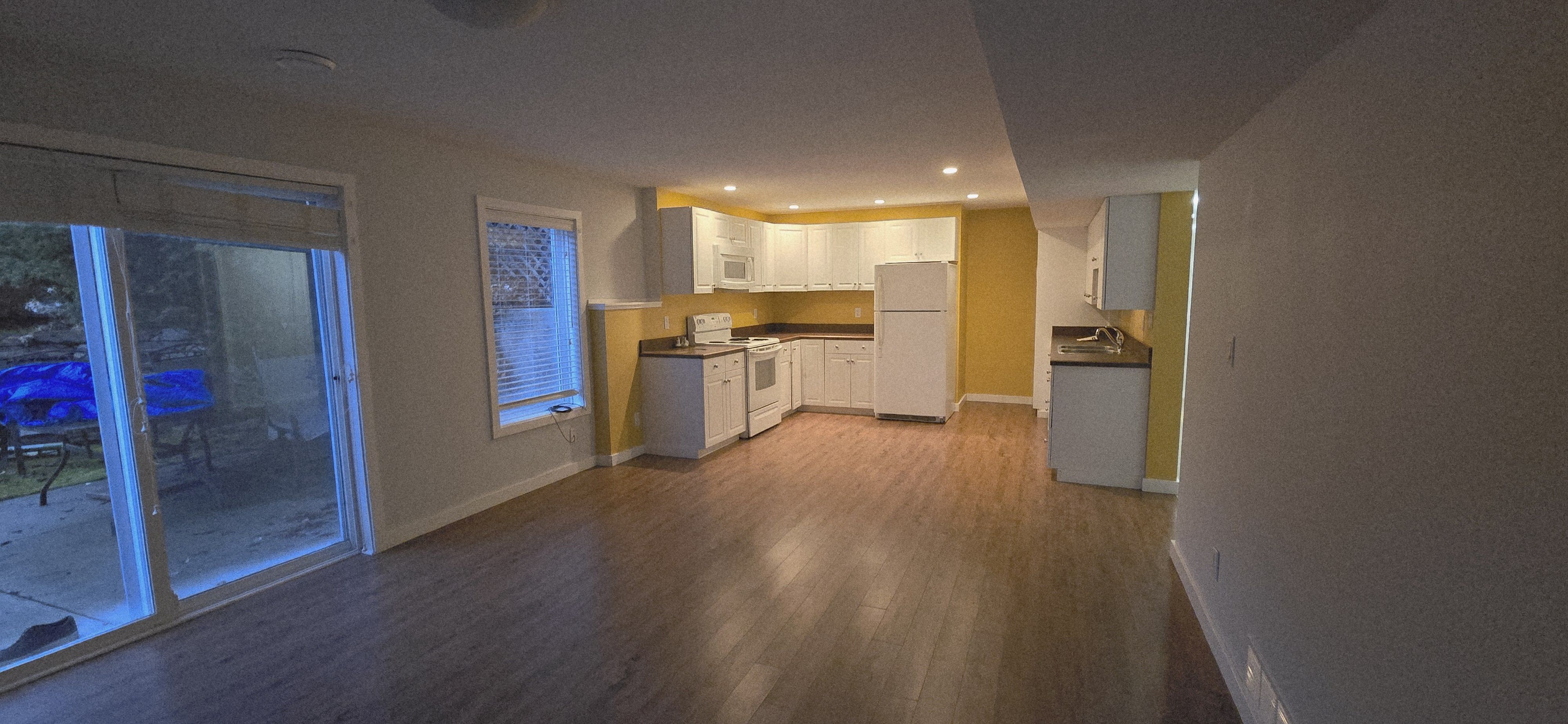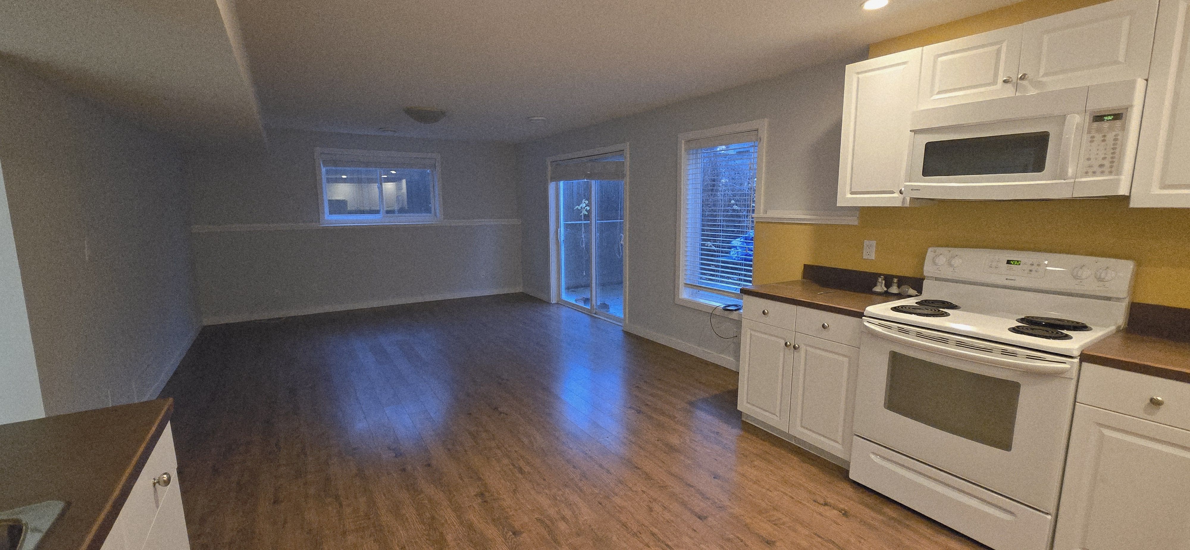 1 Bed, Large Den, 1 Bath, clean, bright, private Upper Mission Walk-out Basement. Loads of kitchen space, laminate flooring and spacious rooms. Great School District